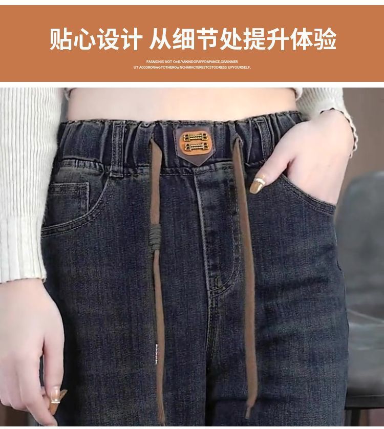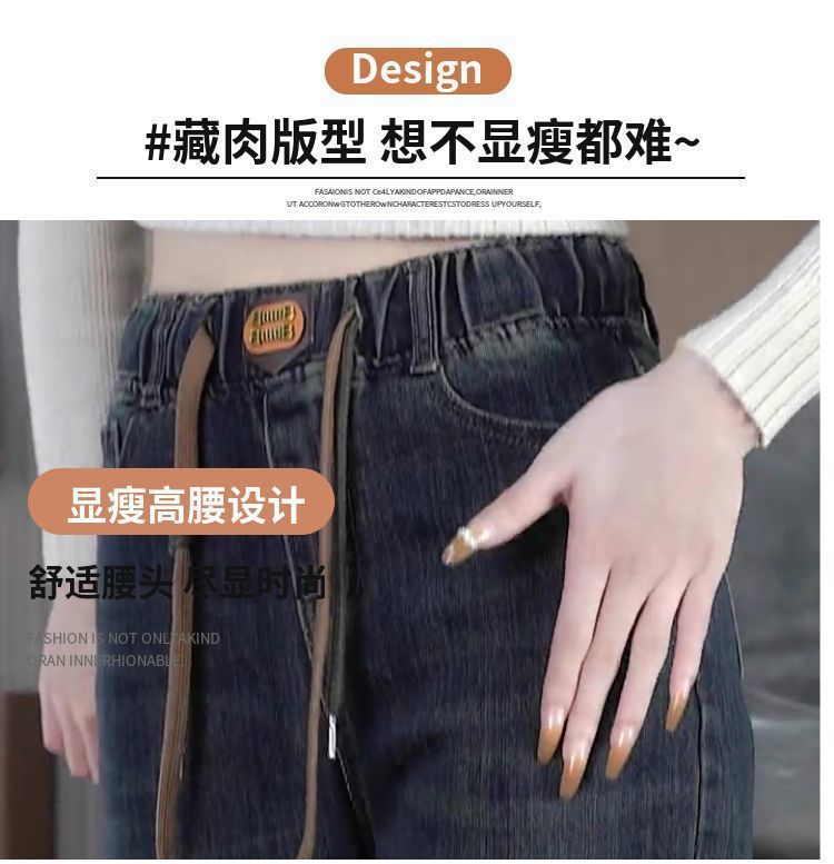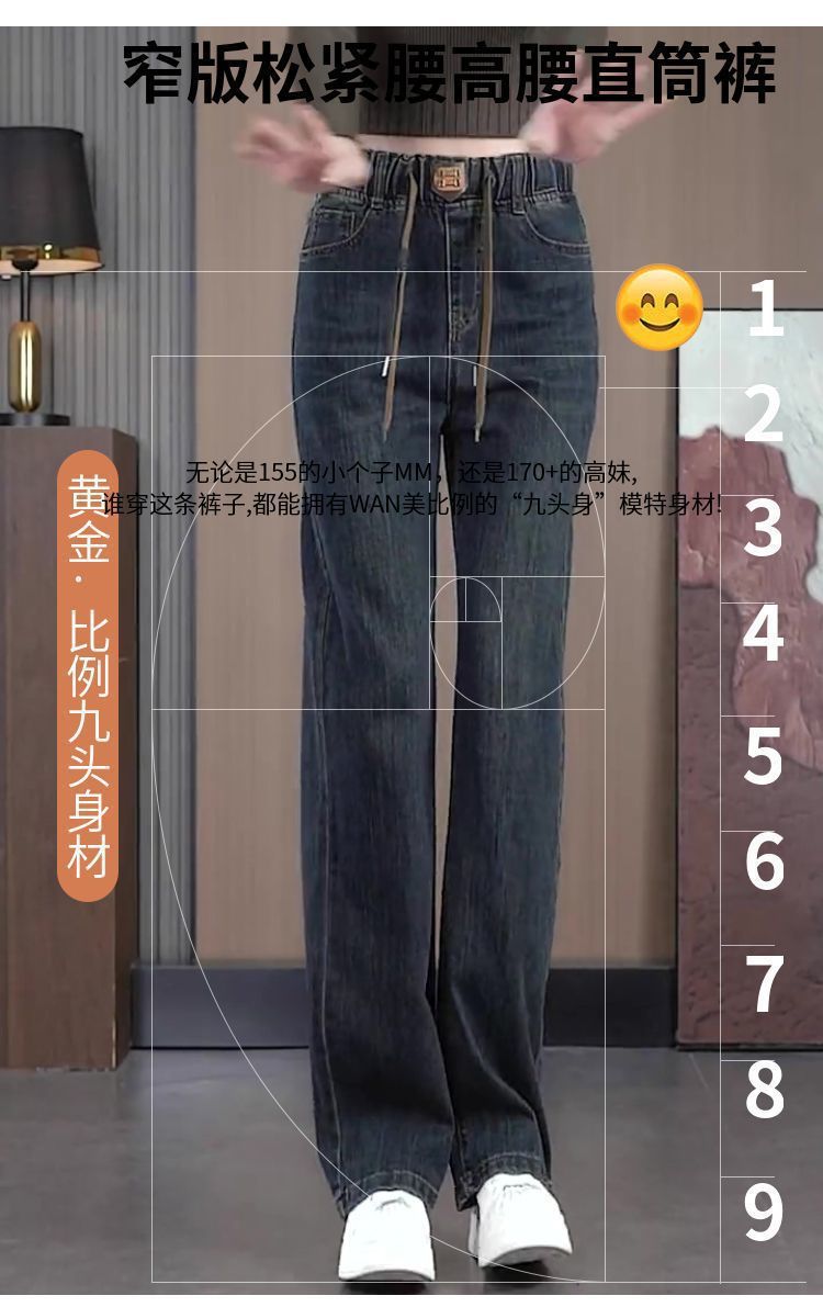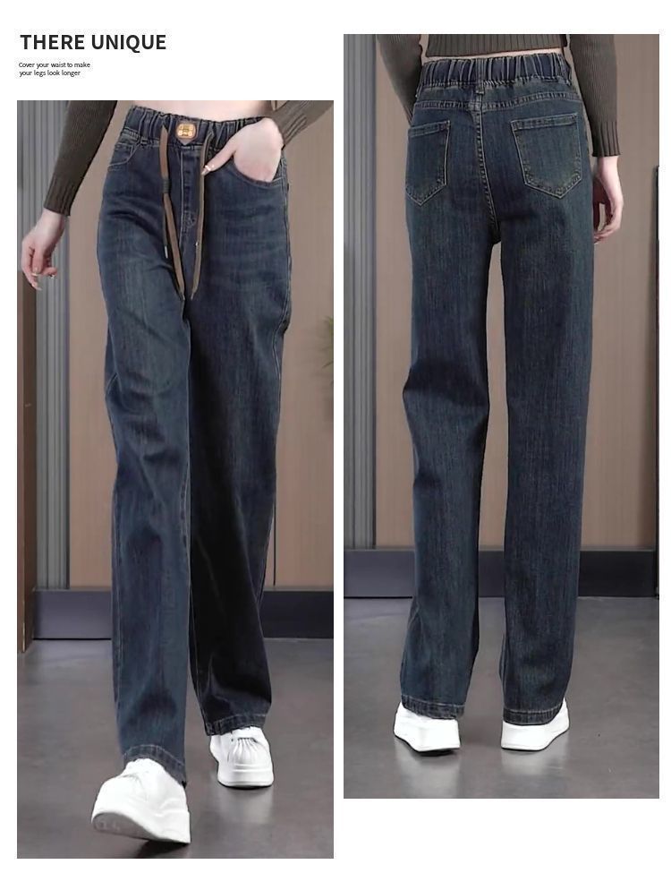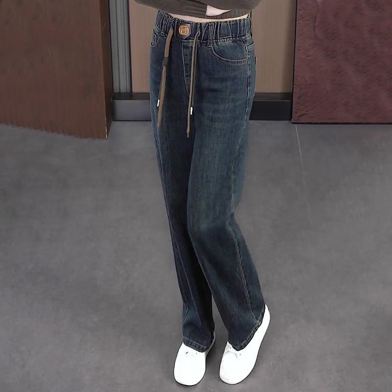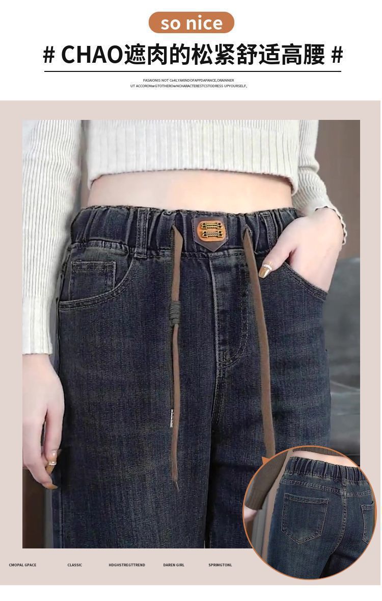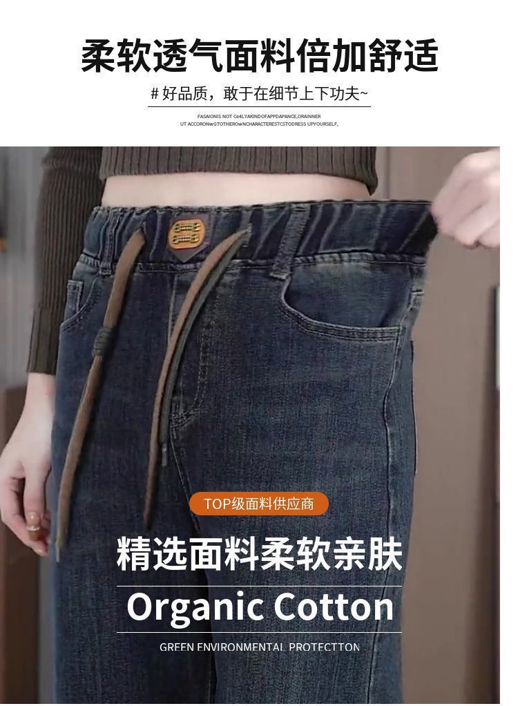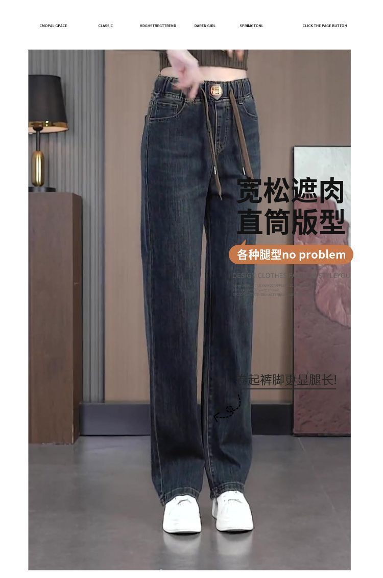 탄성 기모 좁은 넓은 다리 스트레이트 청바지 2024 느슨한 새로운 높은 허리 슬리밍 봄과 가을 바지 스트레이트 바지스토어 가기