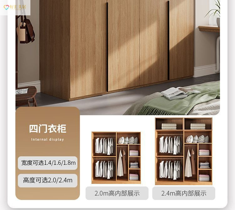 현대적인 심플한 조합형 캐비닛 원목 옷장 가정용 침실 양문형 소형 아파트 인기 대형 옷장스토어 가기