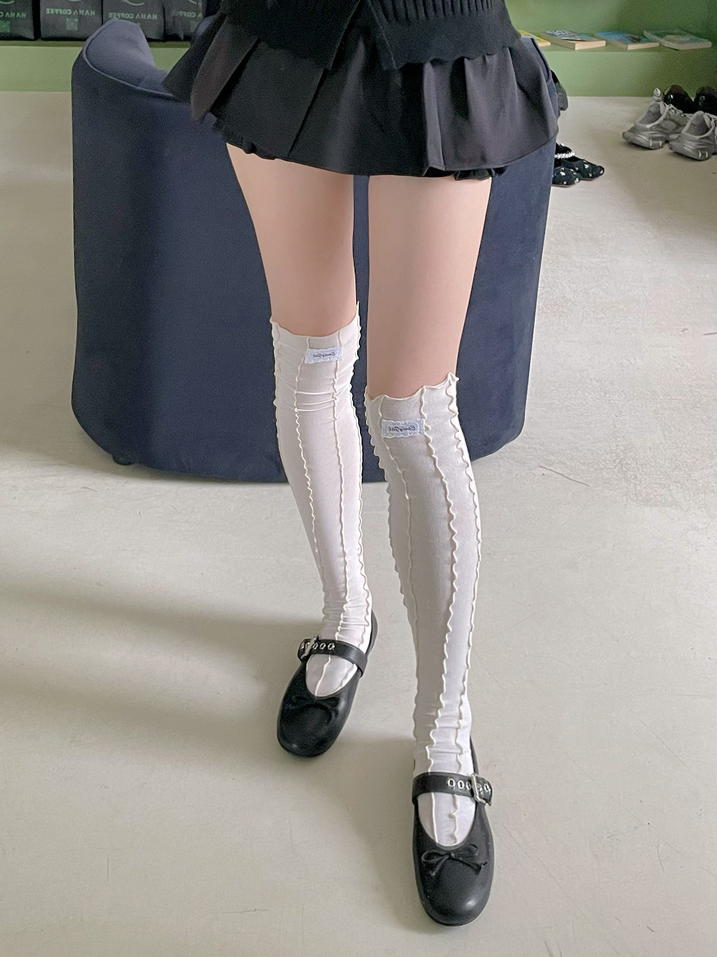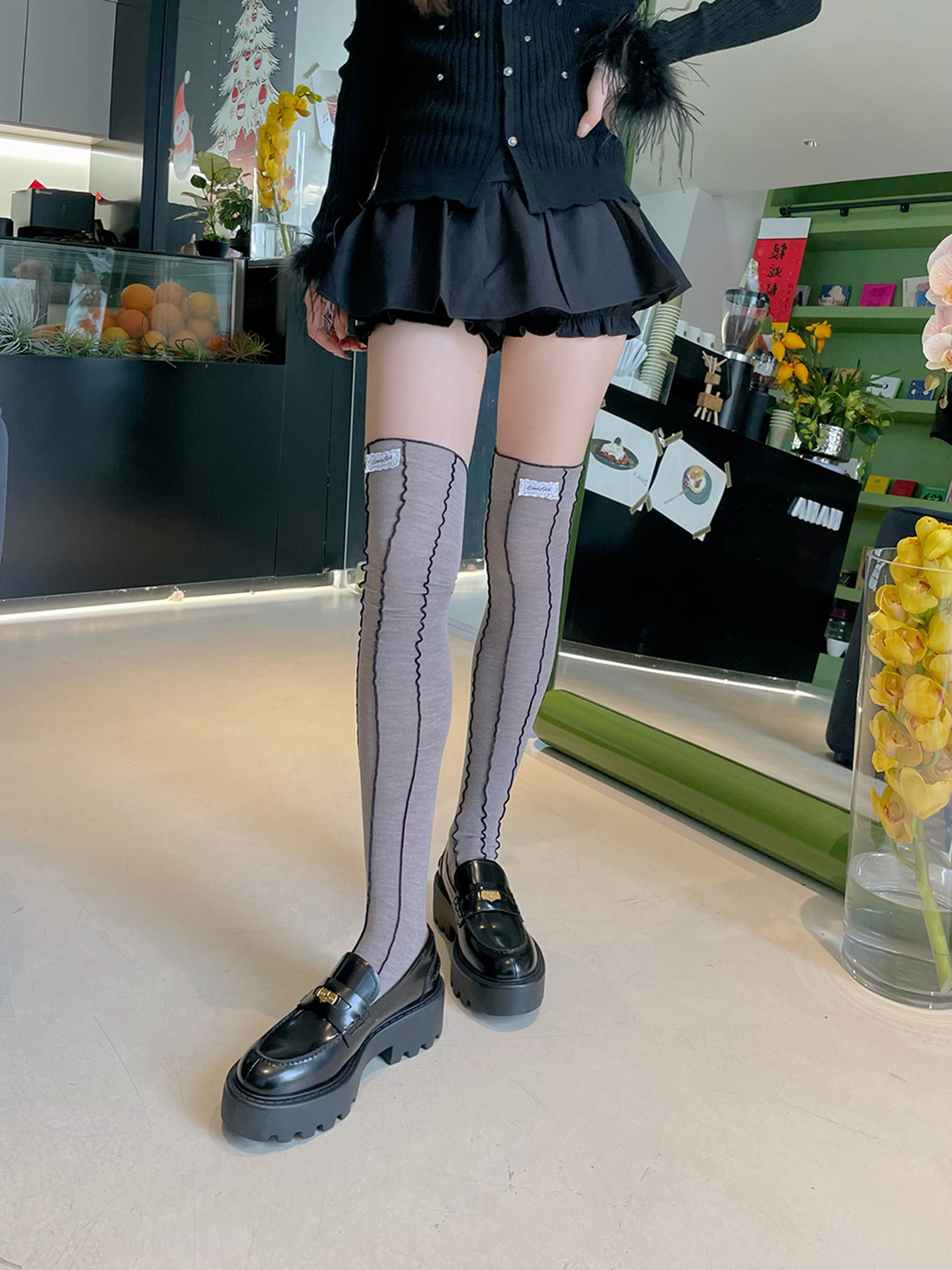 봄과 여름 새로운 나무 귀 색상 일치 레이스 오버 더-무릎 양말 초박형 자외선 차단제 오버-더-무릎 하이 레그 양말
