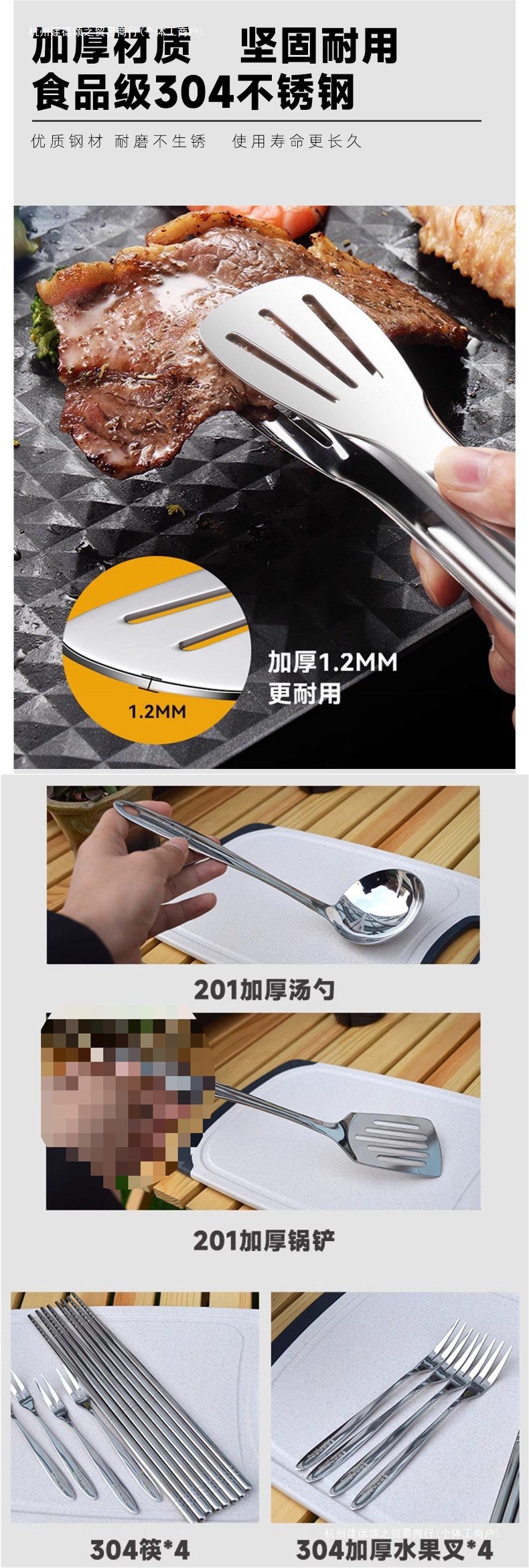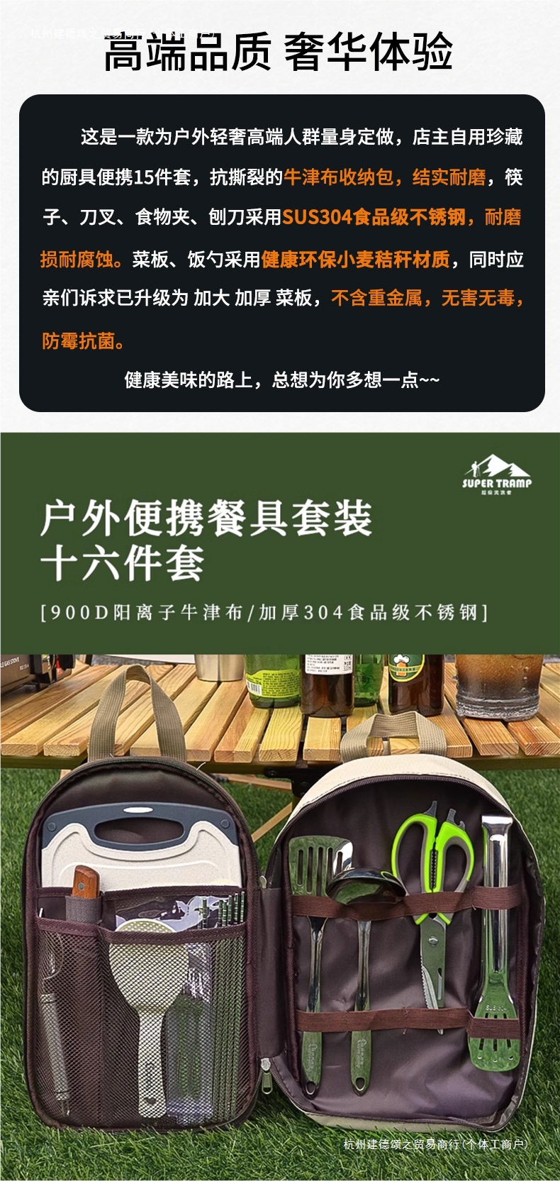 야외 주방용품 휴대용 세트 스테인레스 스틸 16 조각 세트 캠핑 및 캠핑 행 용품 보관 가방 바베큐 조리기구스토어 가기