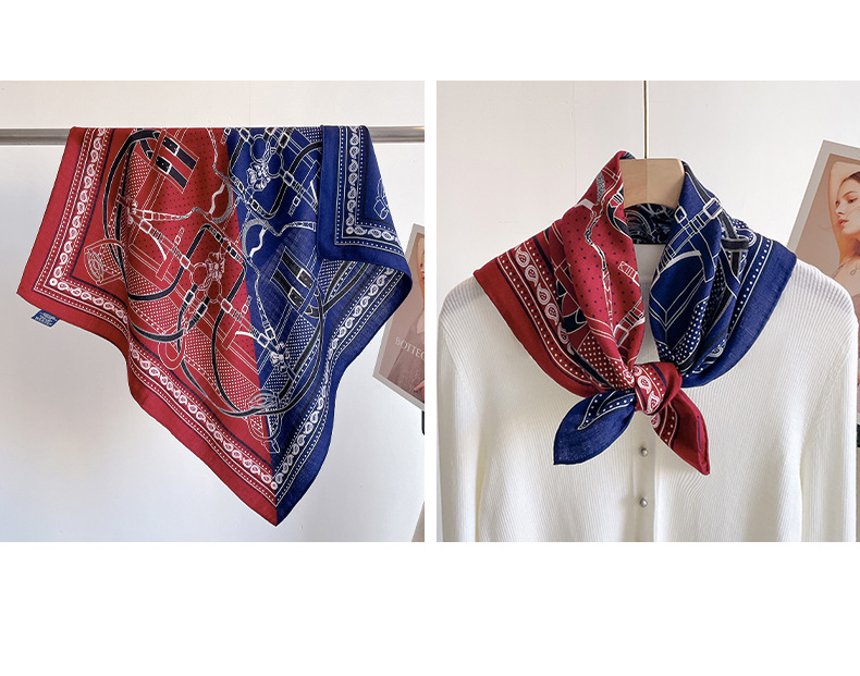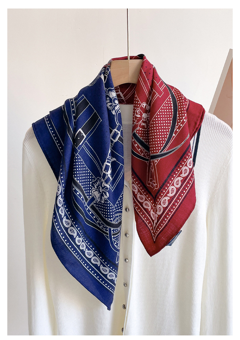 실크 스퀘어 스카프 양모 스카프 여성의 2024 새로운 목 보호 실크 스카프 봄과 가을 양모 가을 하이 엔드 얇은스토어 가기