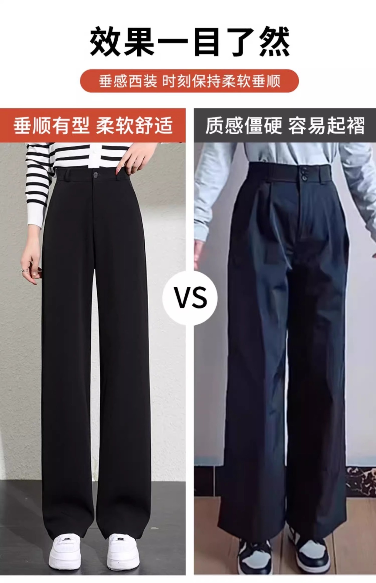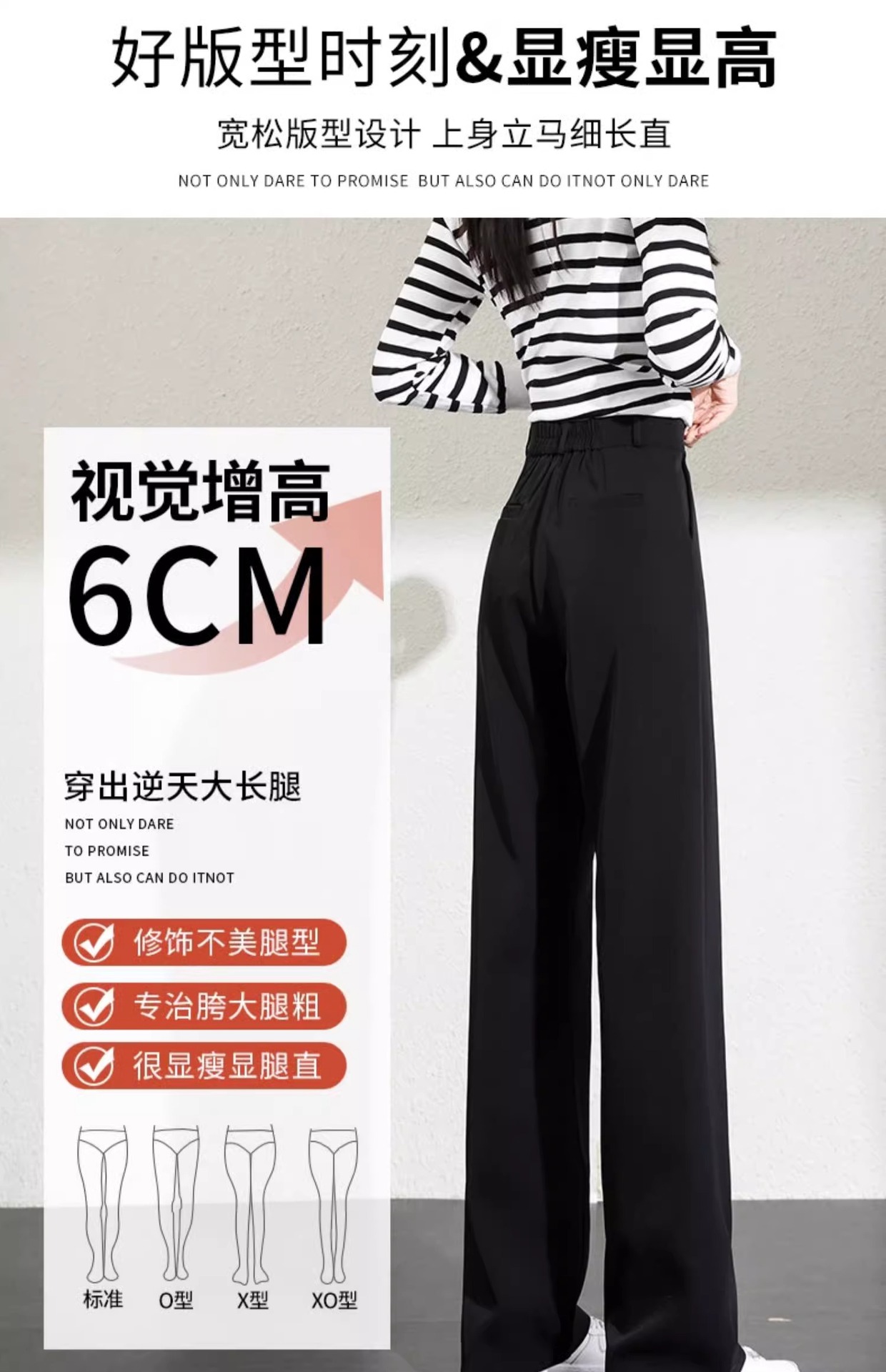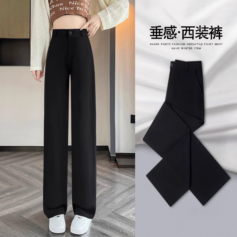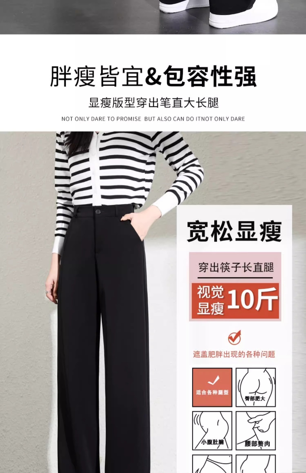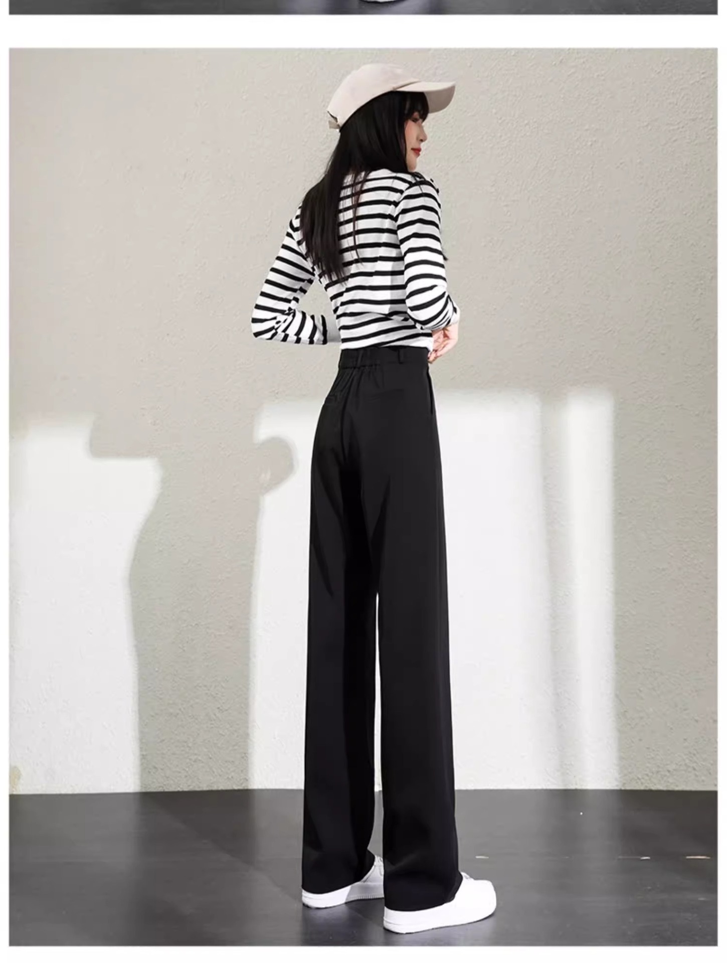 세트 바지 여성의 봄과 가을 2025 새로운 하이 엔드 딥 센스 작은 높은 허리 넓은 다리 검은 좁은 판 스트레이트 바지스토어 가기