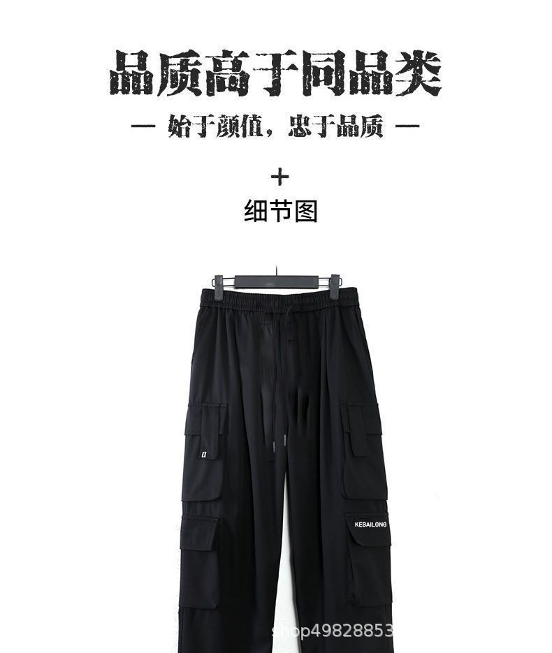 트렌디 한 남성 블랙 아메리칸 오버홀 하이 스트리트 보이즈 스트레이트 루즈 바지 남성용 트렌디 브랜드 와이드 레그 캐주얼 바지