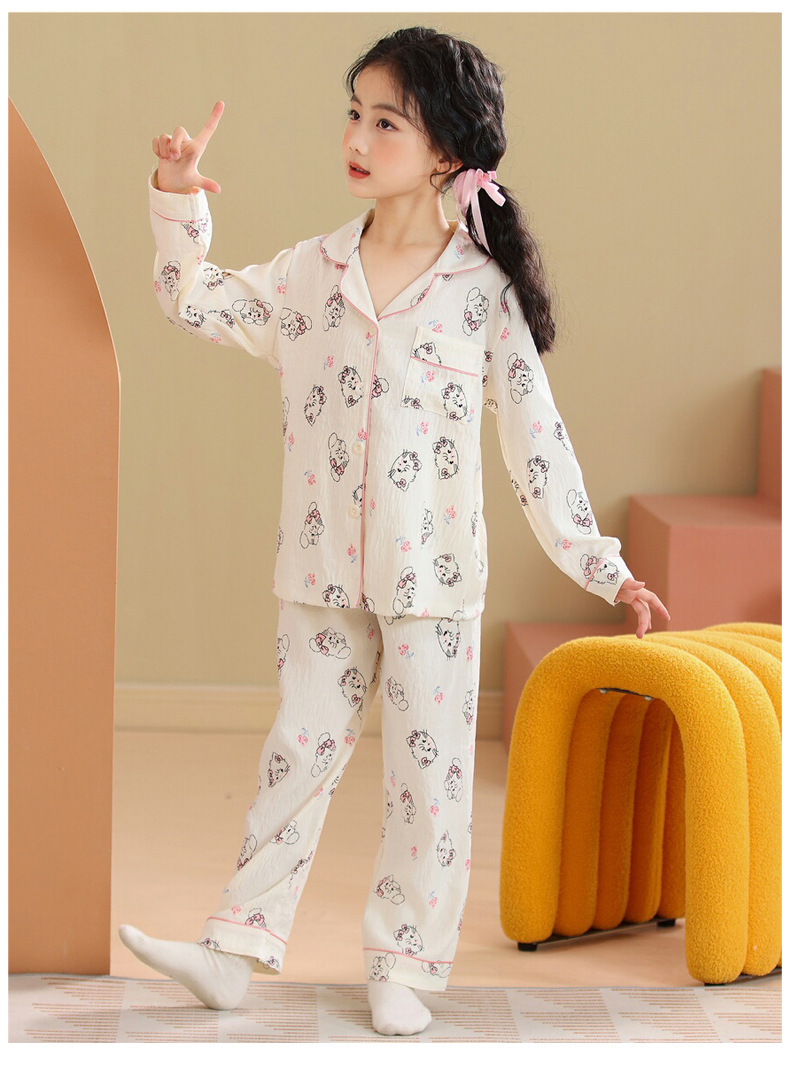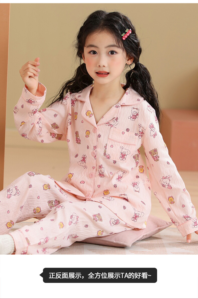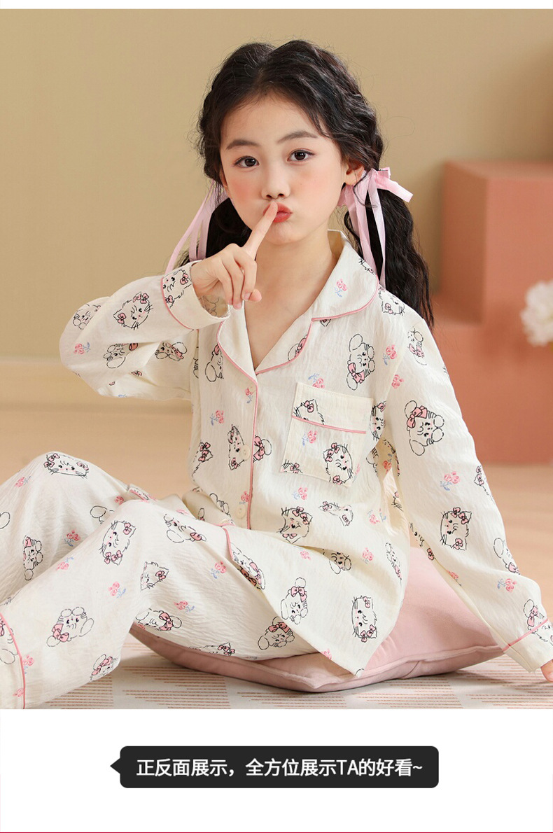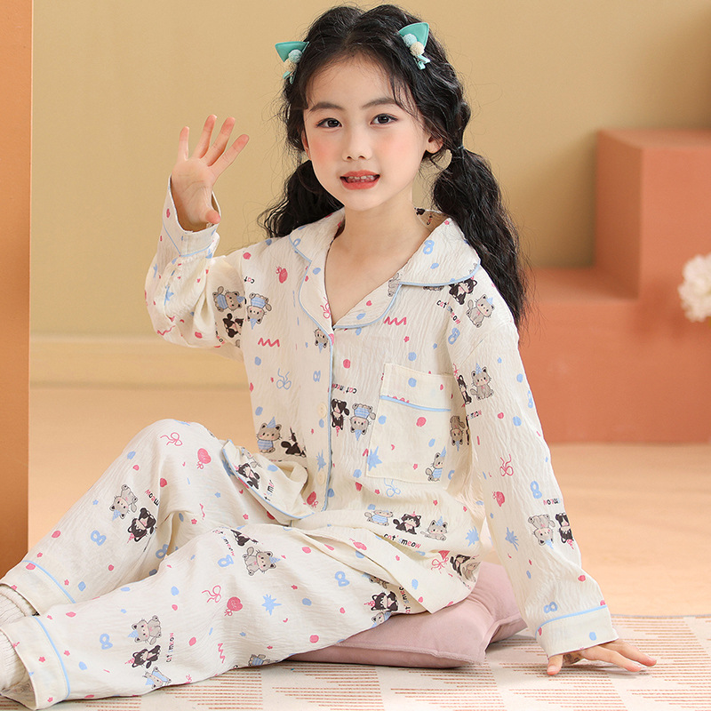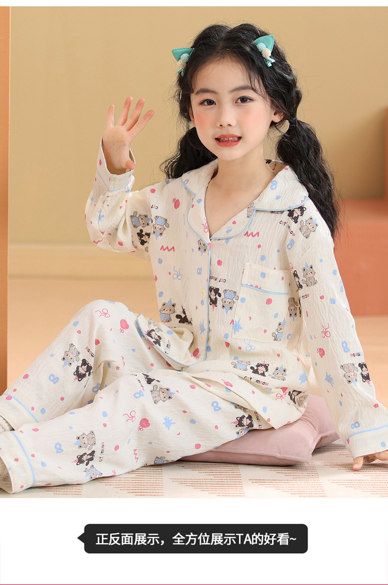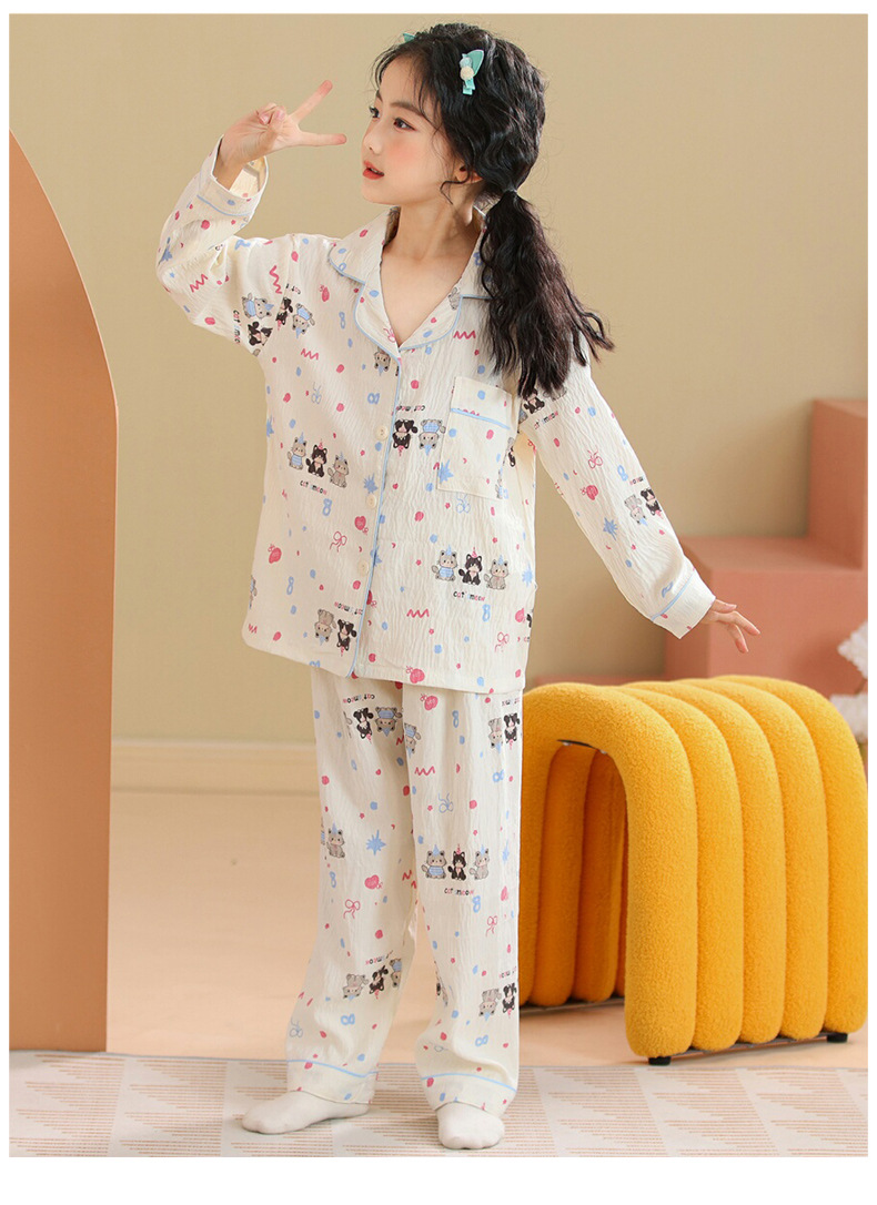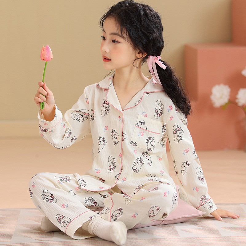 소녀 잠옷 봄과 가을 2025 새로운 스타일 소녀 스타일리시 부드러운 왁스 구름 면 공주 스타일 어린이 집 옷 가을
