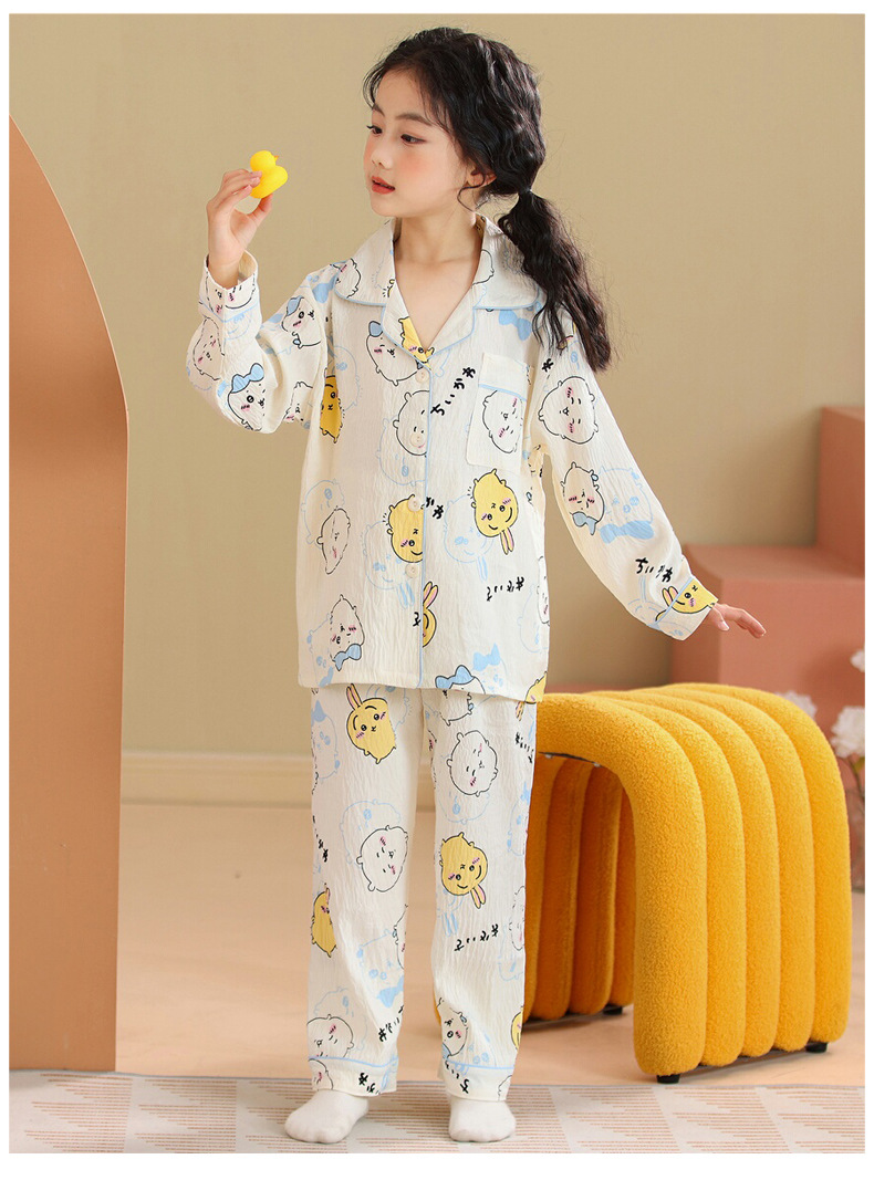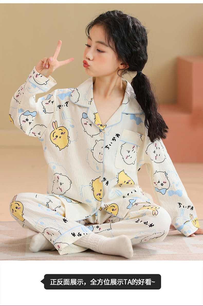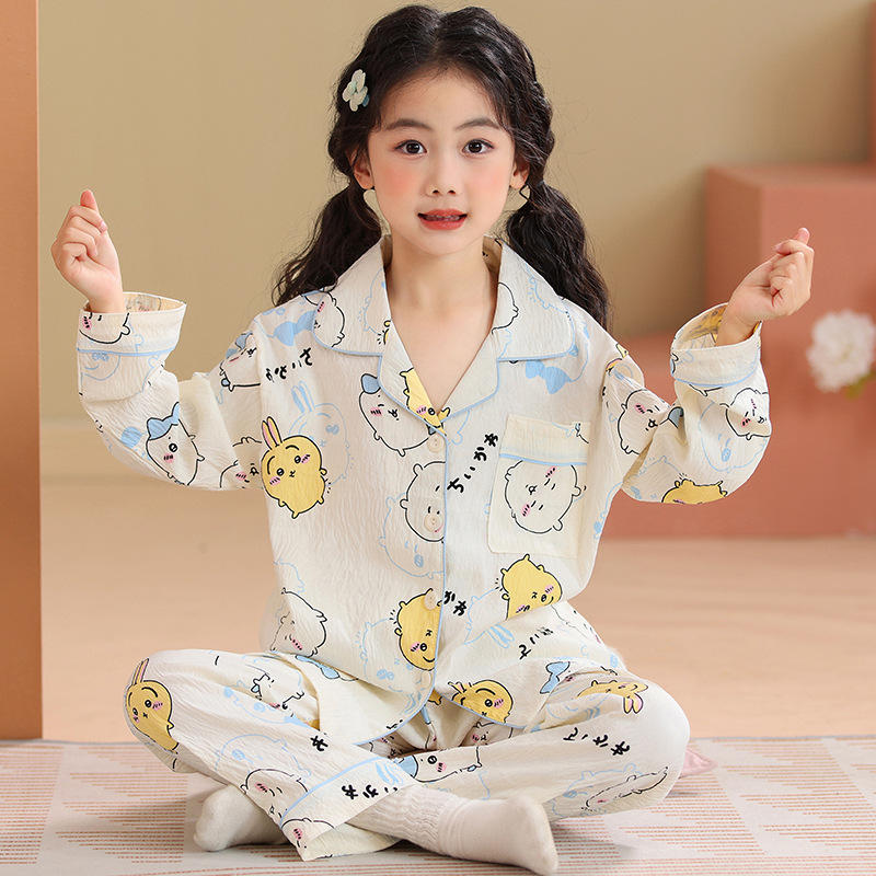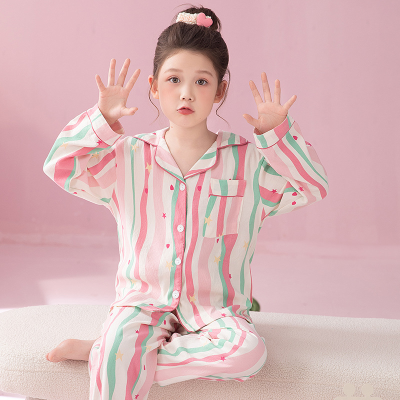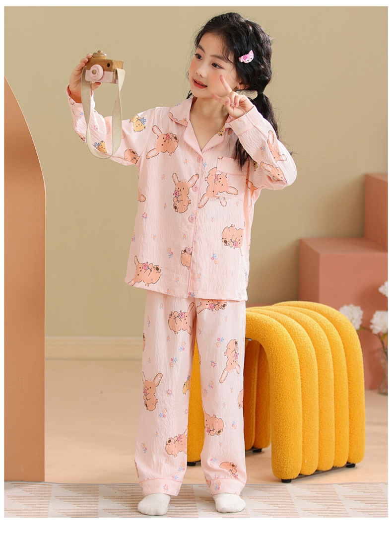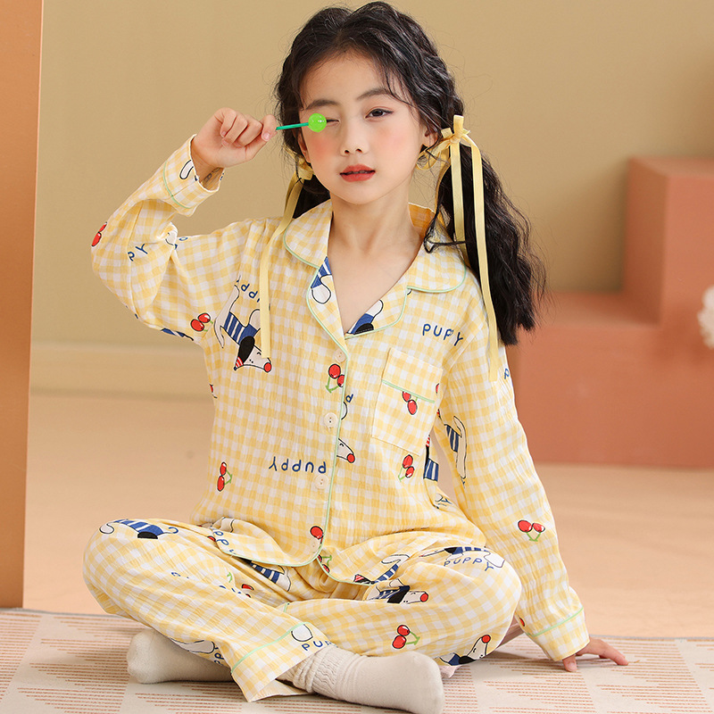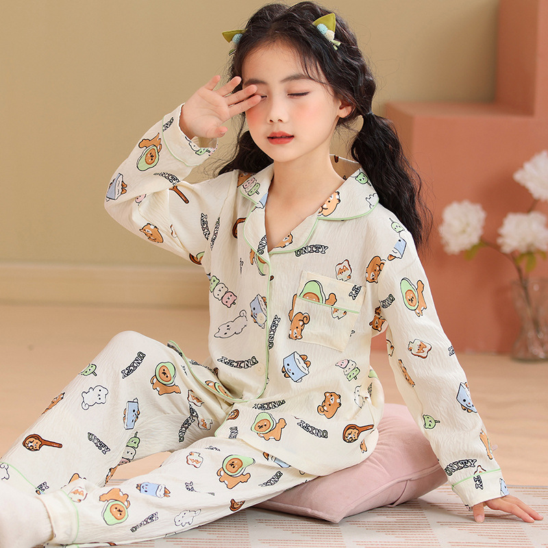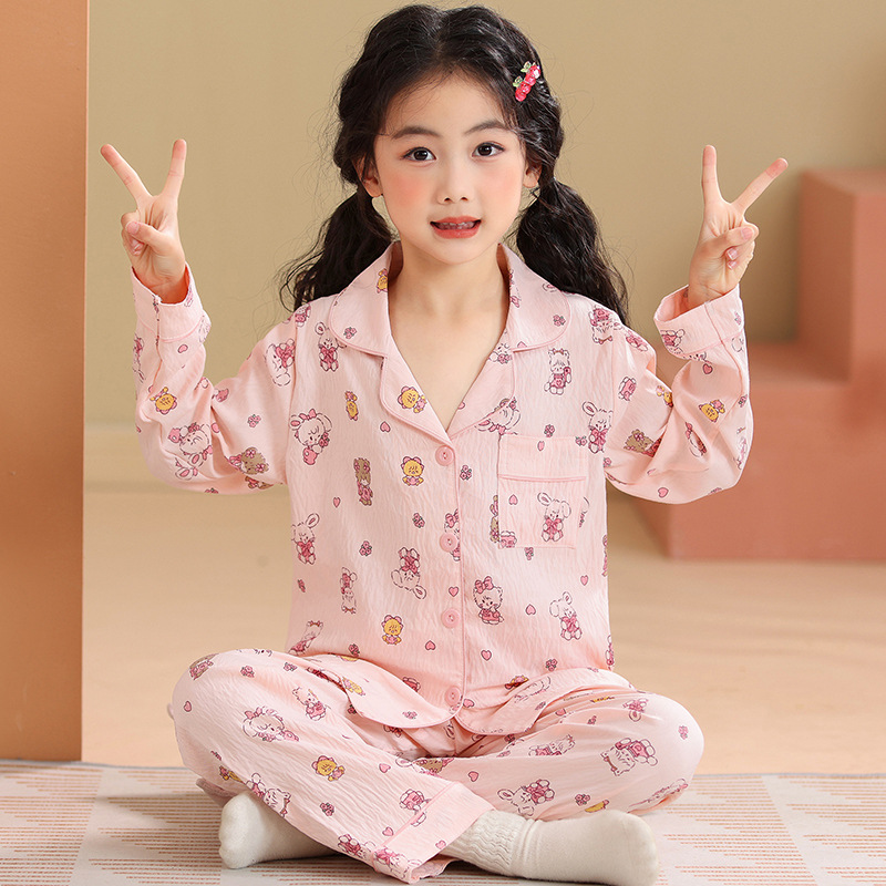 소녀 잠옷 봄과 가을 2025 새로운 스타일 소녀 스타일리시 부드러운 왁스 구름 면 공주 스타일 어린이 집 옷 가을