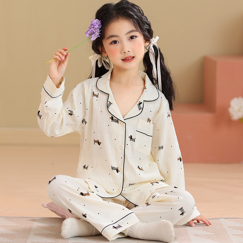 소녀 잠옷 봄과 가을 2025 새로운 스타일 소녀 스타일리시 부드러운 왁스 구름 면 공주 스타일 어린이 집 옷 가을스토어 가기