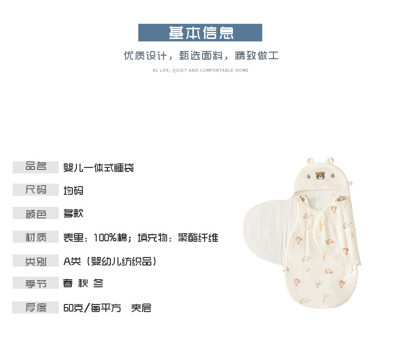 신생아 안티 킥 퀼트를 휘두르는 신생아 지퍼를위한 봄과 가을 얇은 면화 아기 이불 포장