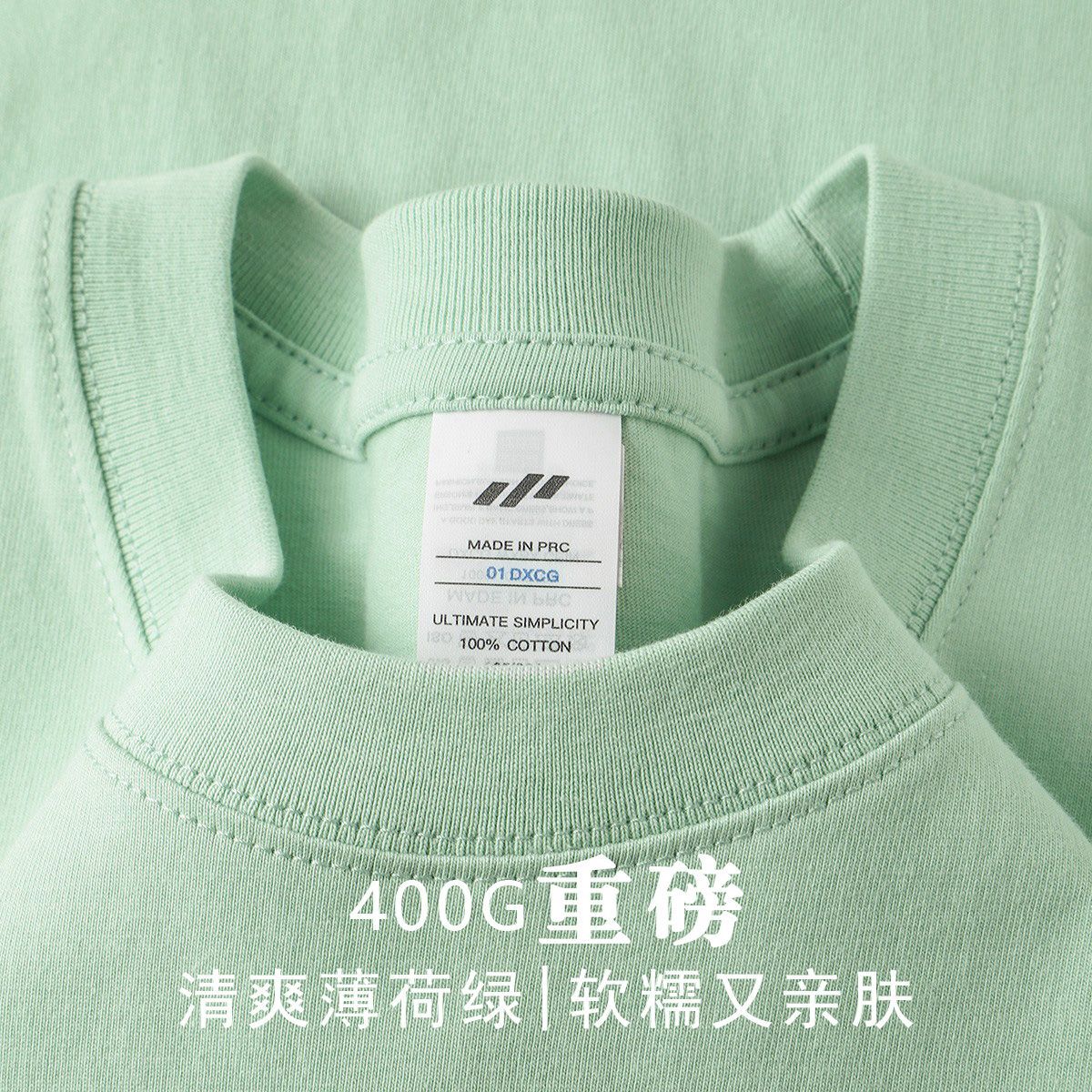 헤비급 400g 순면 반팔 남성용 여름 루즈하고 다재다능하며 피부 친화적이며 편안하고 두껍고 불투명한 여성용 바닥 셔츠 탑스토어 가기