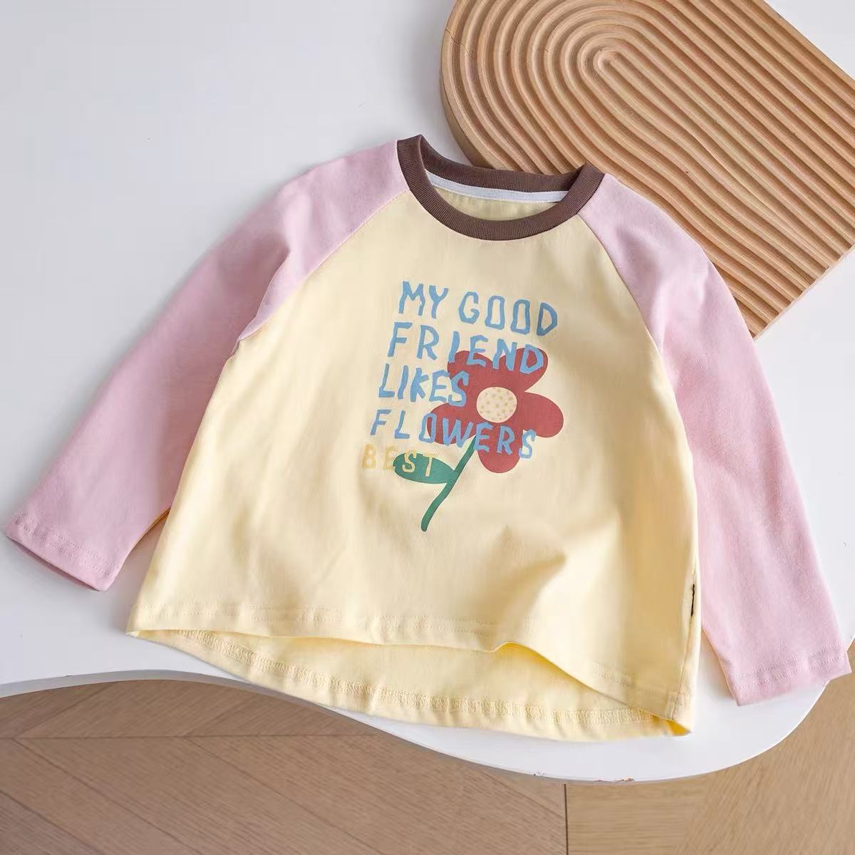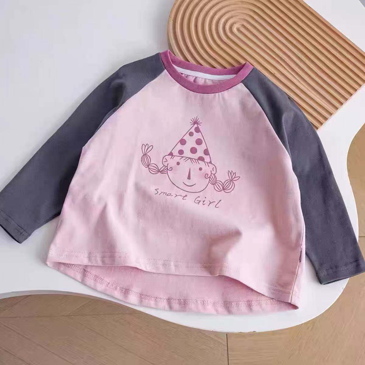 100% 코튼 걸스 긴팔 라슬란 티셔츠 아동베이스 셔츠 색상 매칭 봄과 가을 크루 넥 아기의 서양식 탑