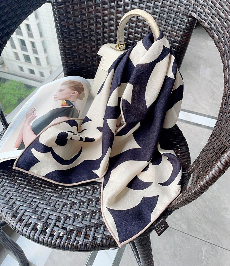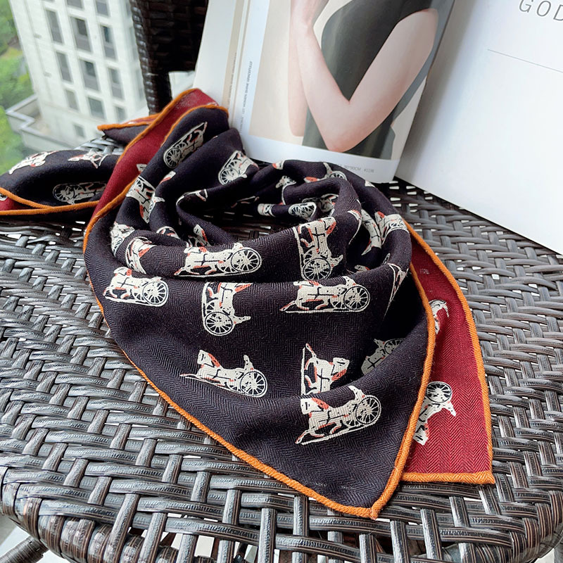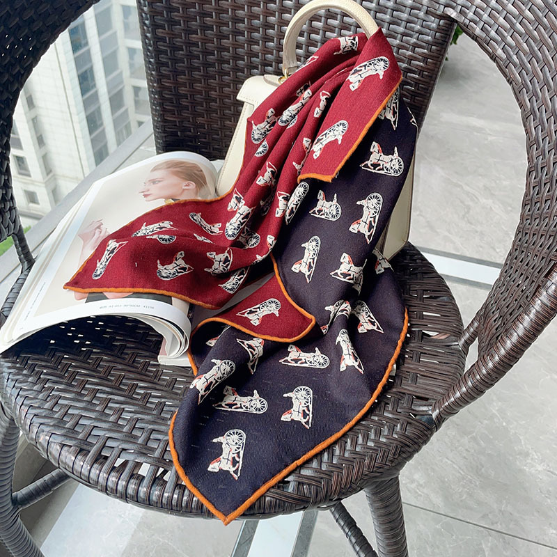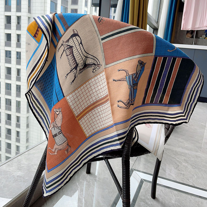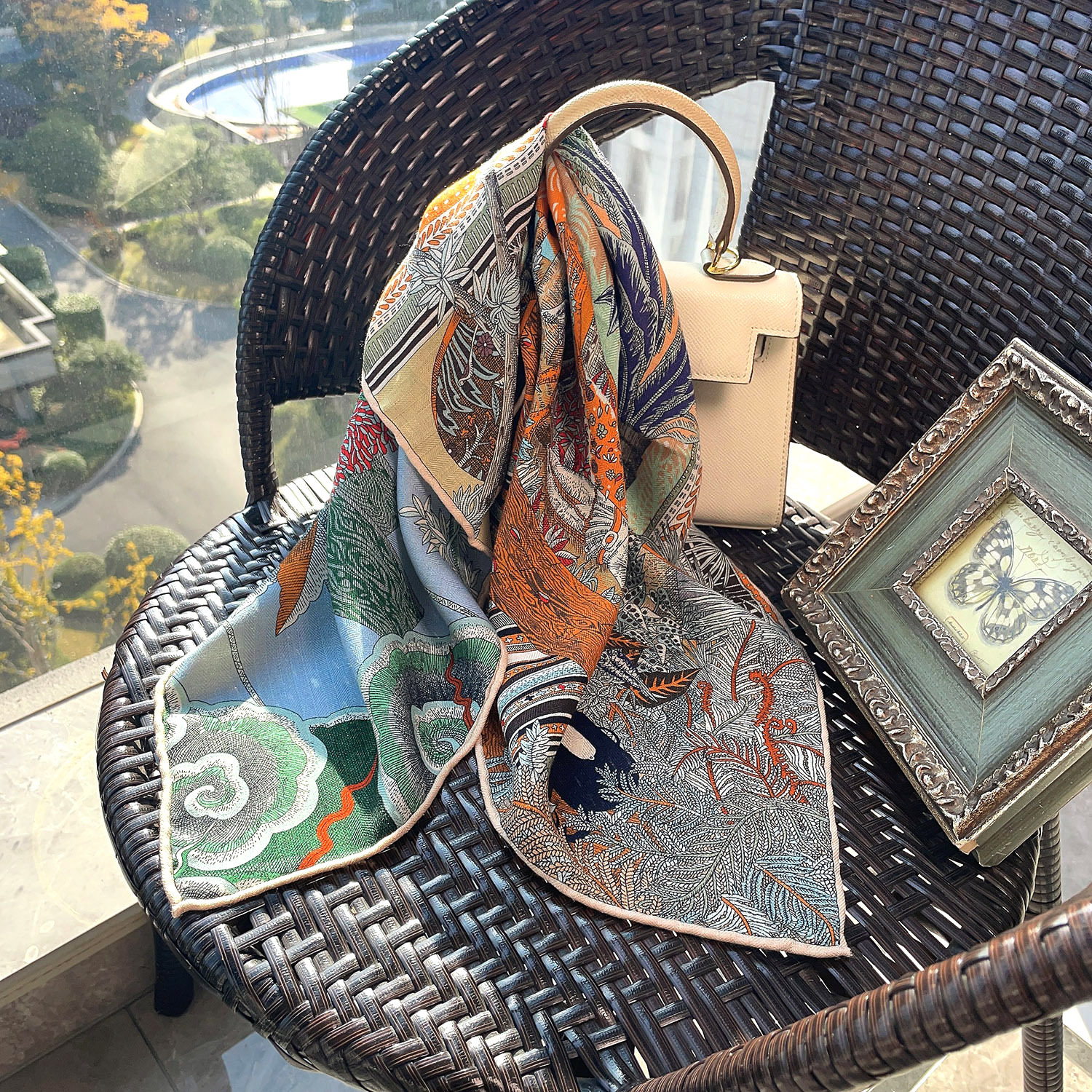 65*65cm 작은 실크 울 스퀘어 타월 백금 푸바오 정글 양면 다른 색상 따뜻한 목 의류 스카프