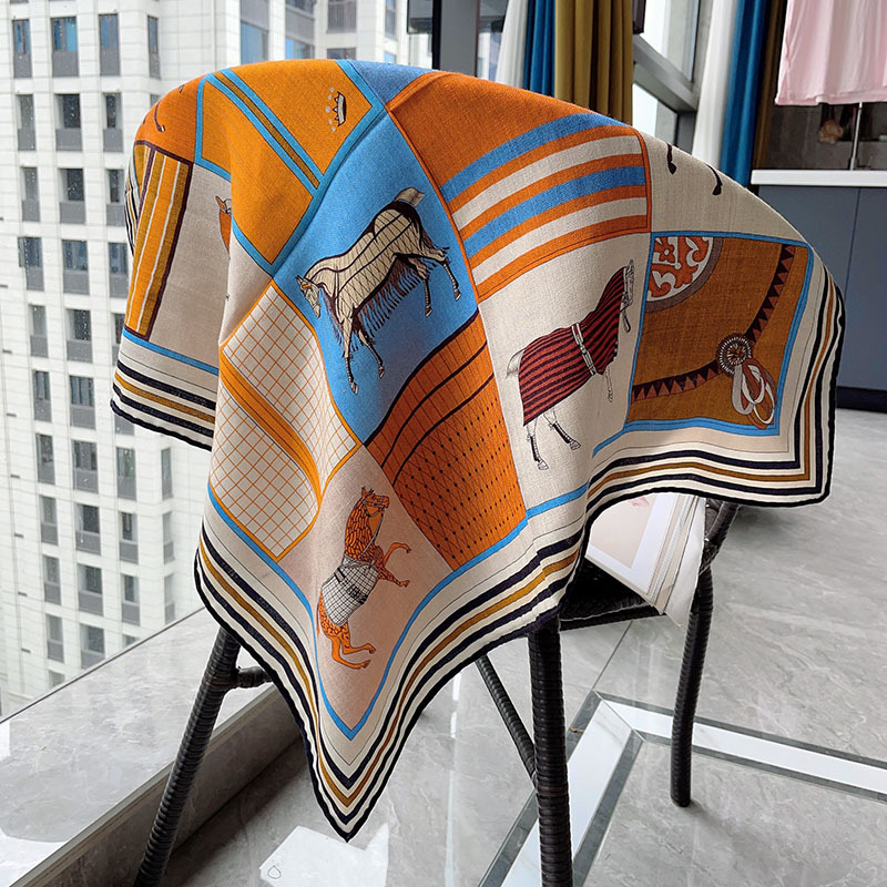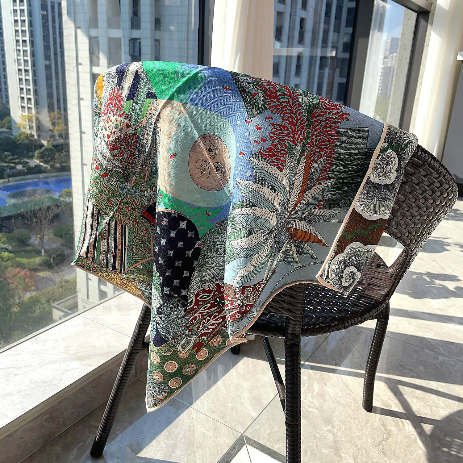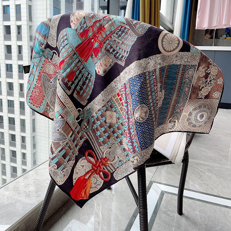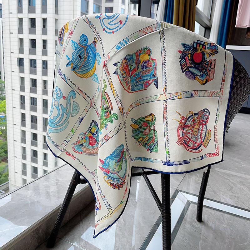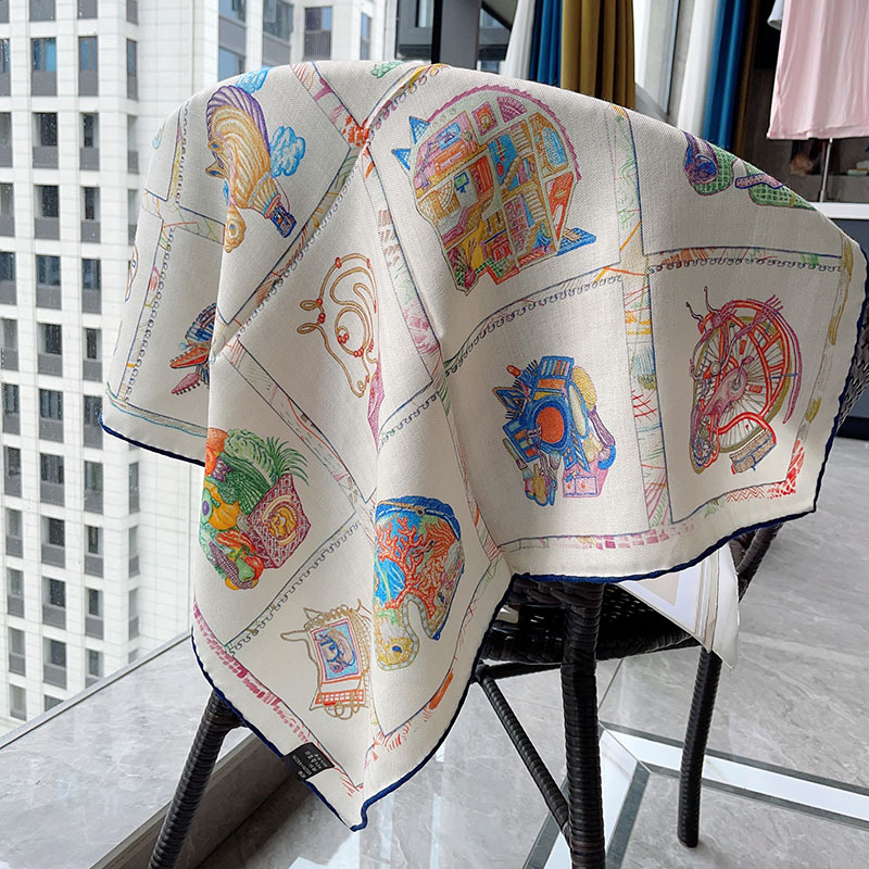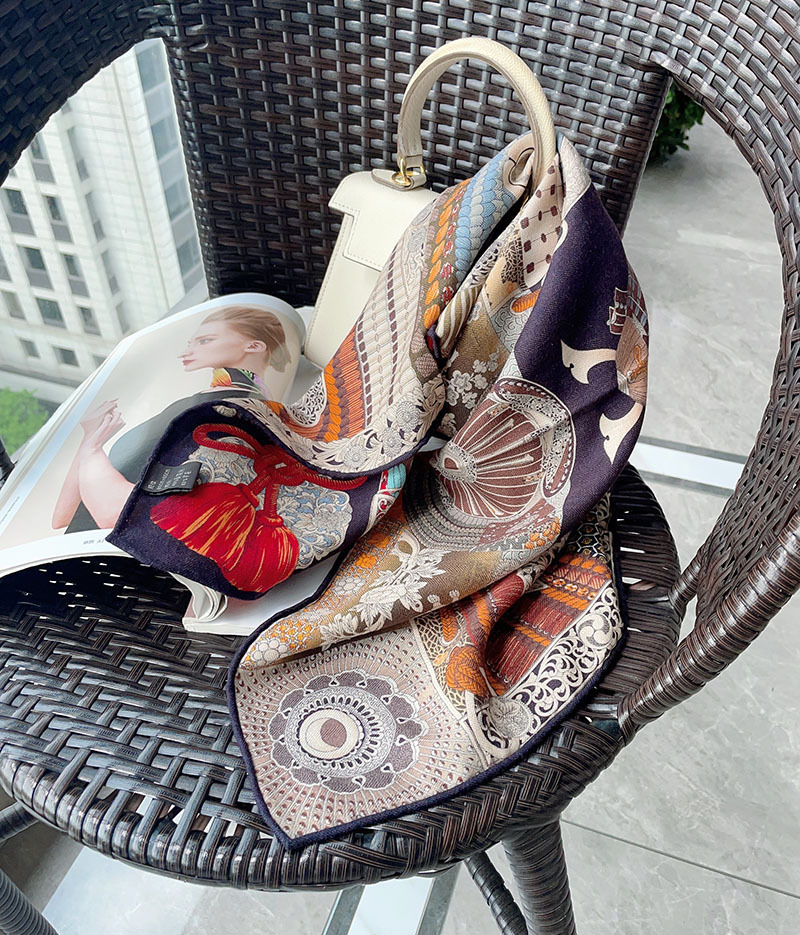 65*65cm 작은 실크 울 스퀘어 타월 백금 푸바오 정글 양면 다른 색상 따뜻한 목 의류 스카프