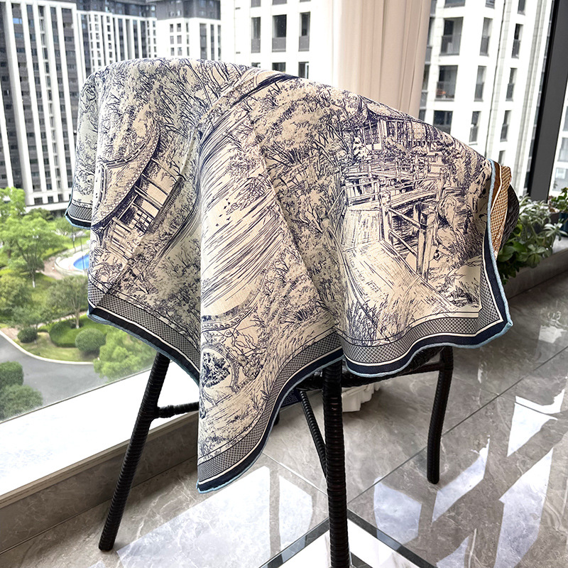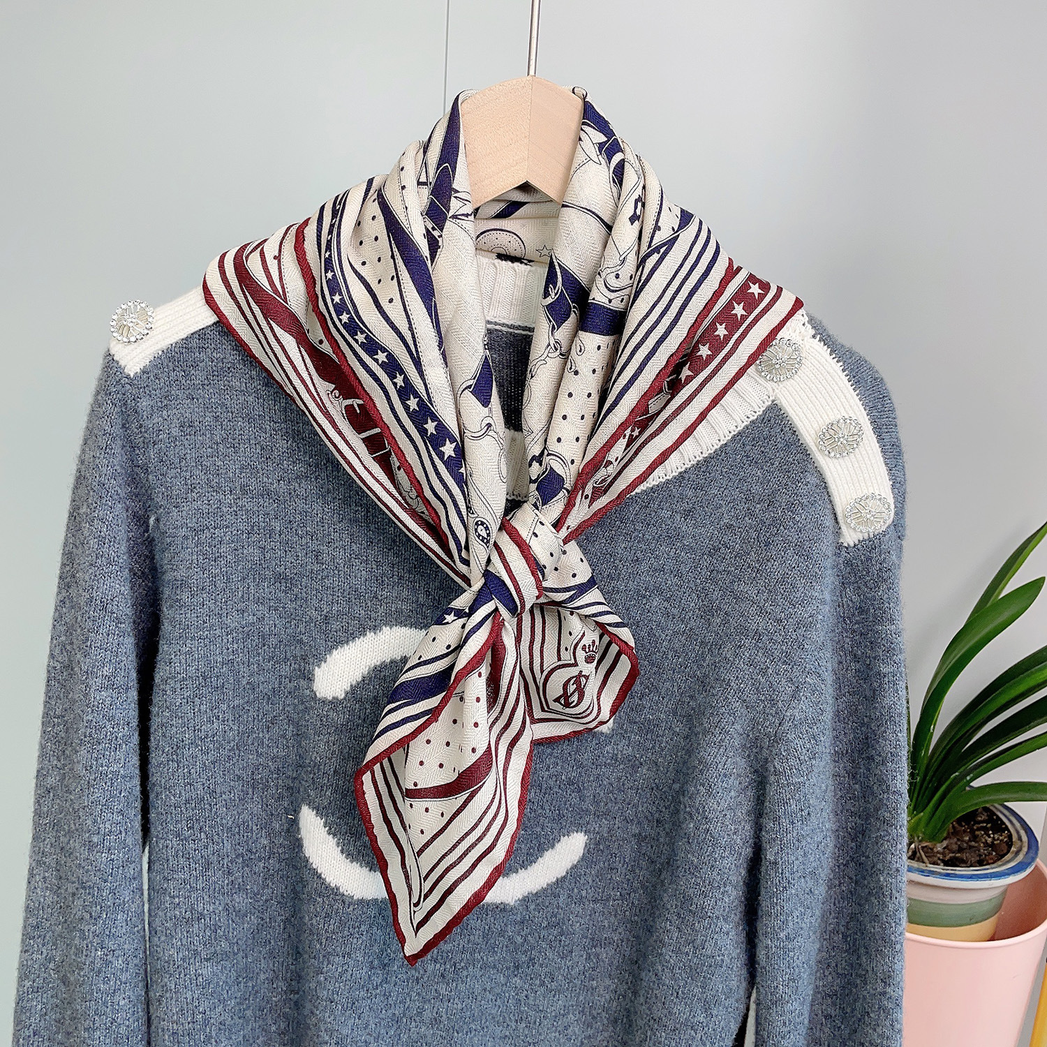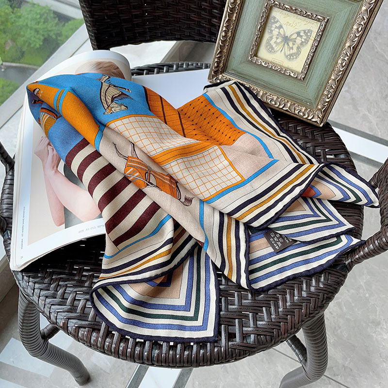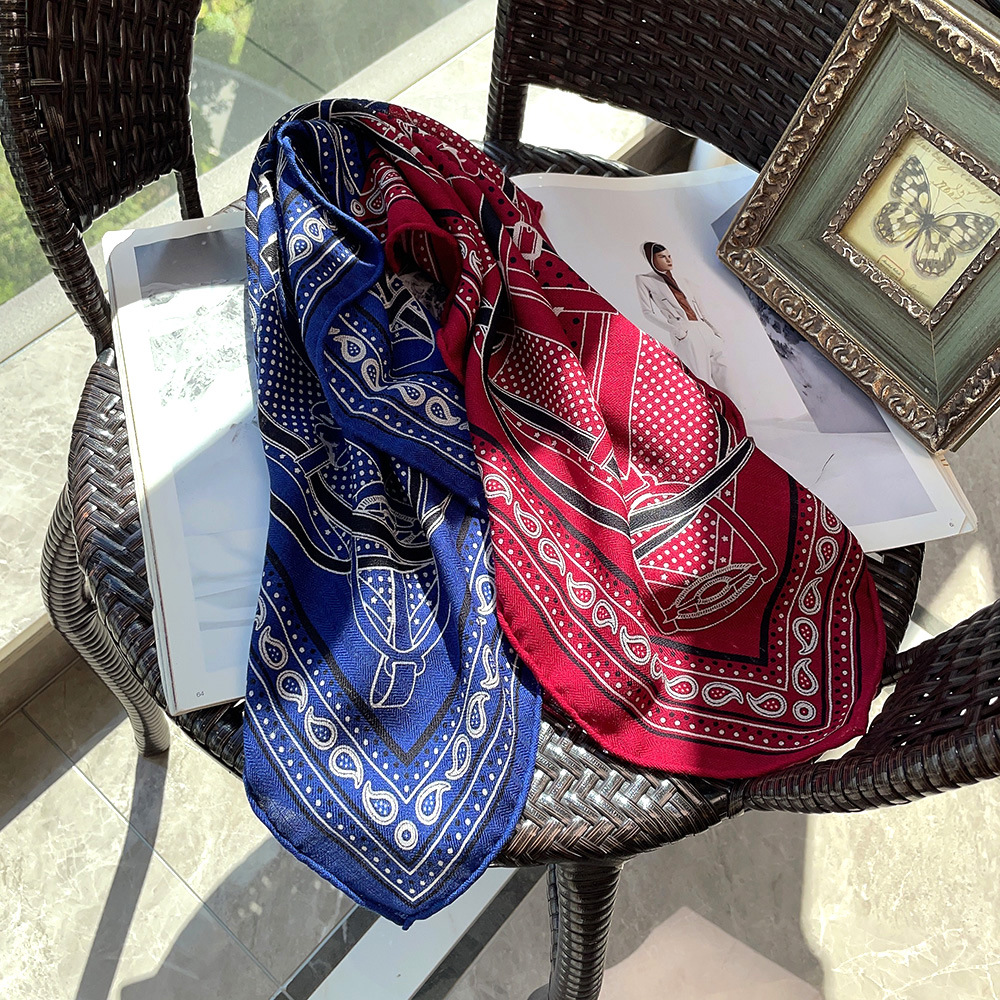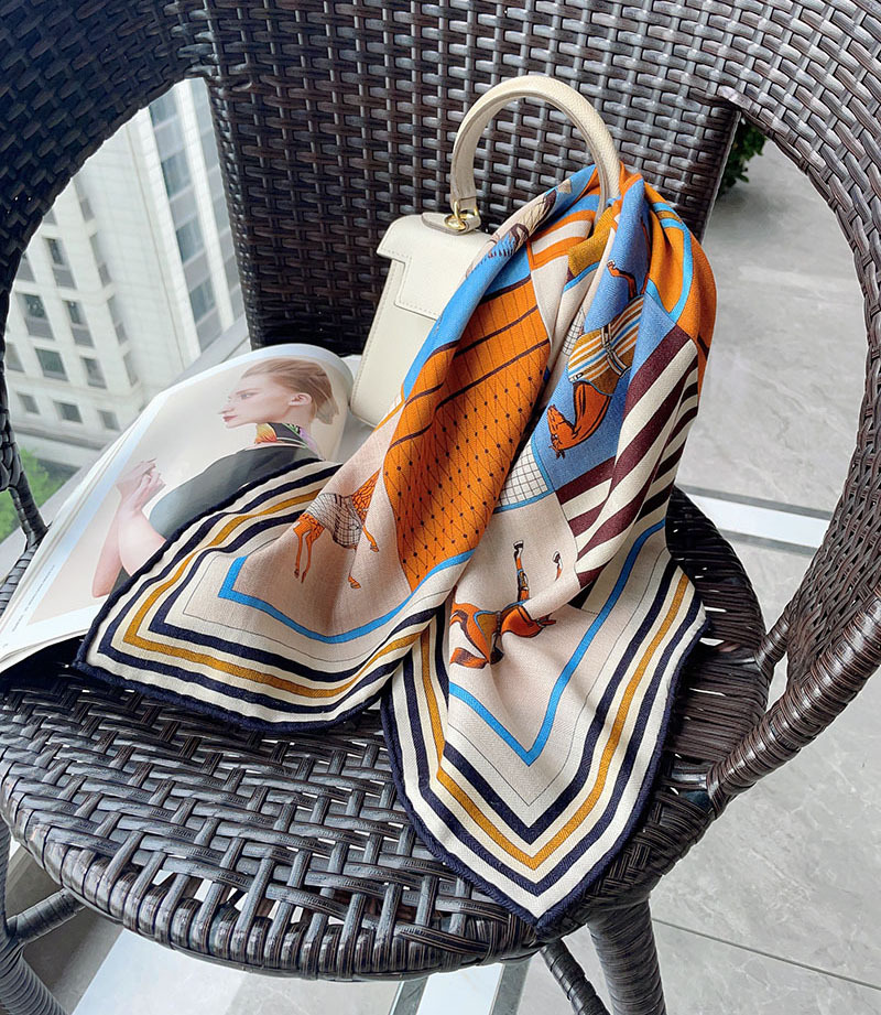 65*65cm 작은 실크 울 스퀘어 타월 백금 푸바오 정글 양면 다른 색상 따뜻한 목 의류 스카프