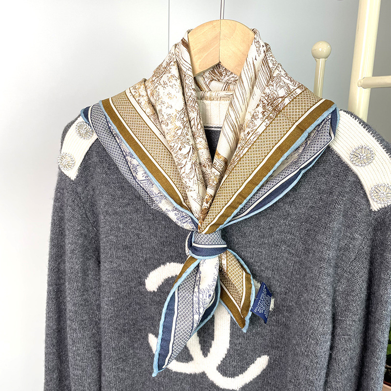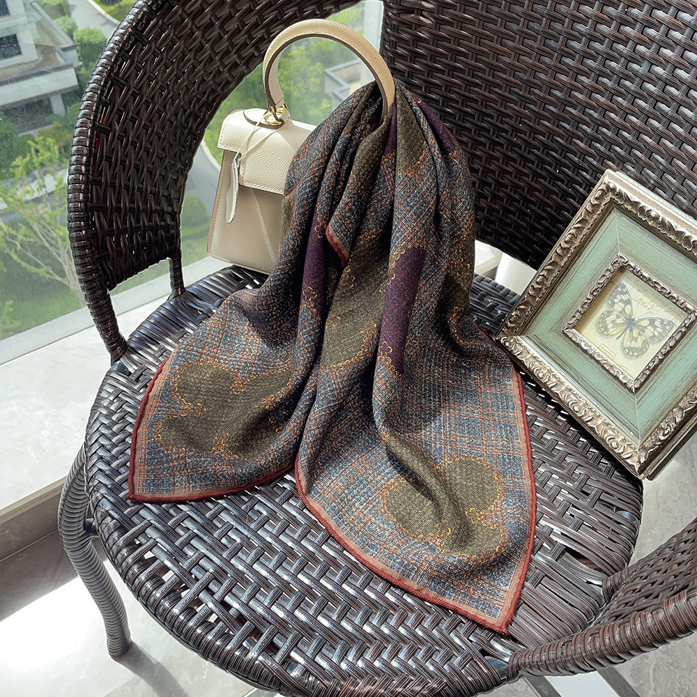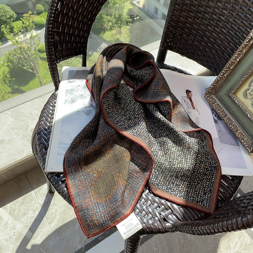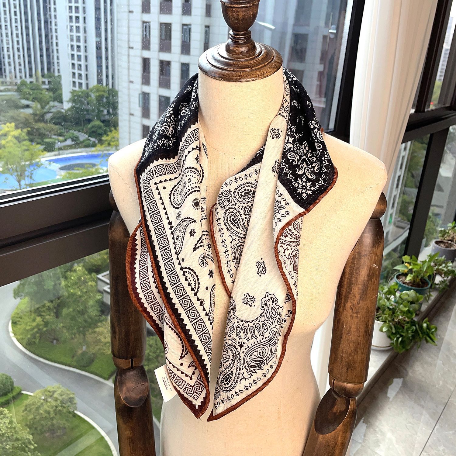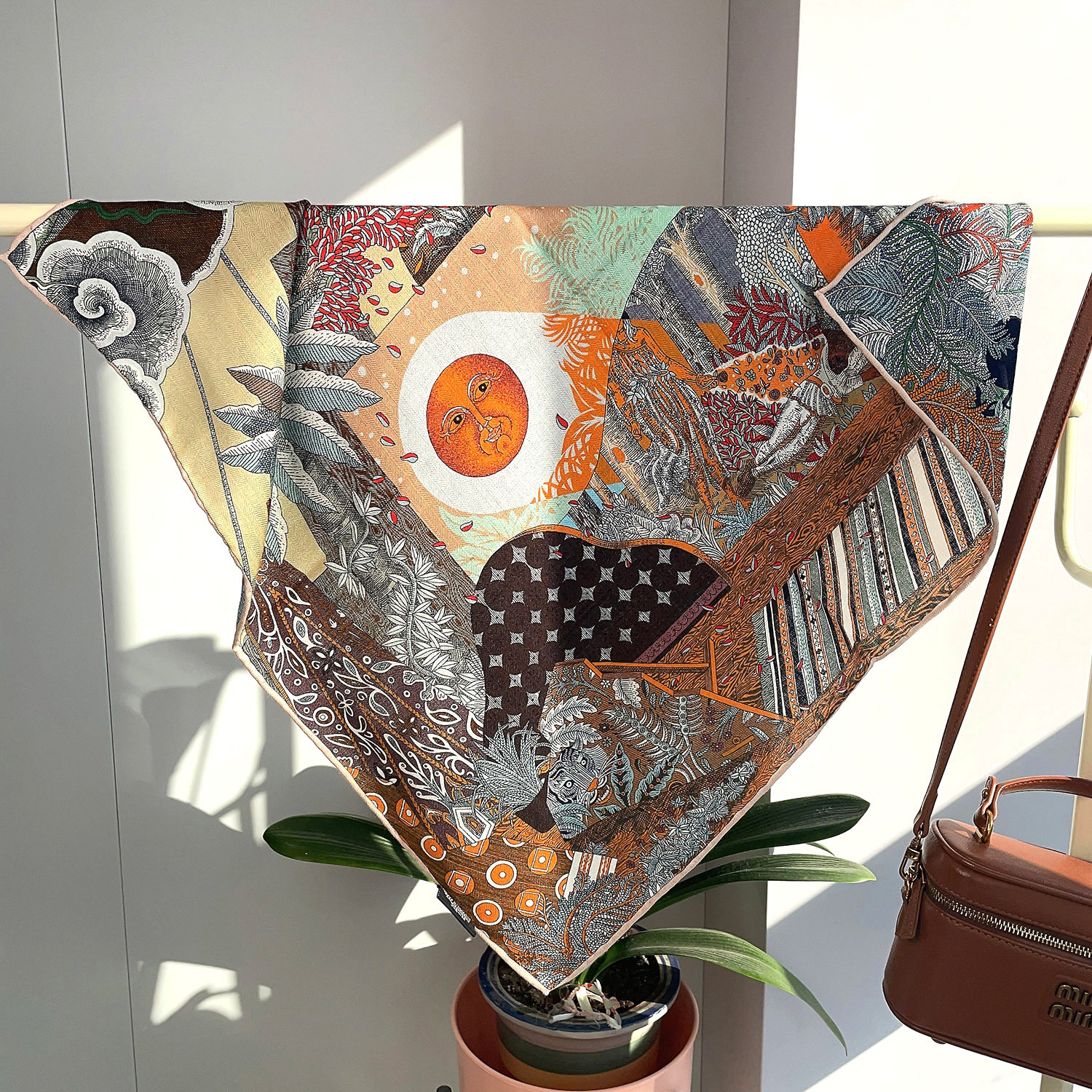 65*65cm 작은 실크 울 스퀘어 타월 백금 푸바오 정글 양면 다른 색상 따뜻한 목 의류 스카프스토어 가기