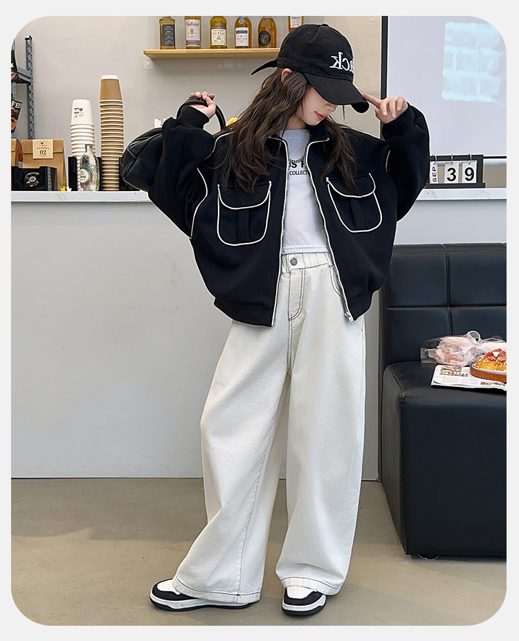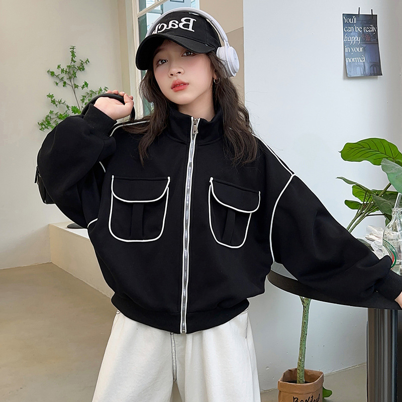 소녀 짧은 코트 봄과 가을 2025 새로운 어린이 느슨한 미드 빅 어린이 봄 탑 트렌디 스트리트 캐주얼 자켓