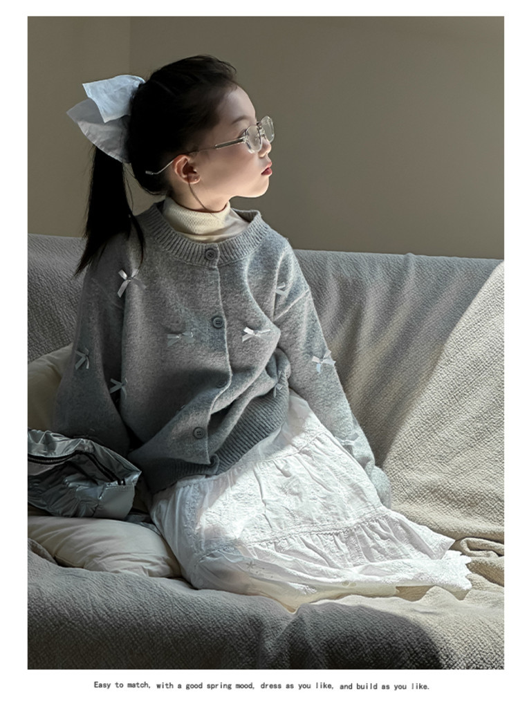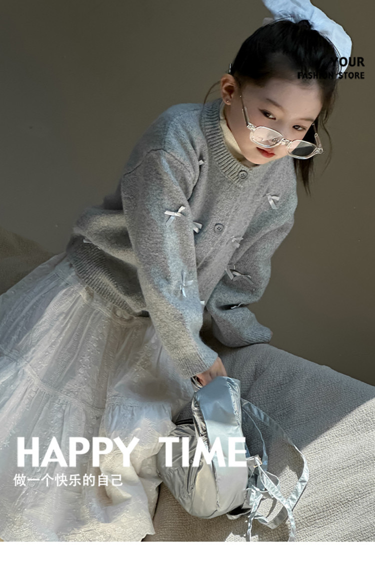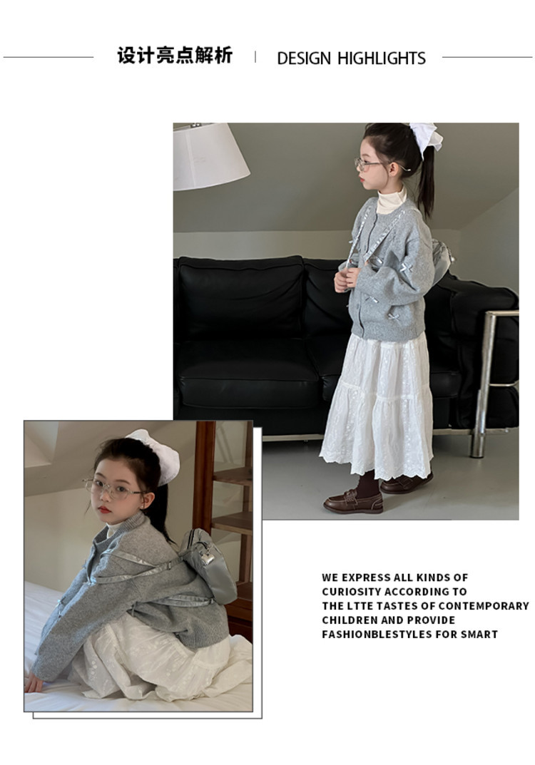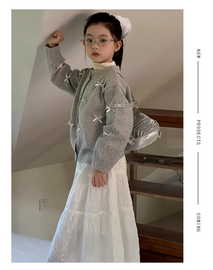소녀의 봄 스웨터 2025 새로운 어린이 니트 활 카디건 스웨터 서양식 스커트 투피스 세트스토어 가기