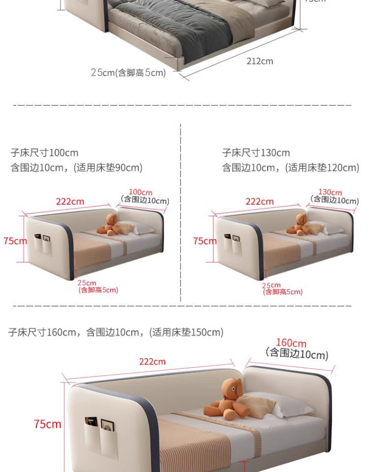 • 1.5m 하위 침대 + 1.8m 여성 침대