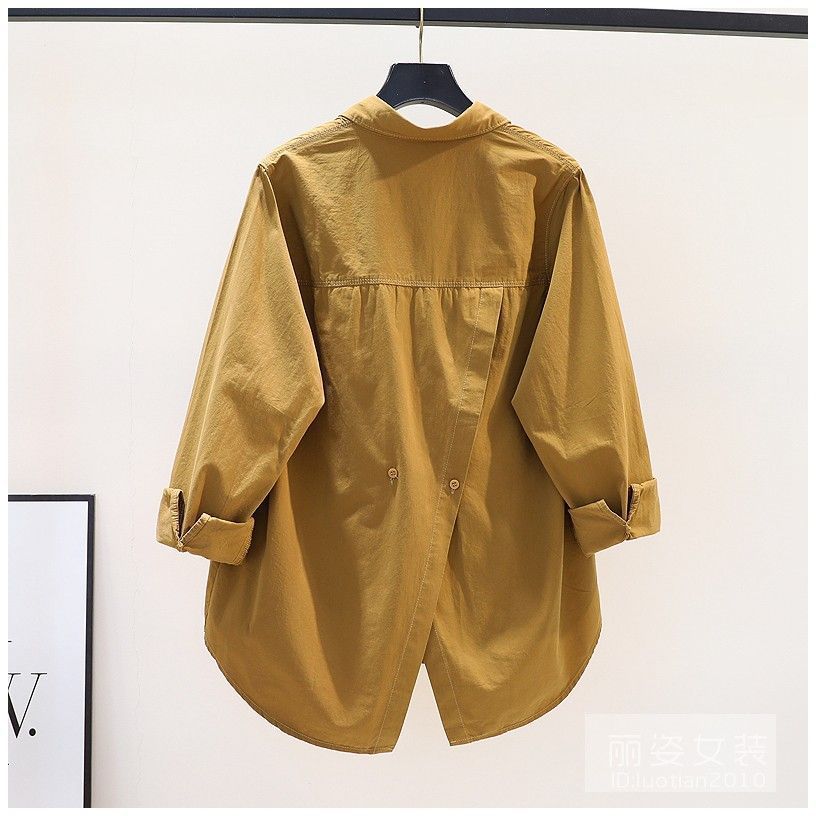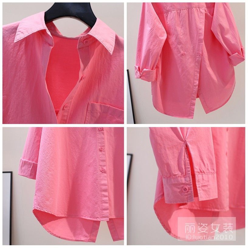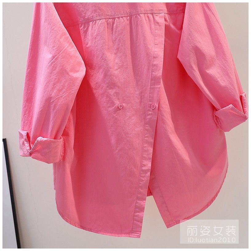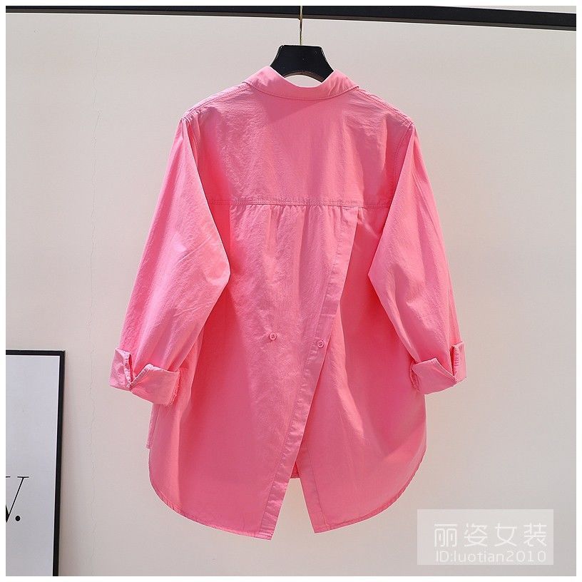 디자인 센스 백 스플릿 로즈 핑크 셔츠 여성용 느슨한 긴 소매 셔츠 봄과 가을 올 매치 쉬폰 셔츠 여성용 탑스토어 가기