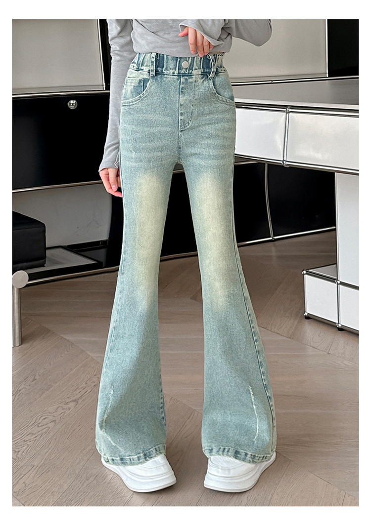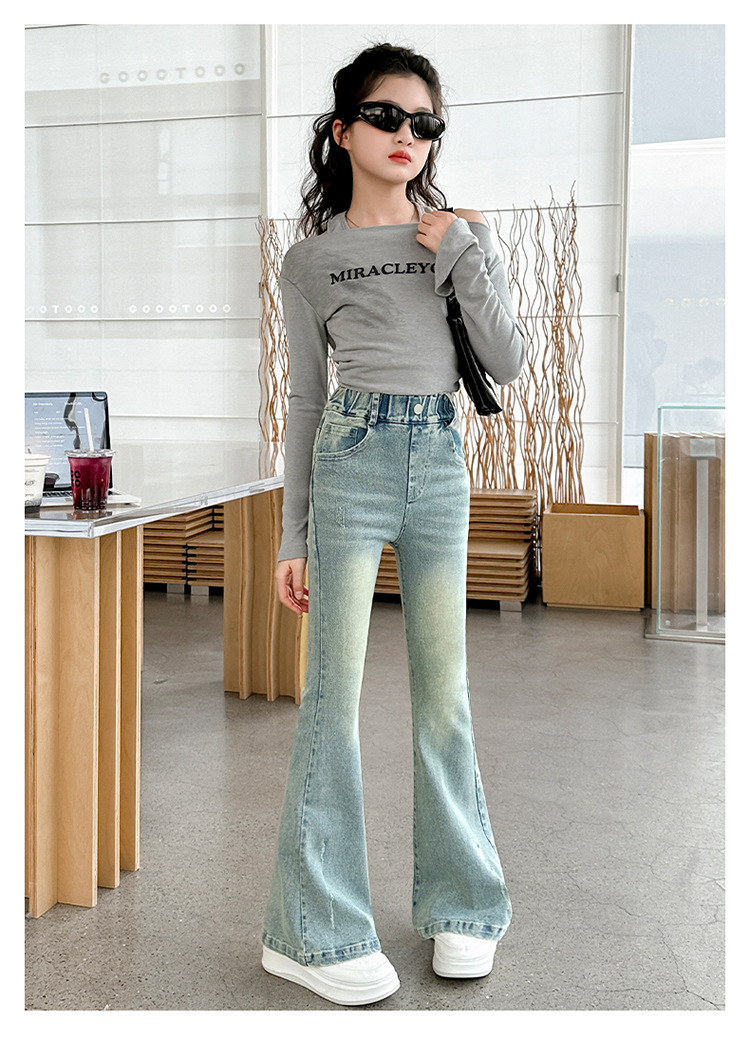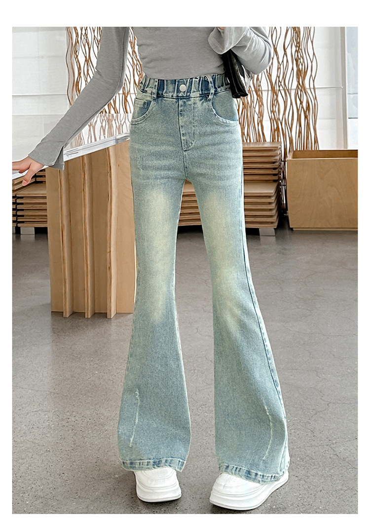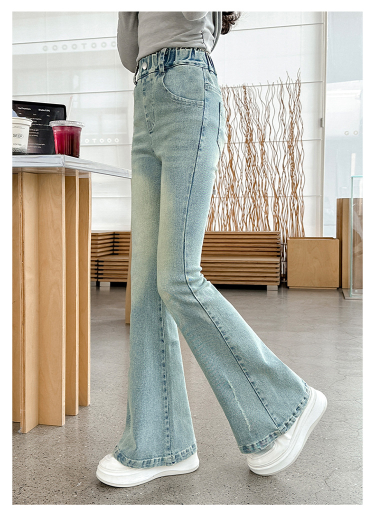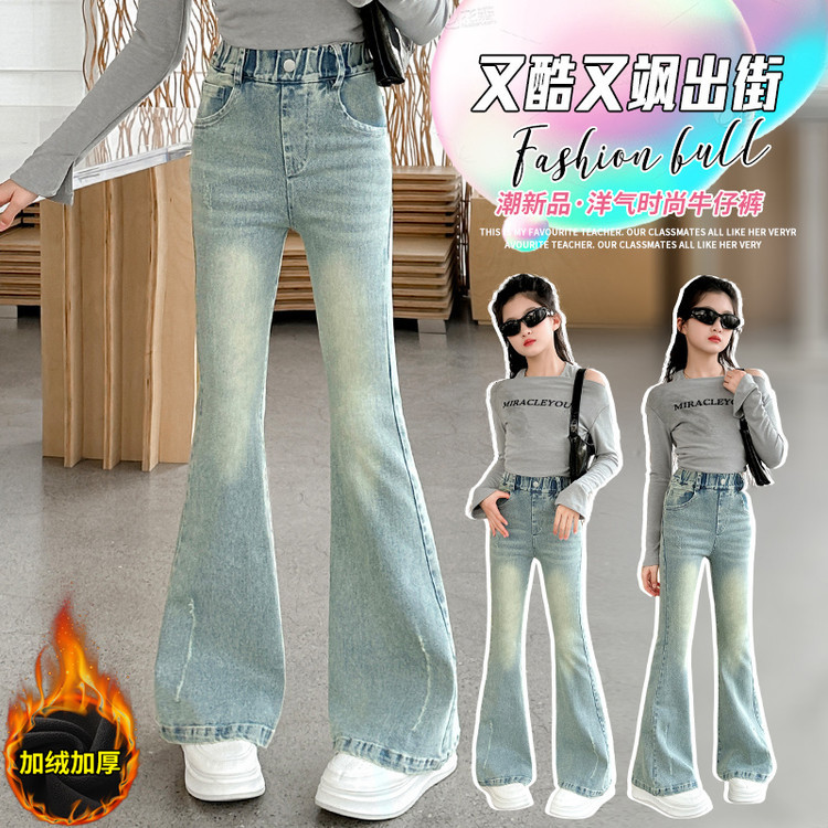 여아용 바지 가을 겨울 2025 신상 중대형 어린이용 패셔너블한 신축성 있는 슬림핏 플레어 레깅스 플러스 벨벳 아동용 청바지스토어 가기