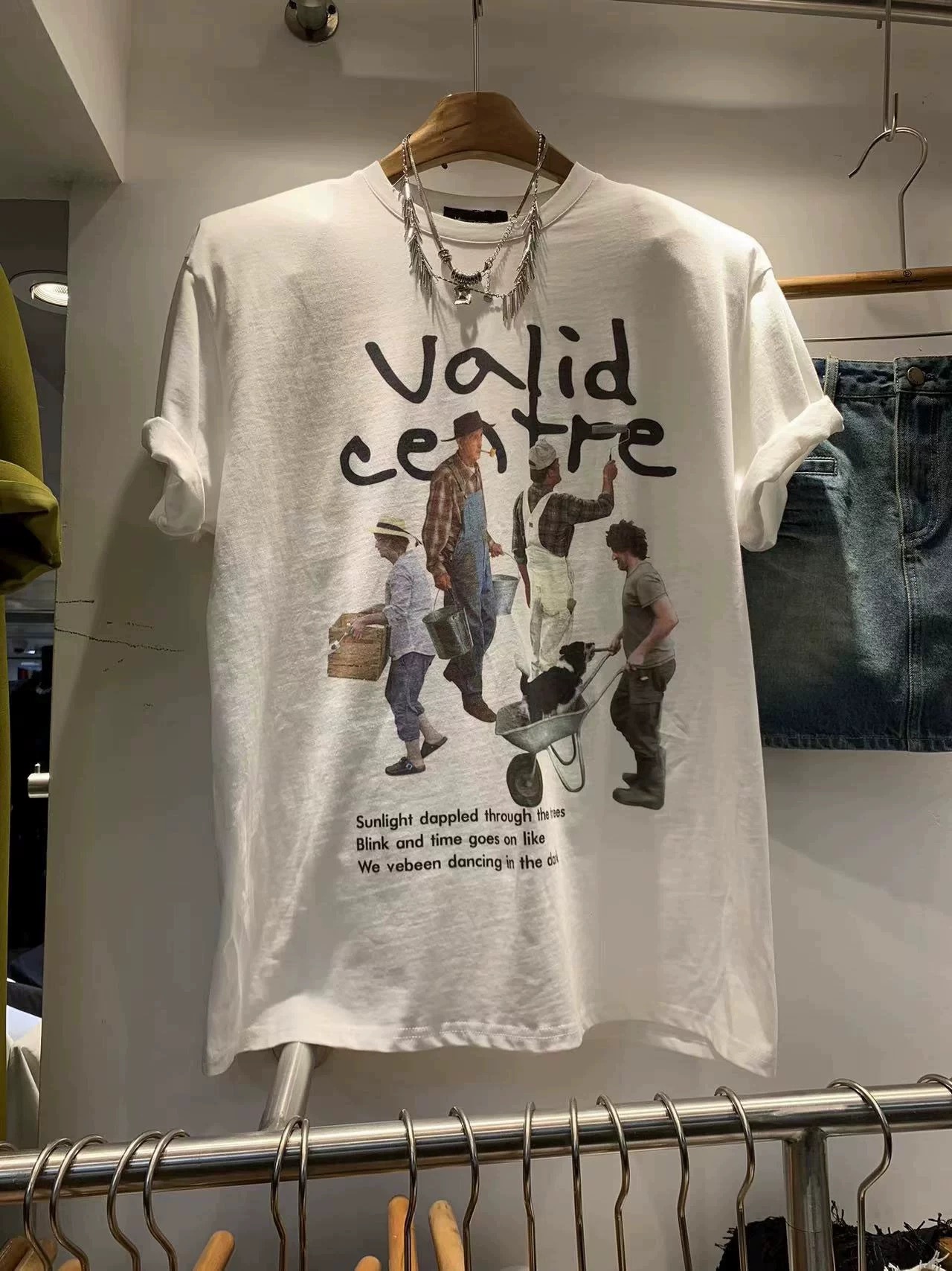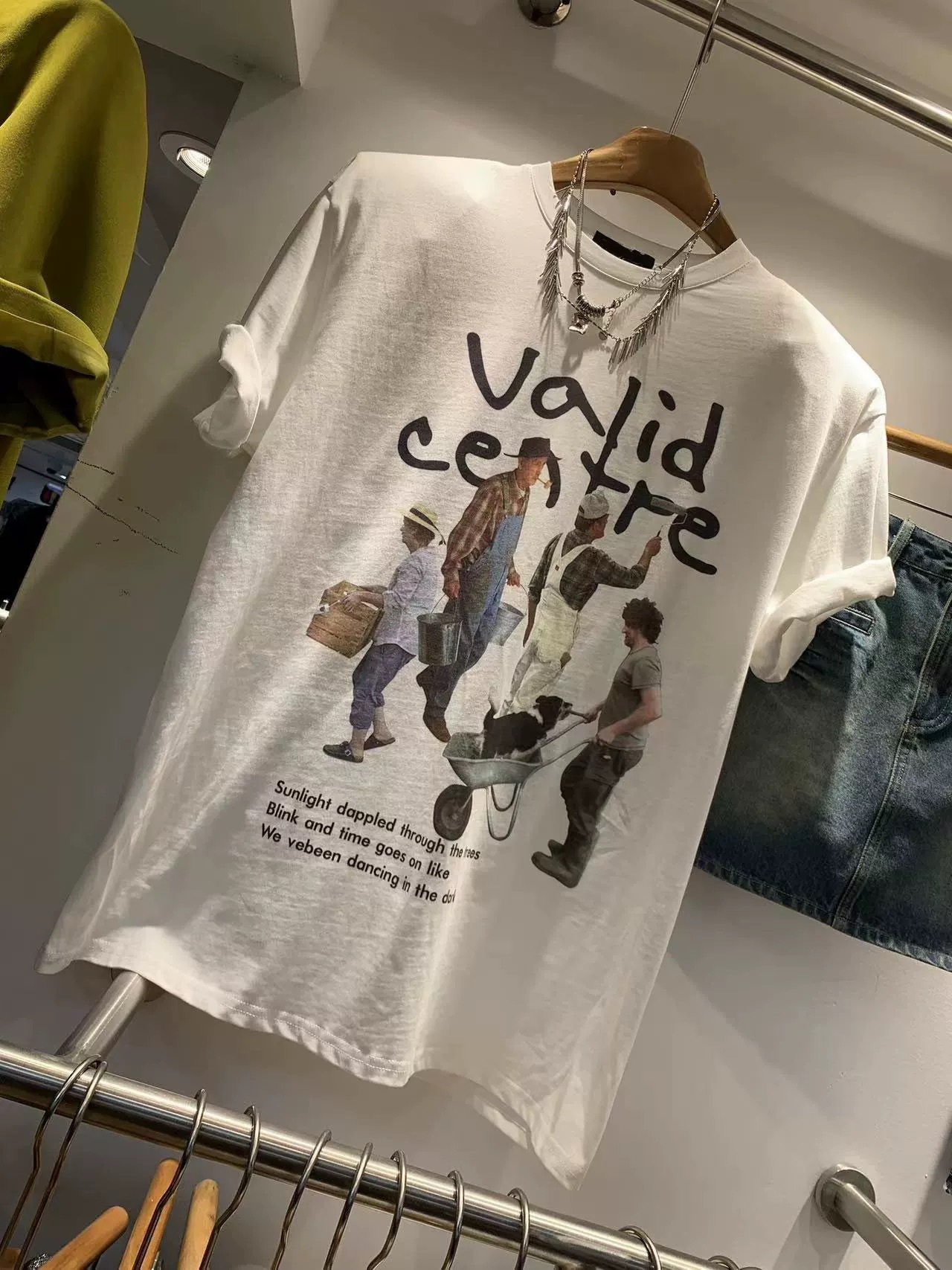 한국 동대문 통통녀 mm 여름 패션 느슨한 만화 편지 인쇄 짧은 소매 티셔츠 여성의 순면 탑스토어 가기