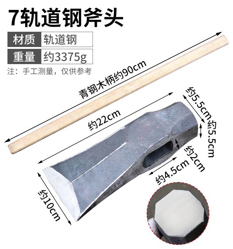 • 3.5kg 단조 고품질 담금질 망치 도끼 양면 갈비뼈 + 80CM 나무 손잡이