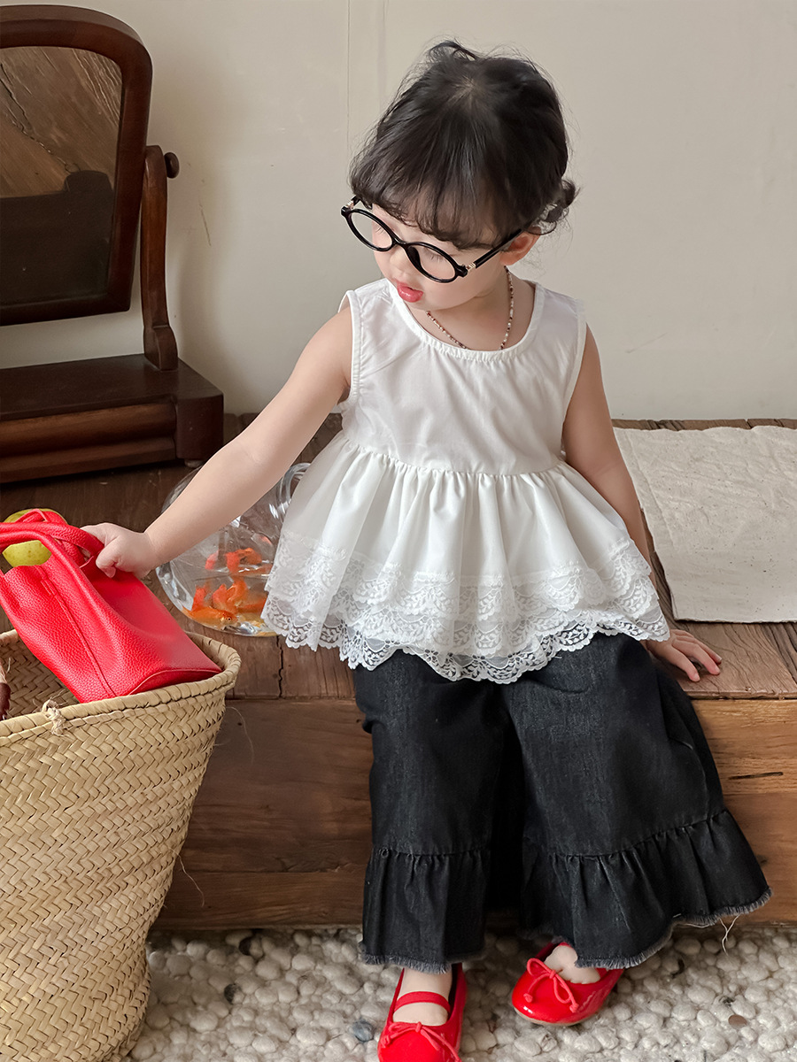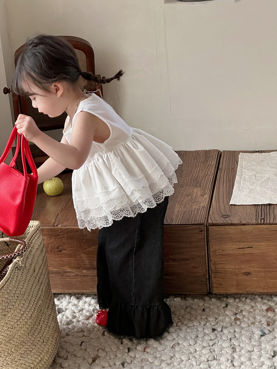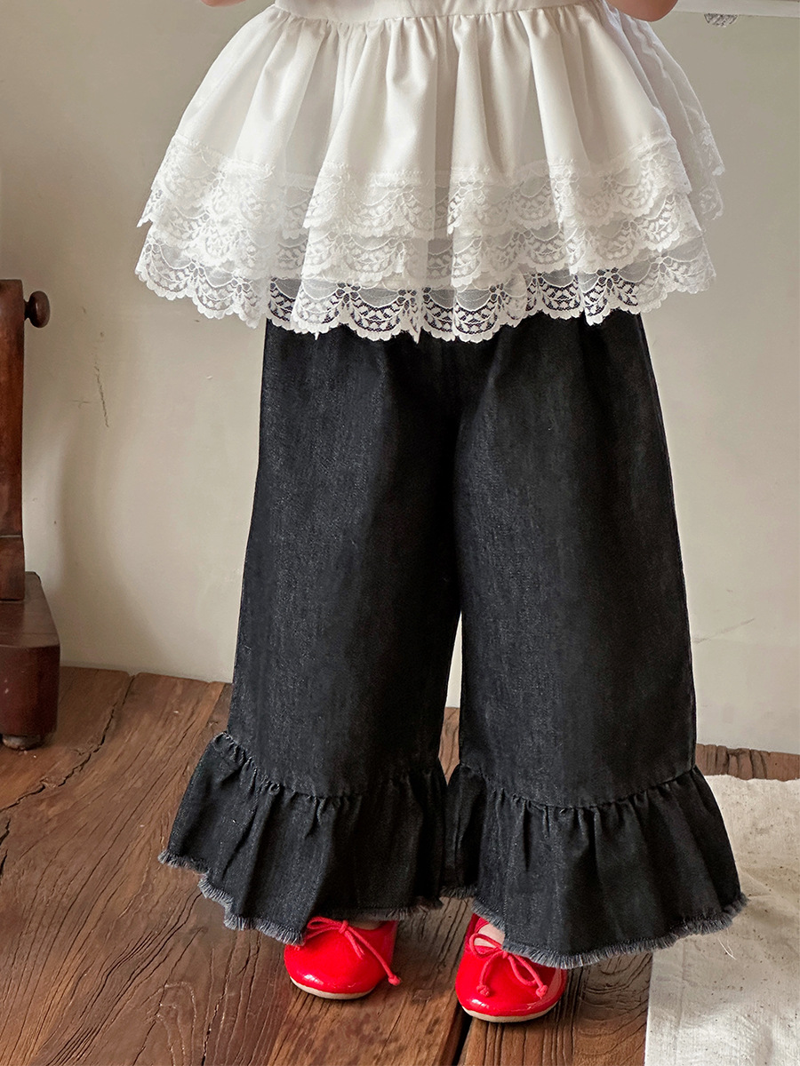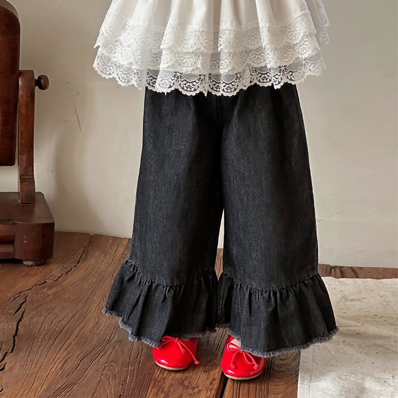 소녀 봄 청바지 2025 아동복 바지 아기 소녀 한국식 플래 바지 느슨한 넓은 다리 데님 바지