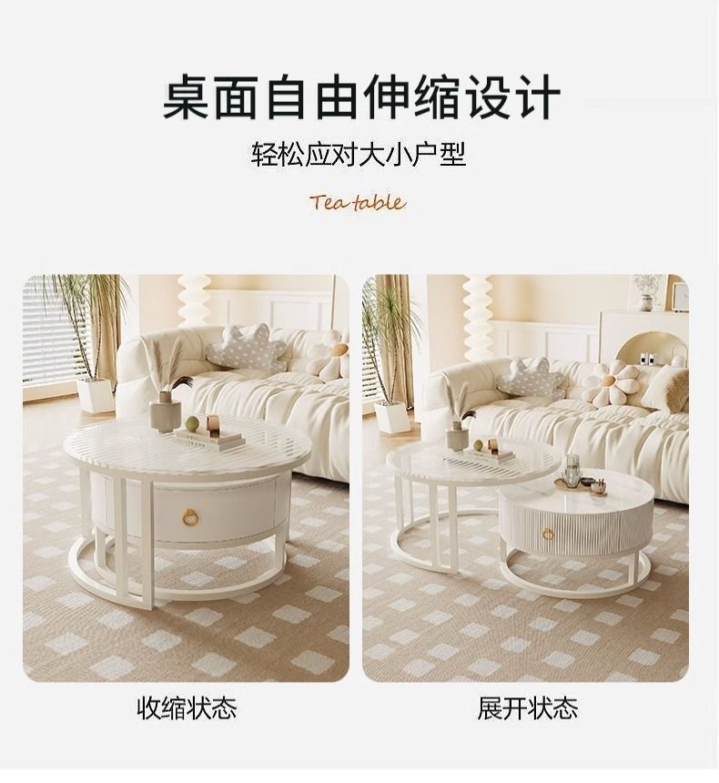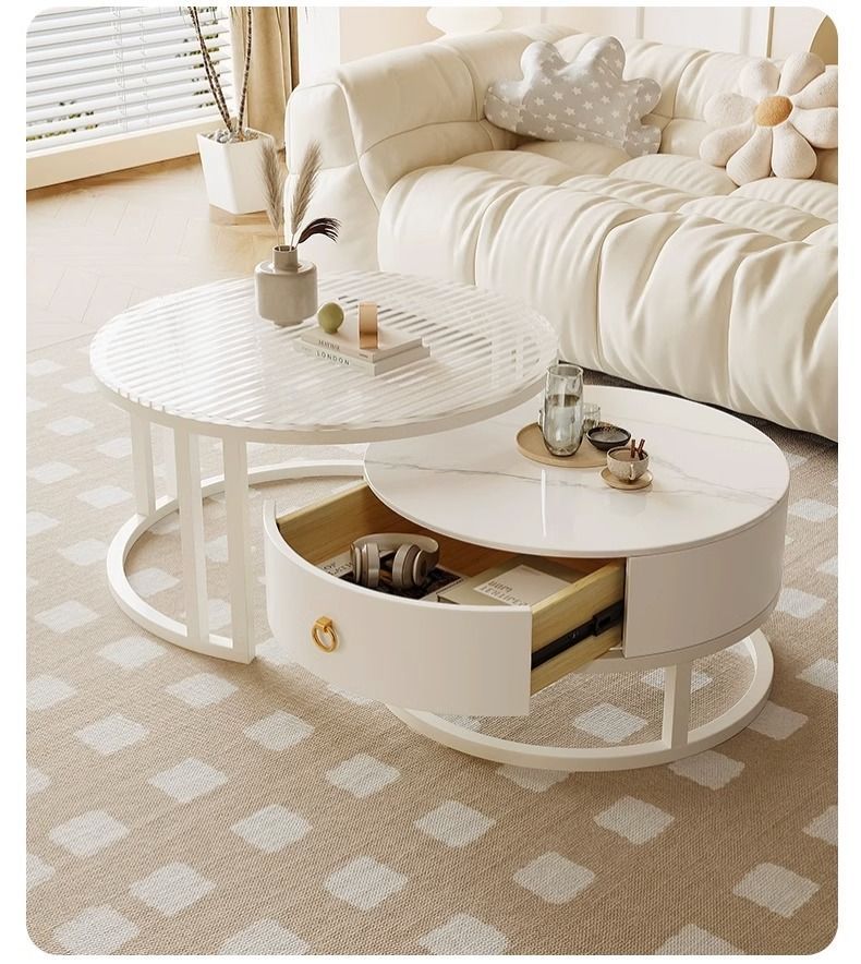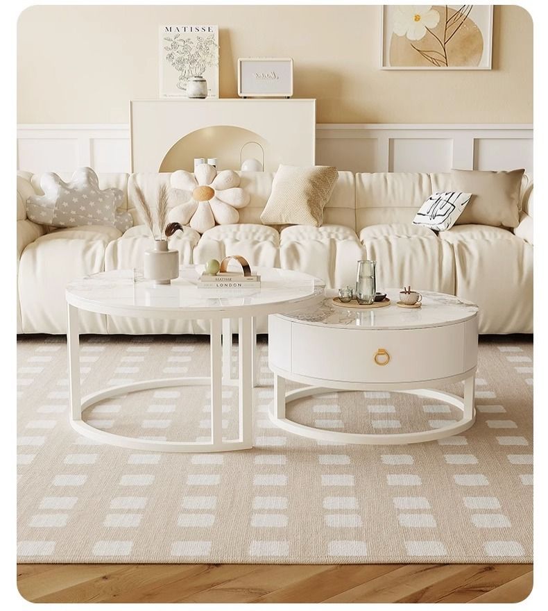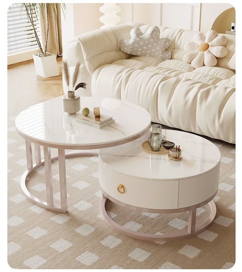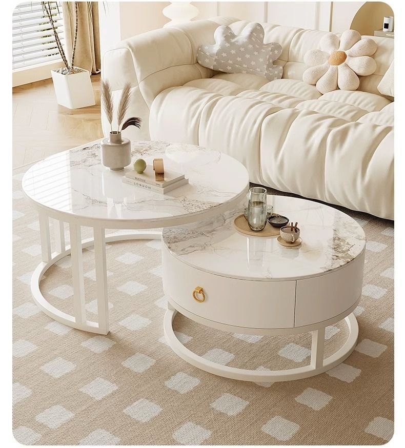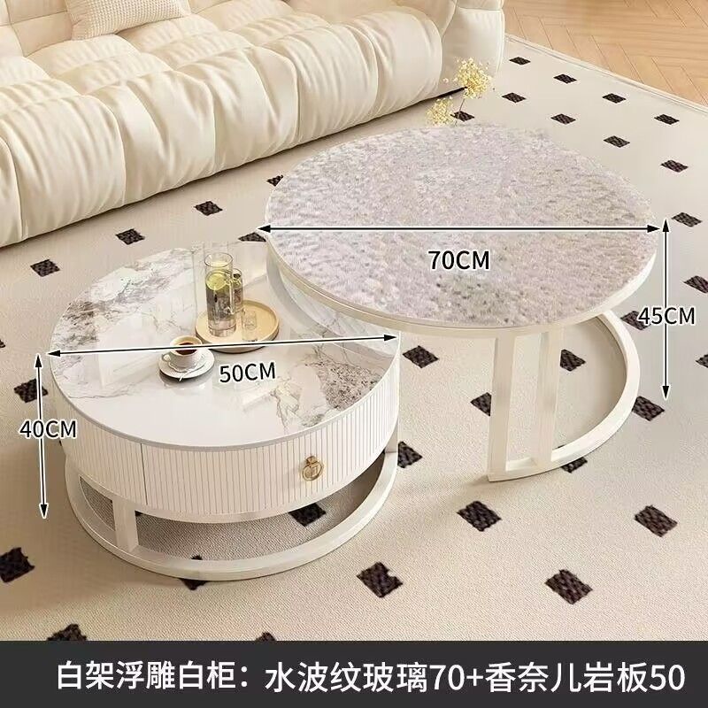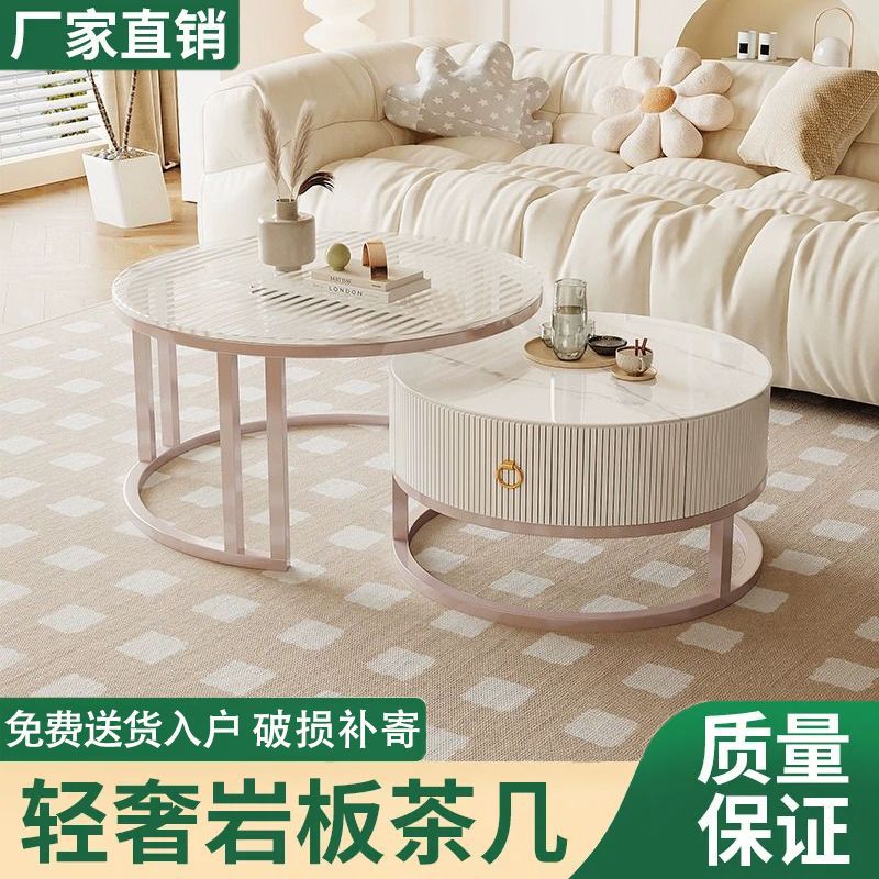 록 보드 커피 테이블 작은 아파트 라운드 침실 렌탈 룸 크림 매우 간단한 빛 럭셔리 거실 새로운 대리석 티 테이블스토어 가기