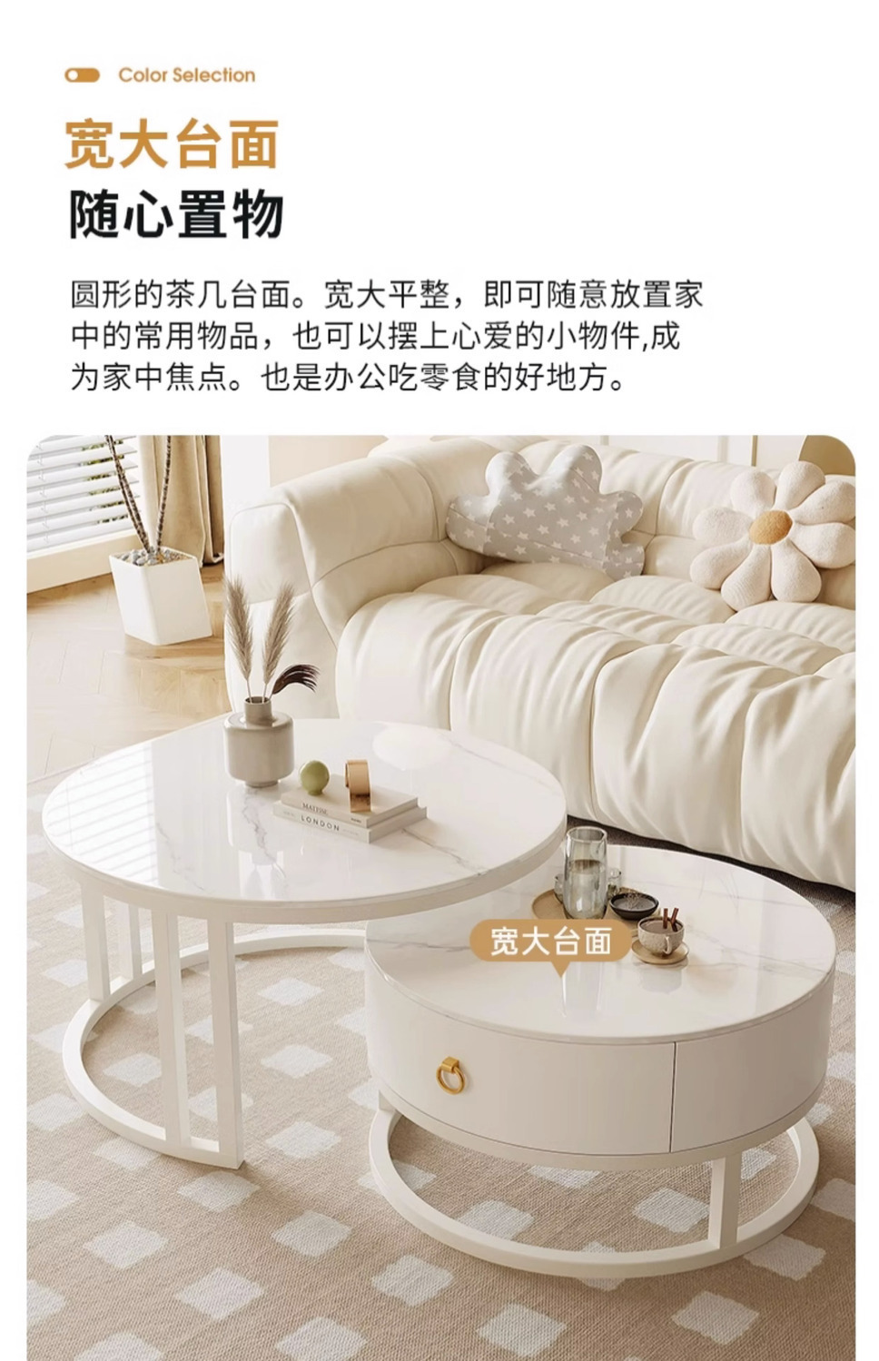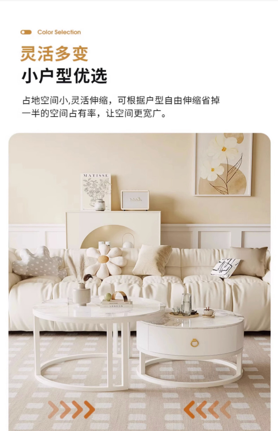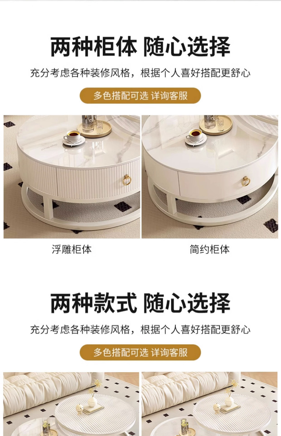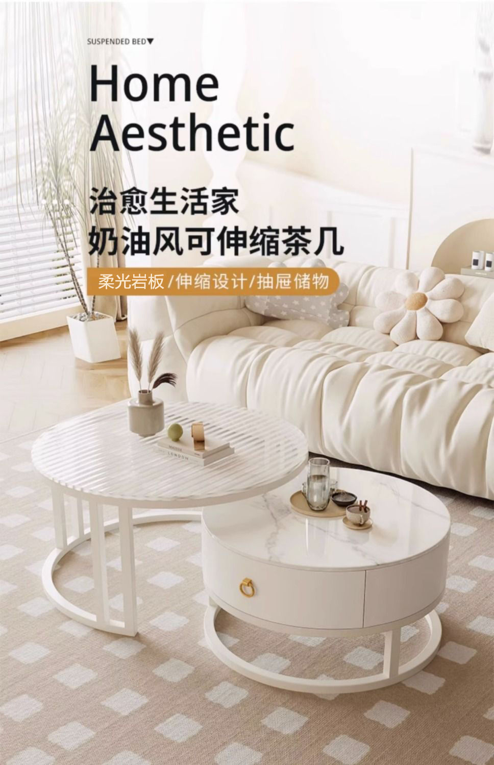 록 보드 커피 테이블 작은 아파트 라운드 침실 렌탈 룸 크림 매우 간단한 빛 럭셔리 거실 새로운 대리석 티 테이블스토어 가기