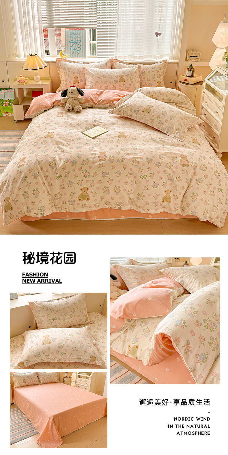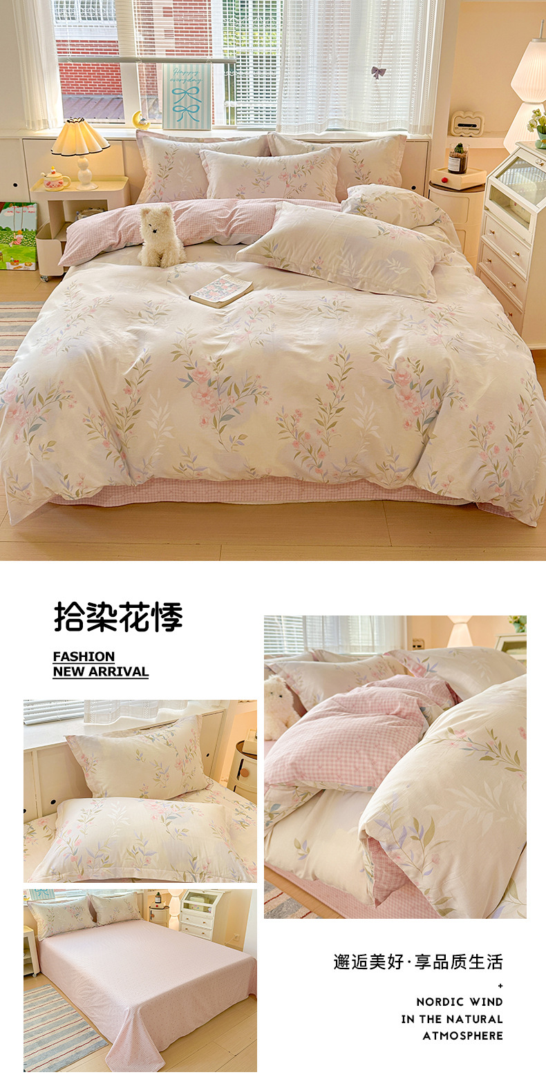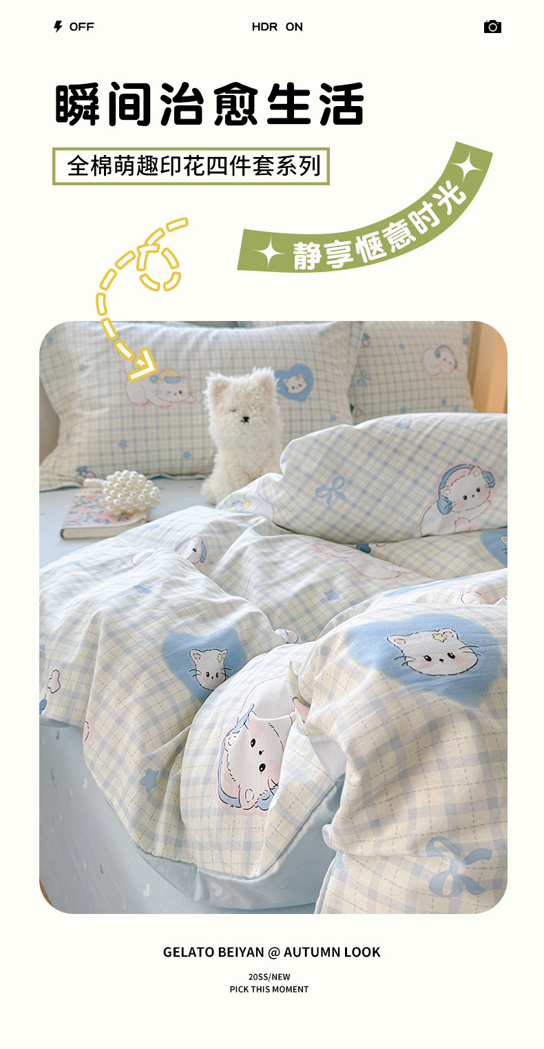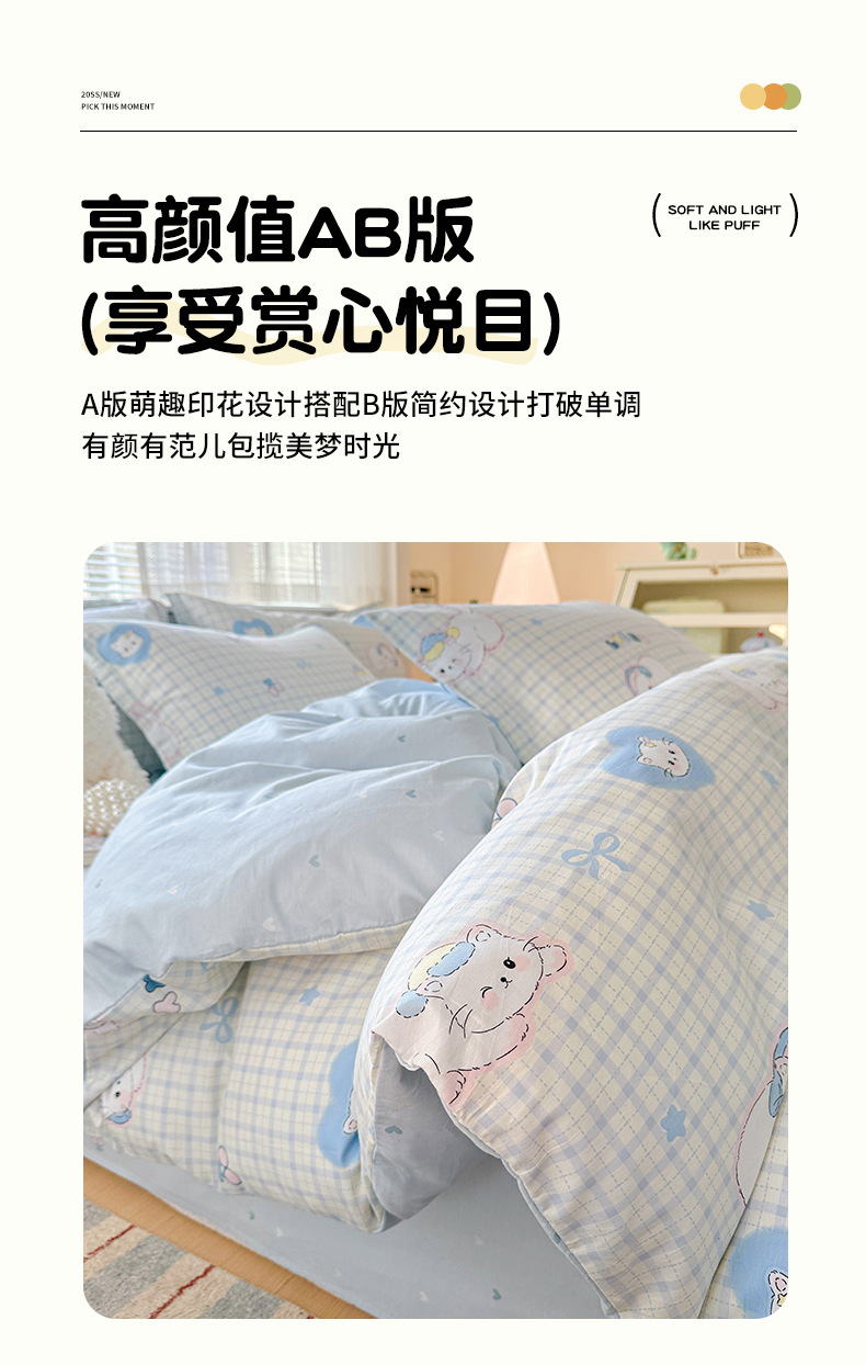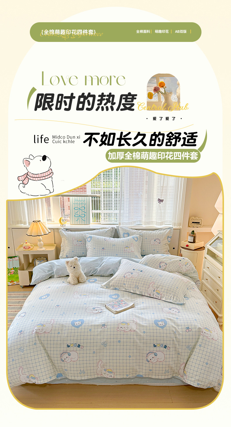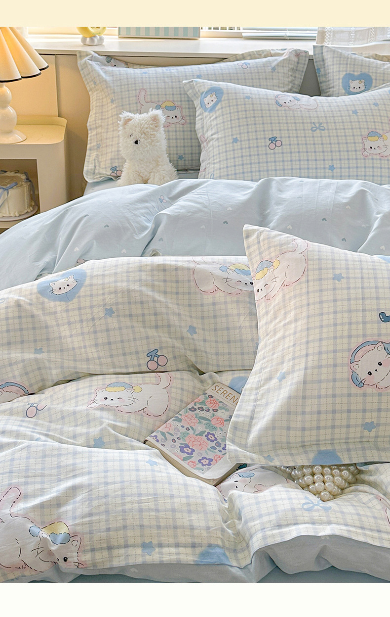 클래스 A 모성 및 유아용 니트 더블 레이어 원사 4 피스 세트 작은 신선한 물로 씻은 면화 플로랄 침대 시트 퀼트 커버 기숙사 3 피스 세트스토어 가기