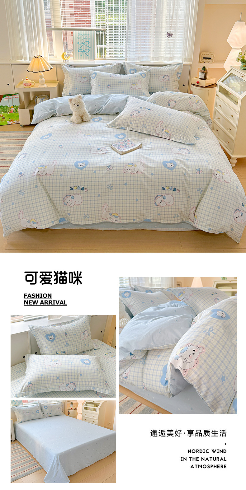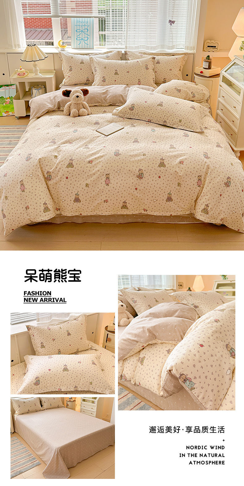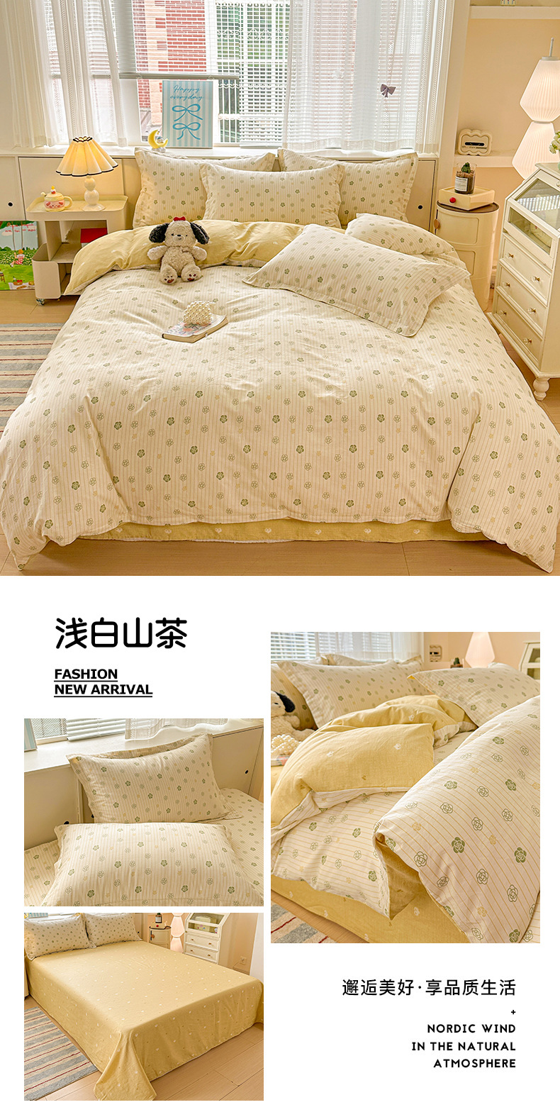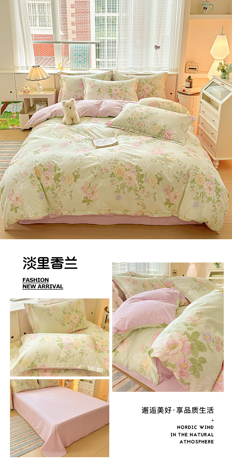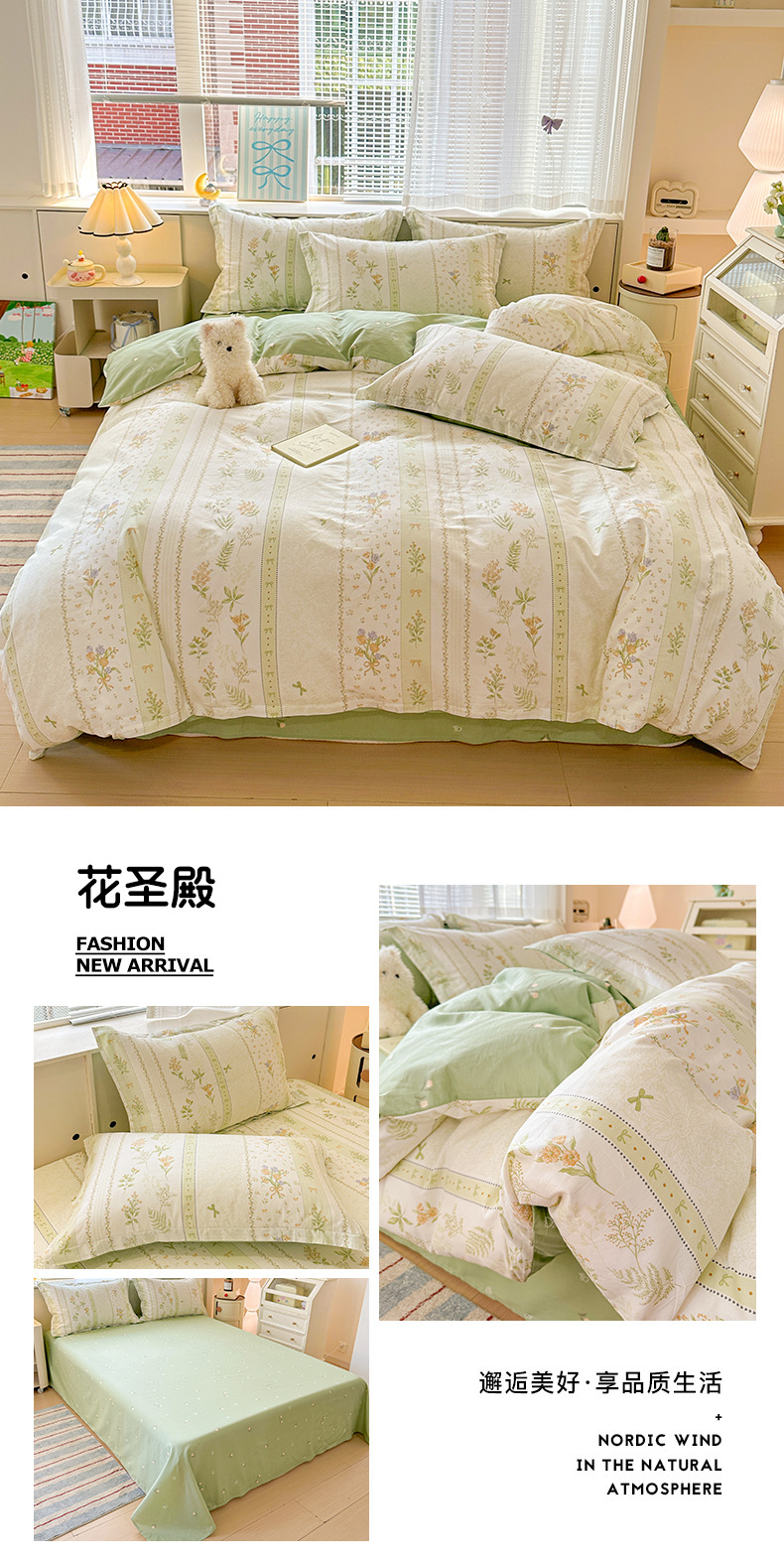 클래스 A 모성 및 유아용 니트 더블 레이어 원사 4 피스 세트 작은 신선한 물로 씻은 면화 플로랄 침대 시트 퀼트 커버 기숙사 3 피스 세트스토어 가기