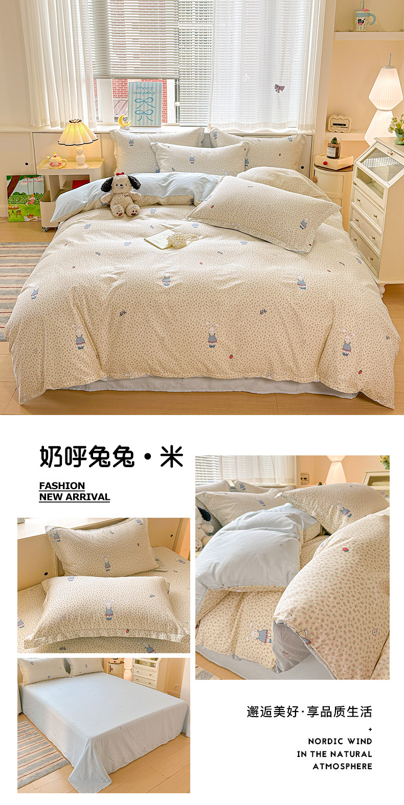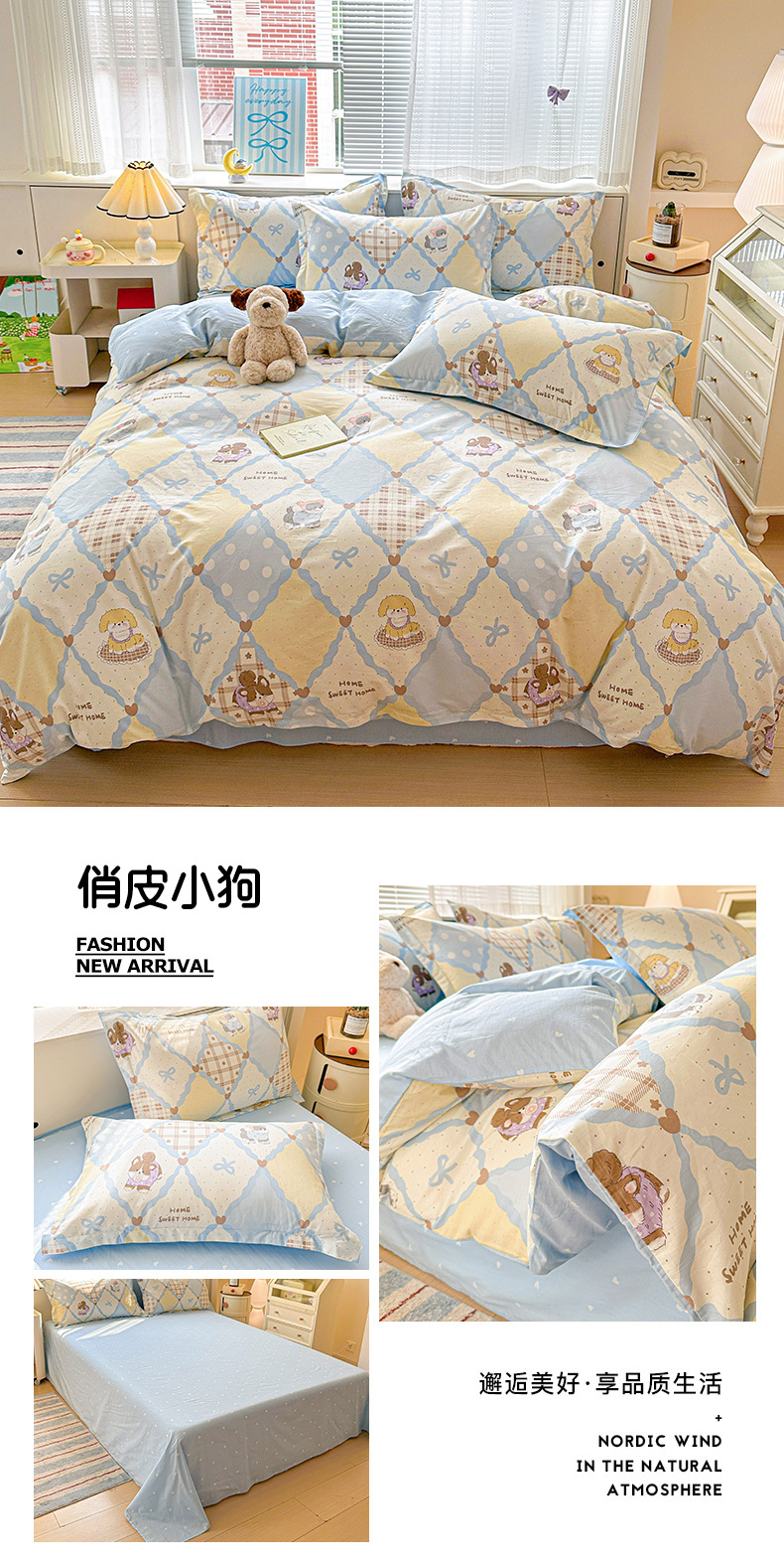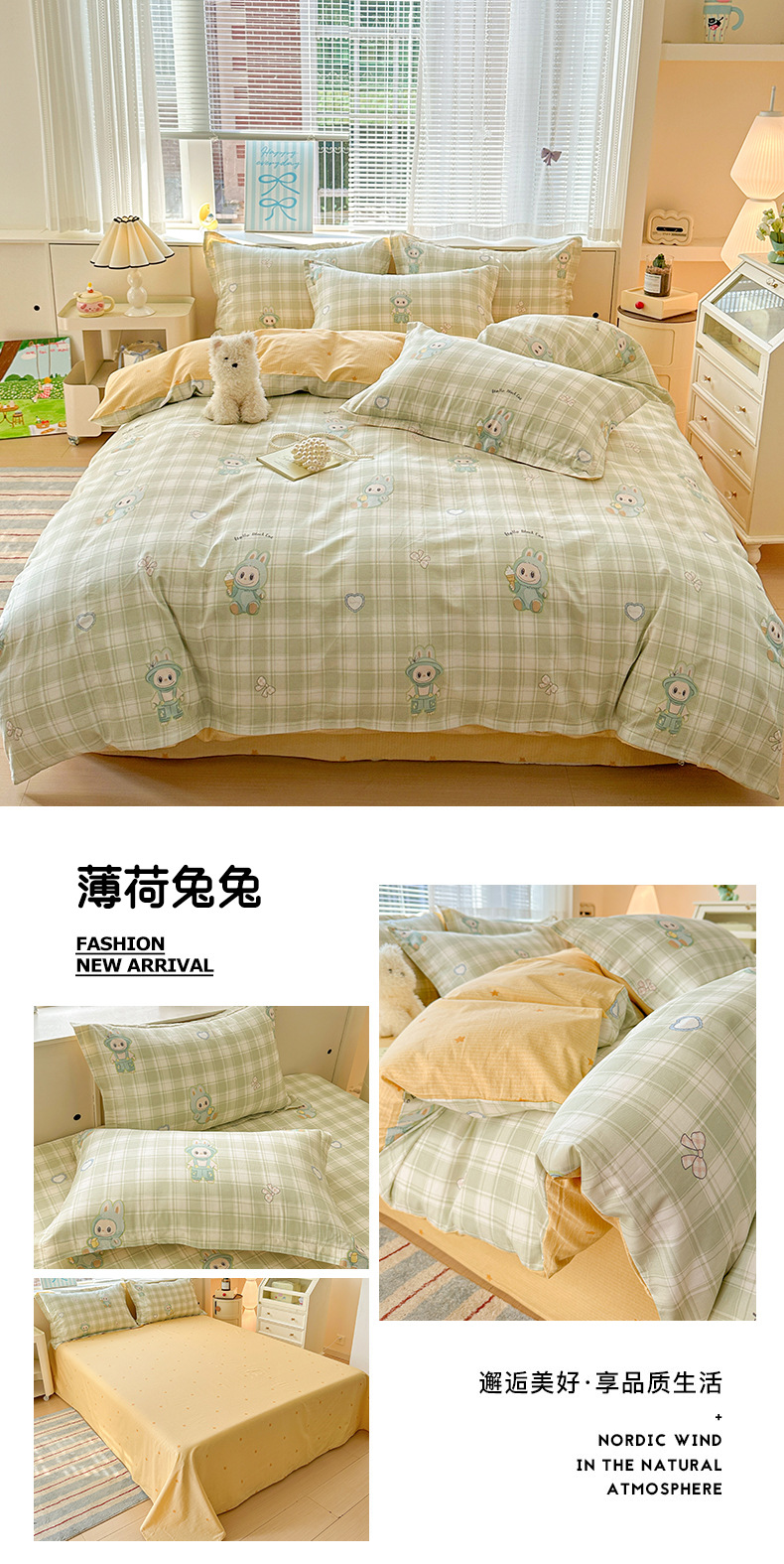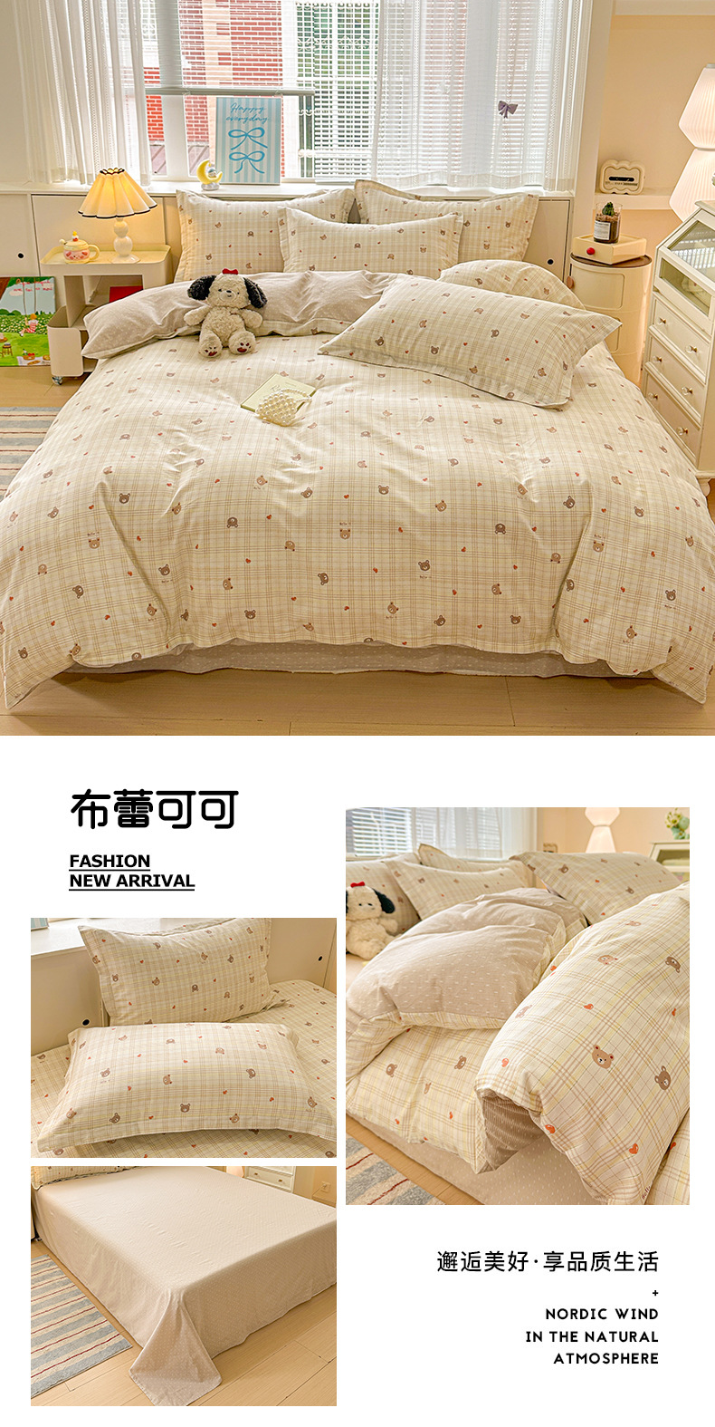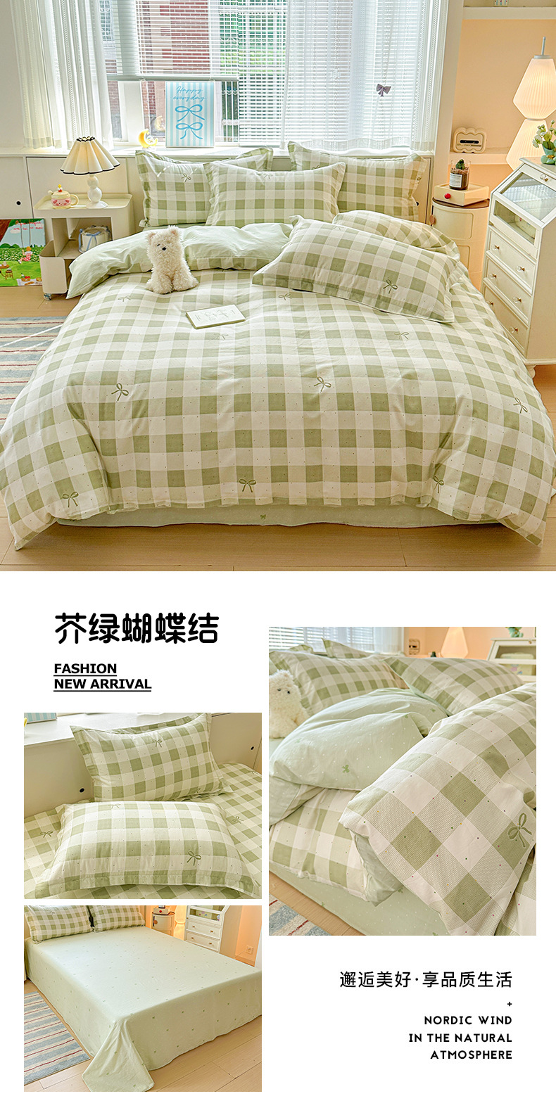 클래스 A 모성 및 유아용 니트 더블 레이어 원사 4 피스 세트 작은 신선한 물로 씻은 면화 플로랄 침대 시트 퀼트 커버 기숙사 3 피스 세트스토어 가기