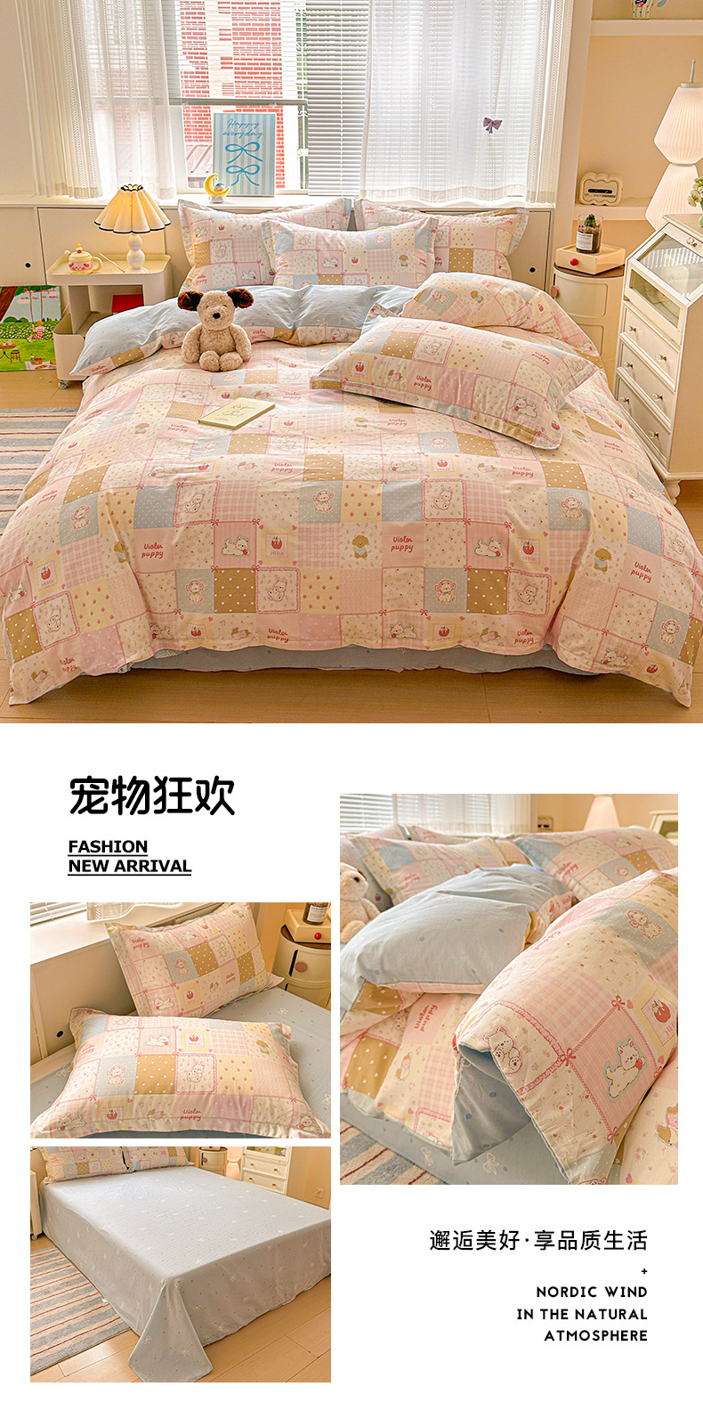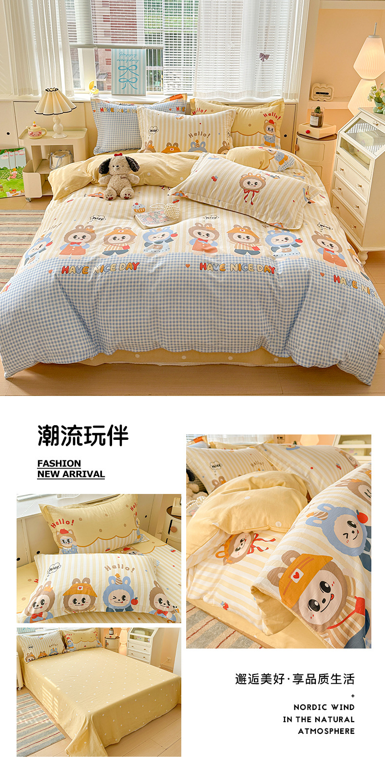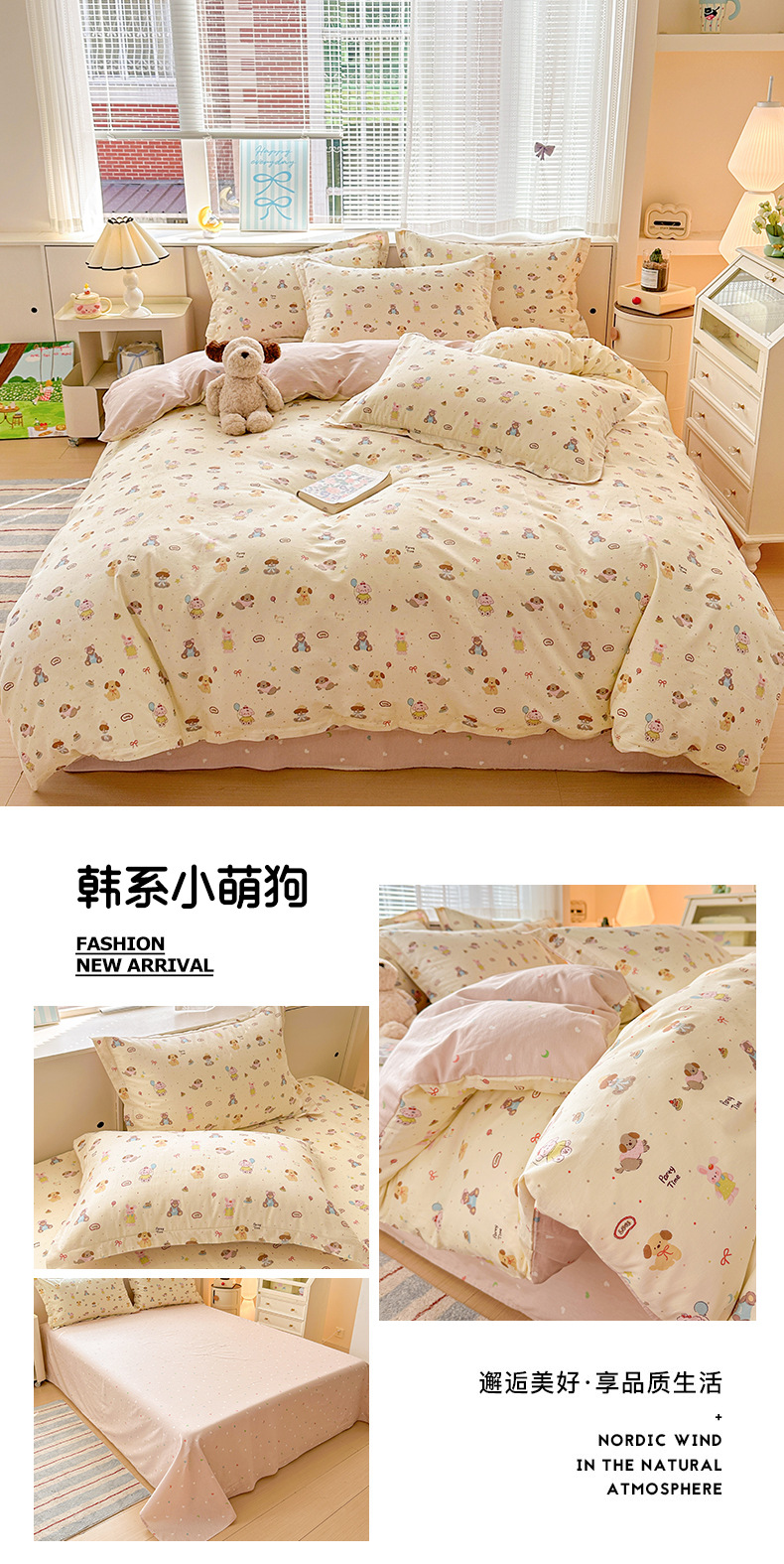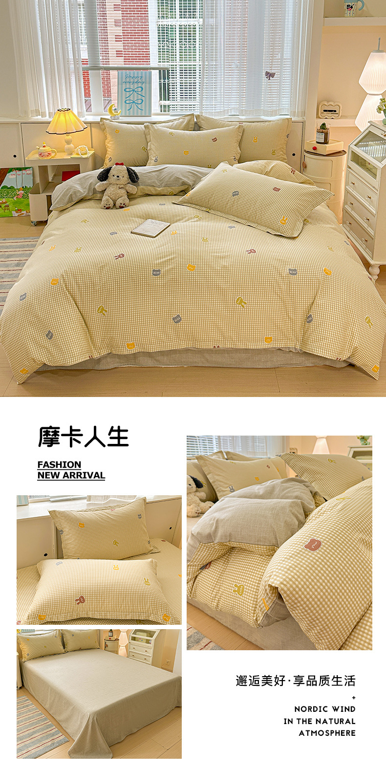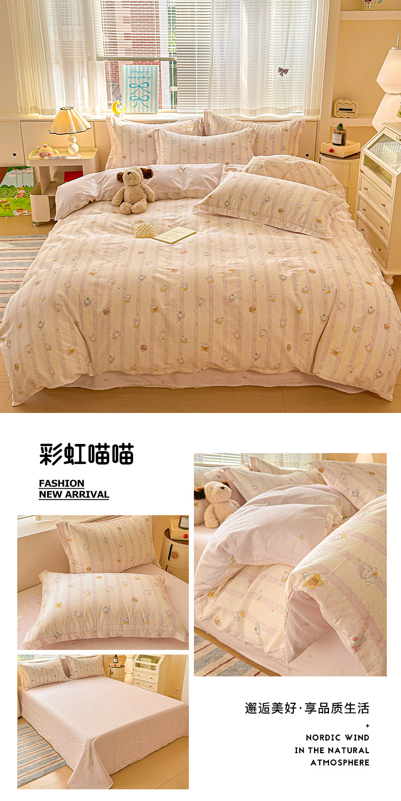 클래스 A 모성 및 유아용 니트 더블 레이어 원사 4 피스 세트 작은 신선한 물로 씻은 면화 플로랄 침대 시트 퀼트 커버 기숙사 3 피스 세트스토어 가기