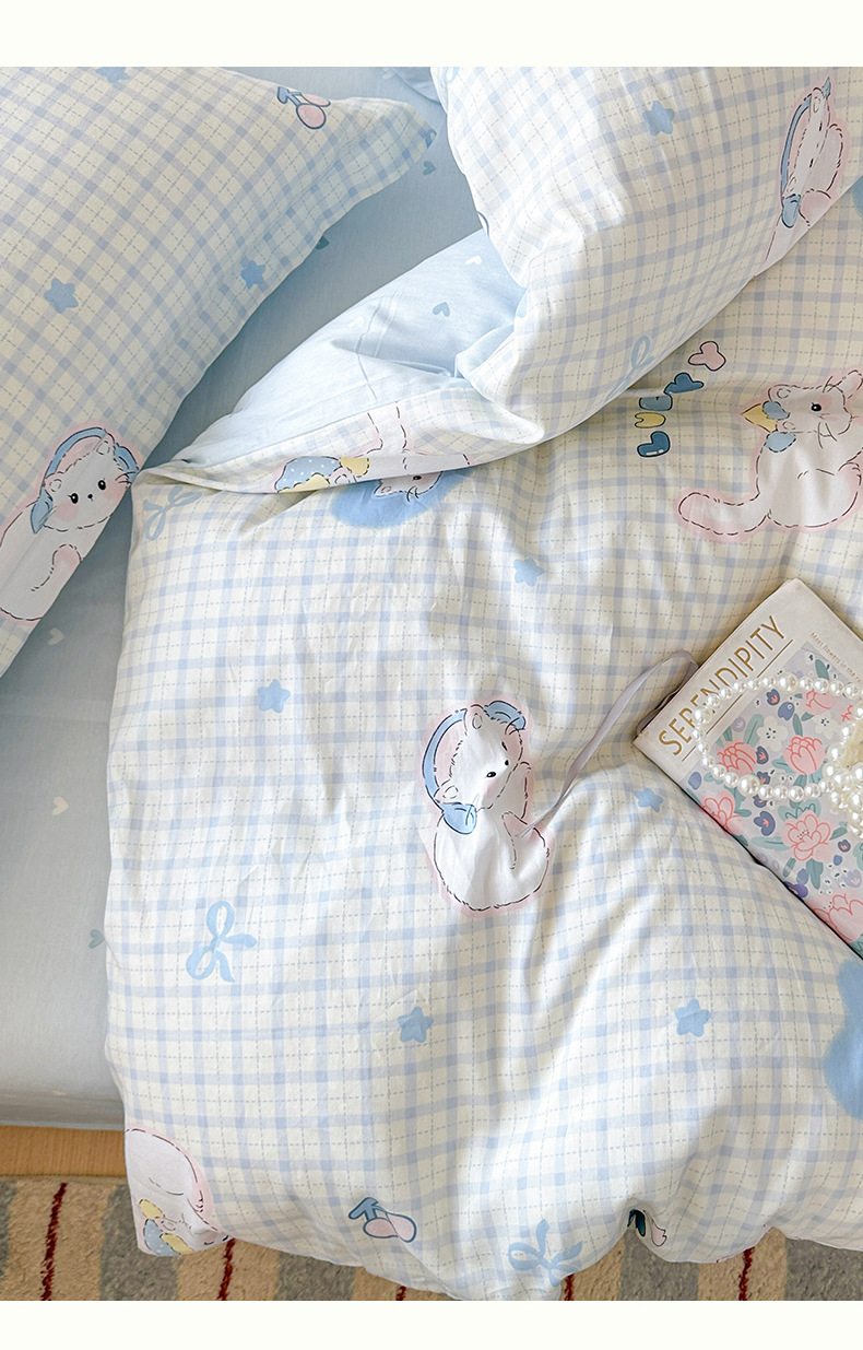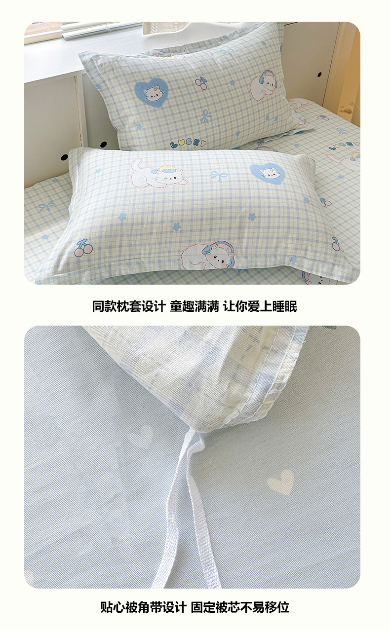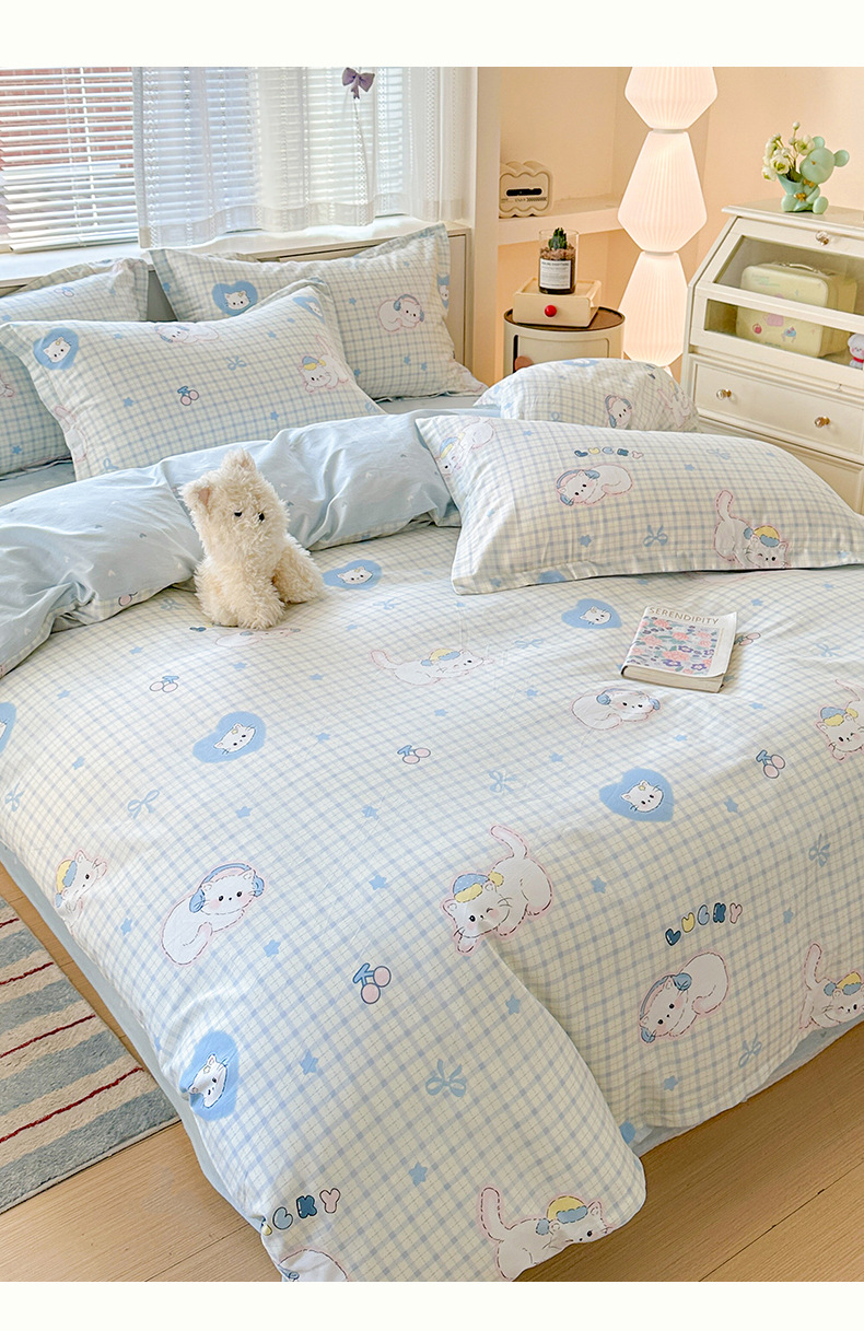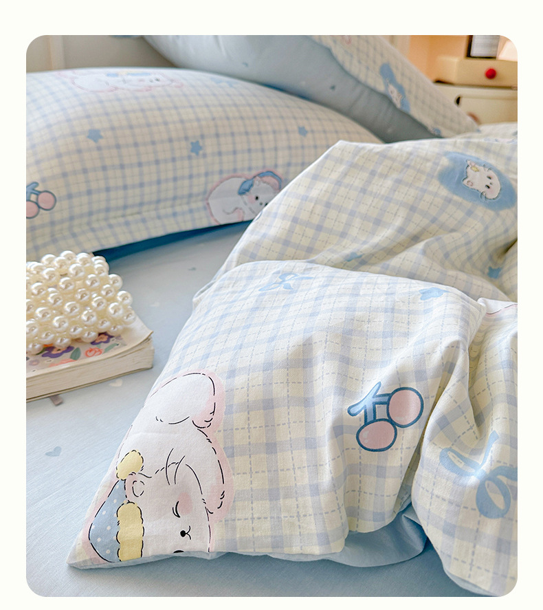 클래스 A 모성 및 유아용 니트 더블 레이어 원사 4 피스 세트 작은 신선한 물로 씻은 면화 플로랄 침대 시트 퀼트 커버 기숙사 3 피스 세트