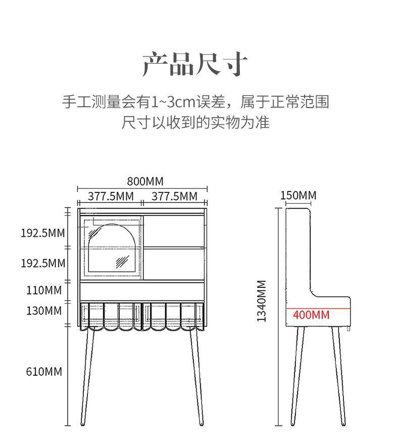 • 크림 화이트 화장대 싱글 테이블 + 화장대