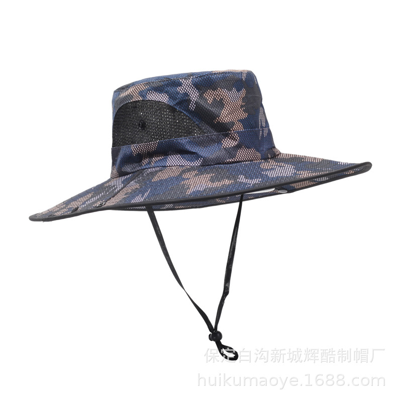 큰 테두리 태양 모자 다크 그리드 위장 태양 모자 스냅 버튼 큰 테두리 카우보이 모자 야외 하이킹 모자 낚시 모자 그물 모자
