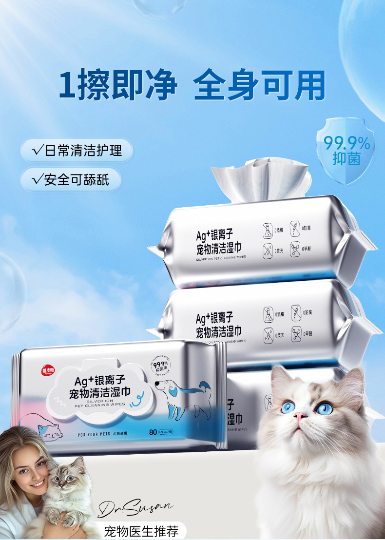 개 AG 실버 이온 박테리아 알로에 물티슈 고양이 청소 눈 먼지 닦아 애완 동물 청소 특수 화장지