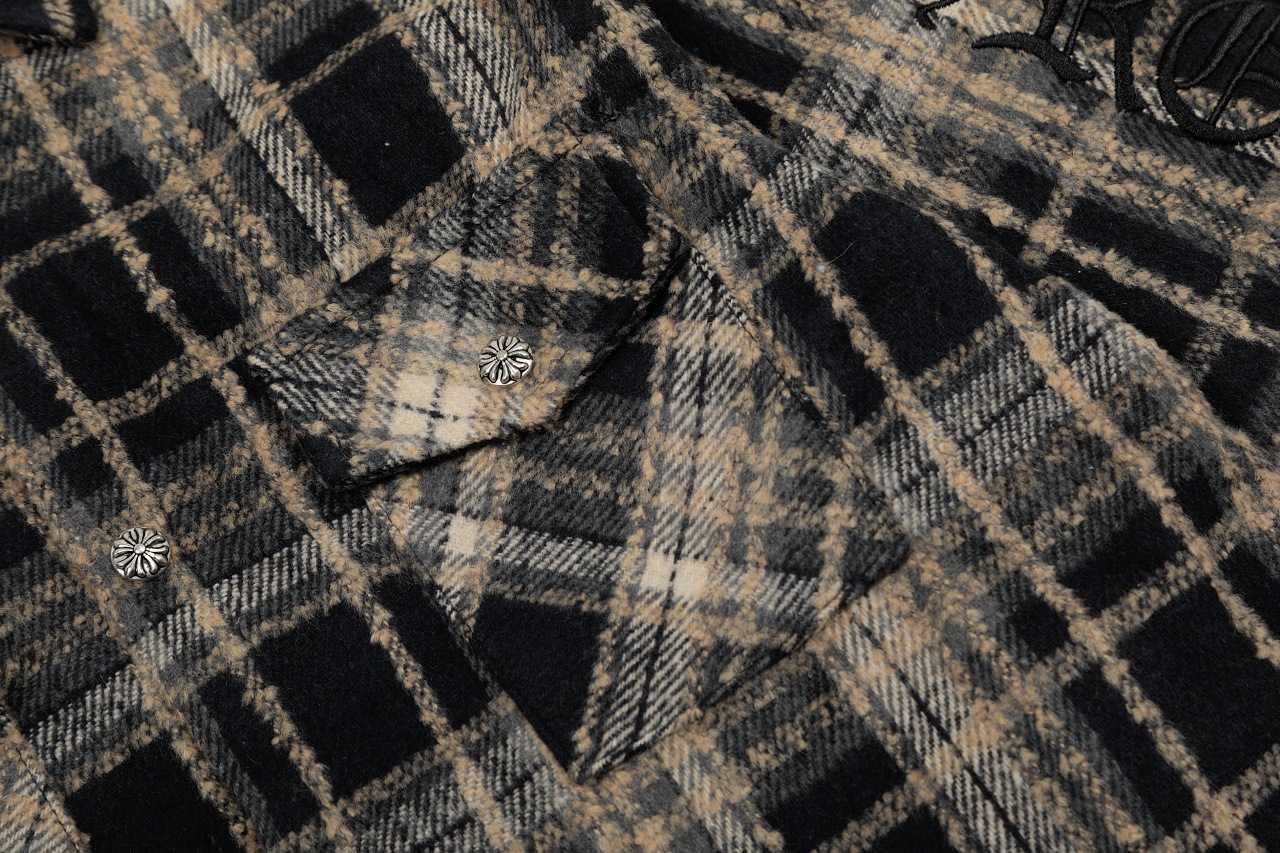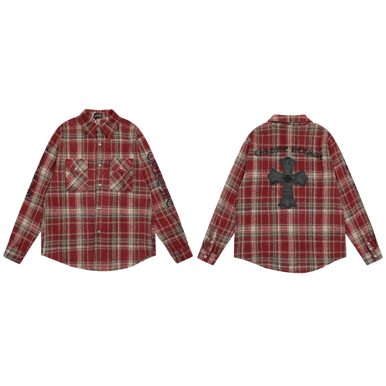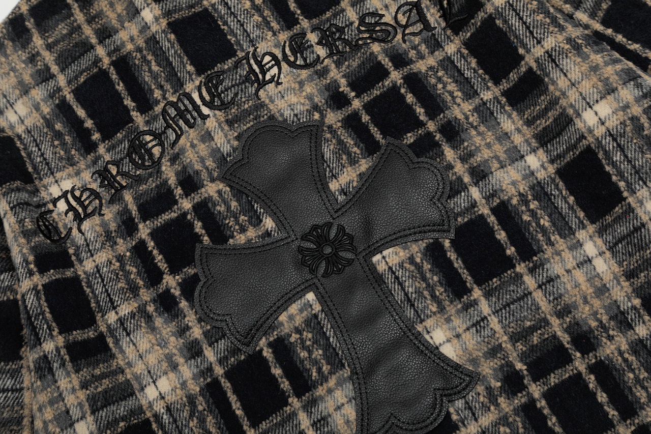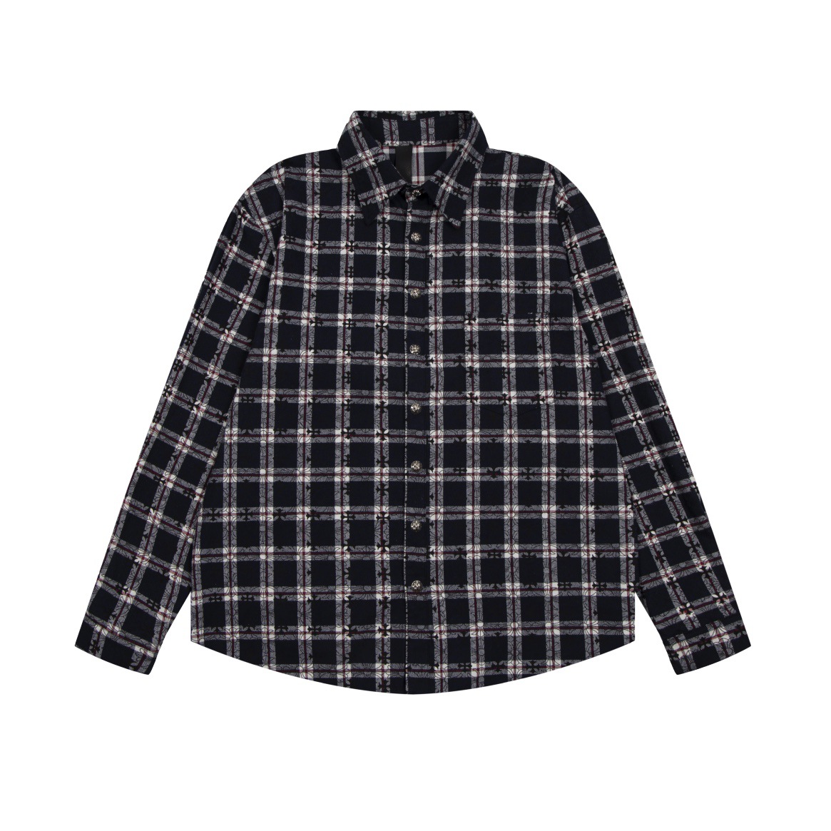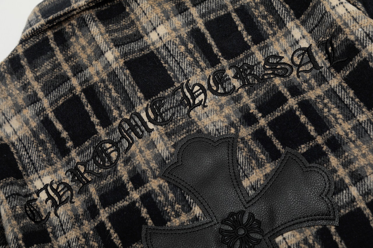 2025 새로운 CH 크로우 수정 판 중공업 가죽 자수 가슴 포켓 모직 격자 무늬 셔츠 남녀스토어 가기