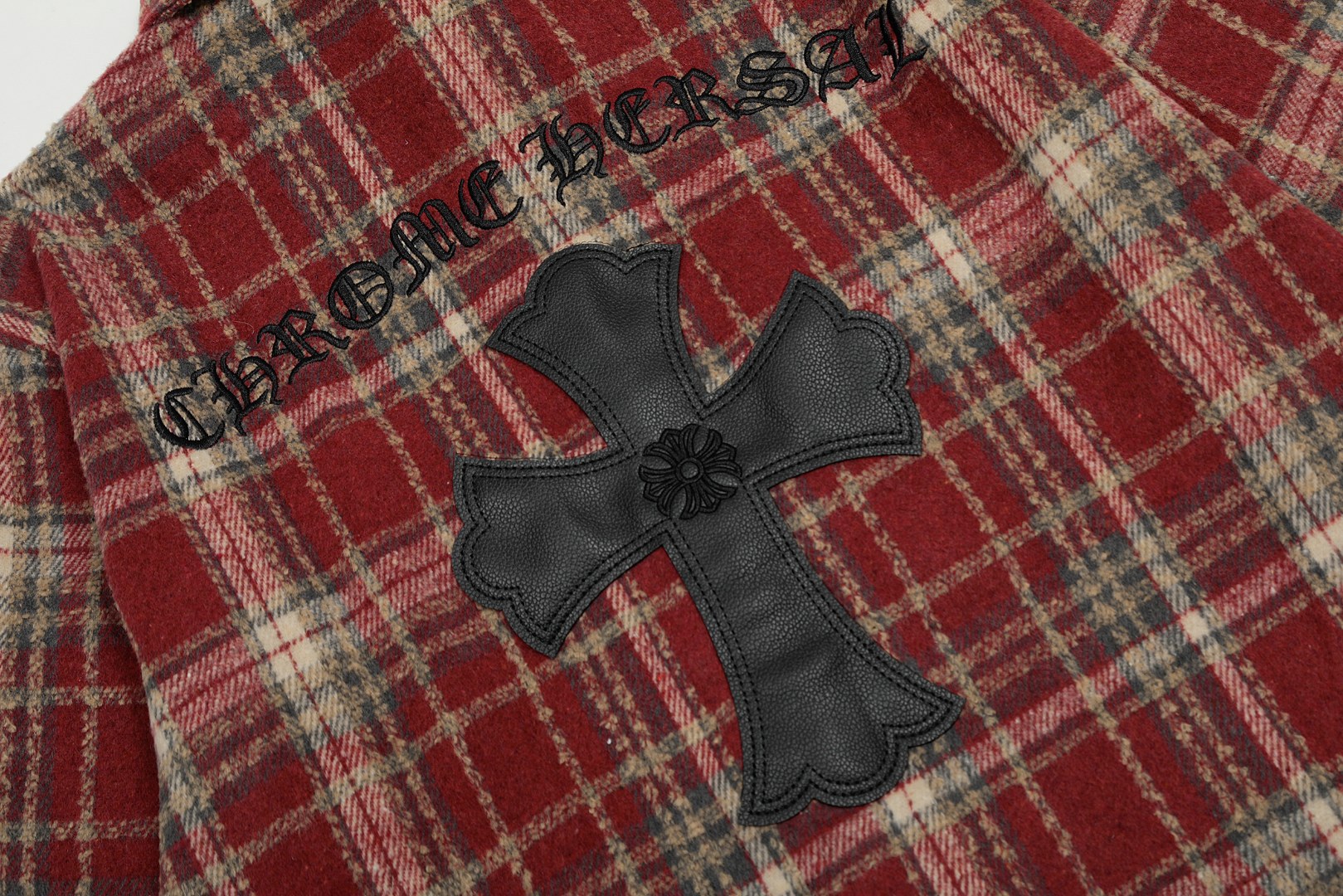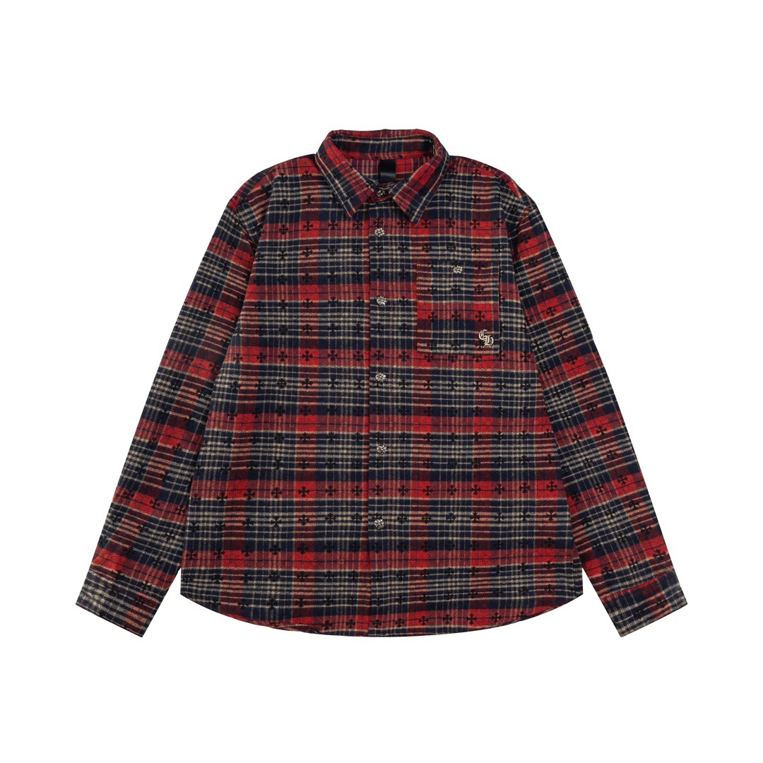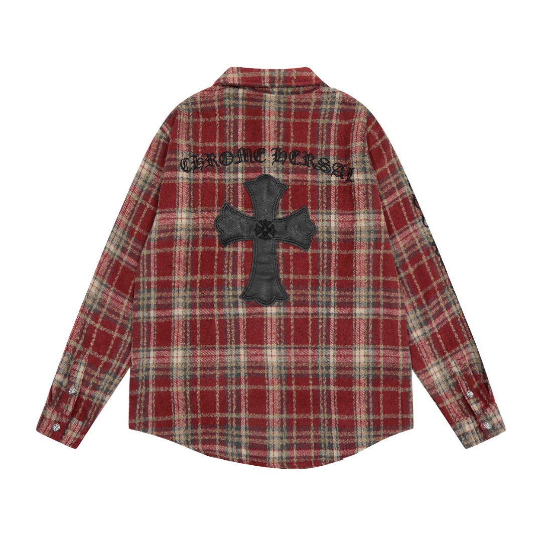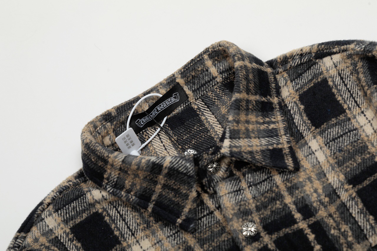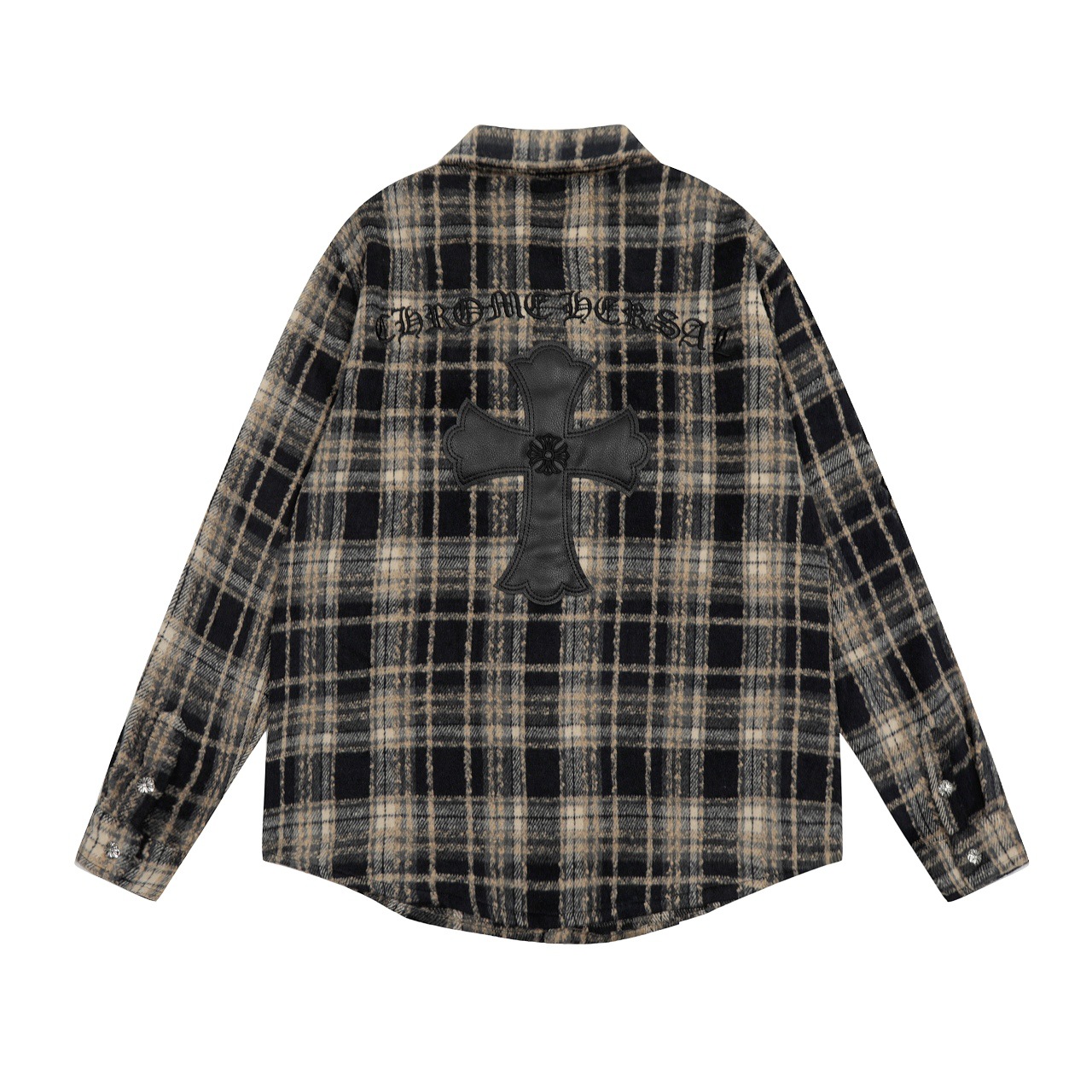 2025 새로운 CH 크로우 수정 판 중공업 가죽 자수 가슴 포켓 모직 격자 무늬 셔츠 남녀스토어 가기
