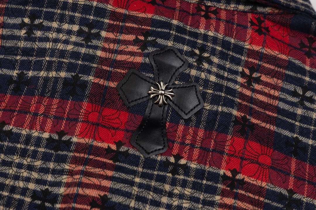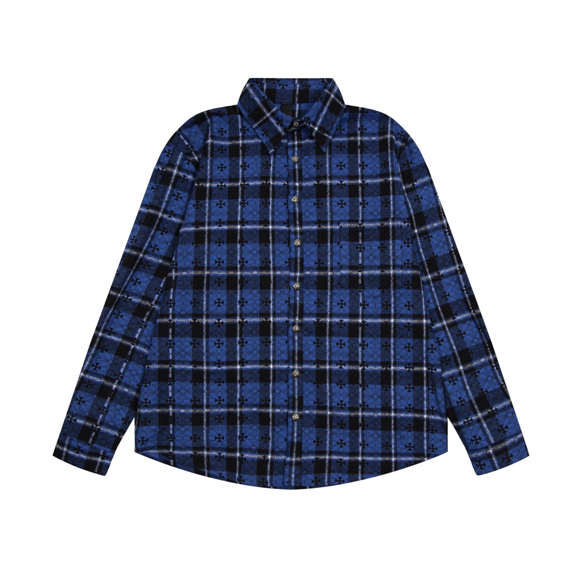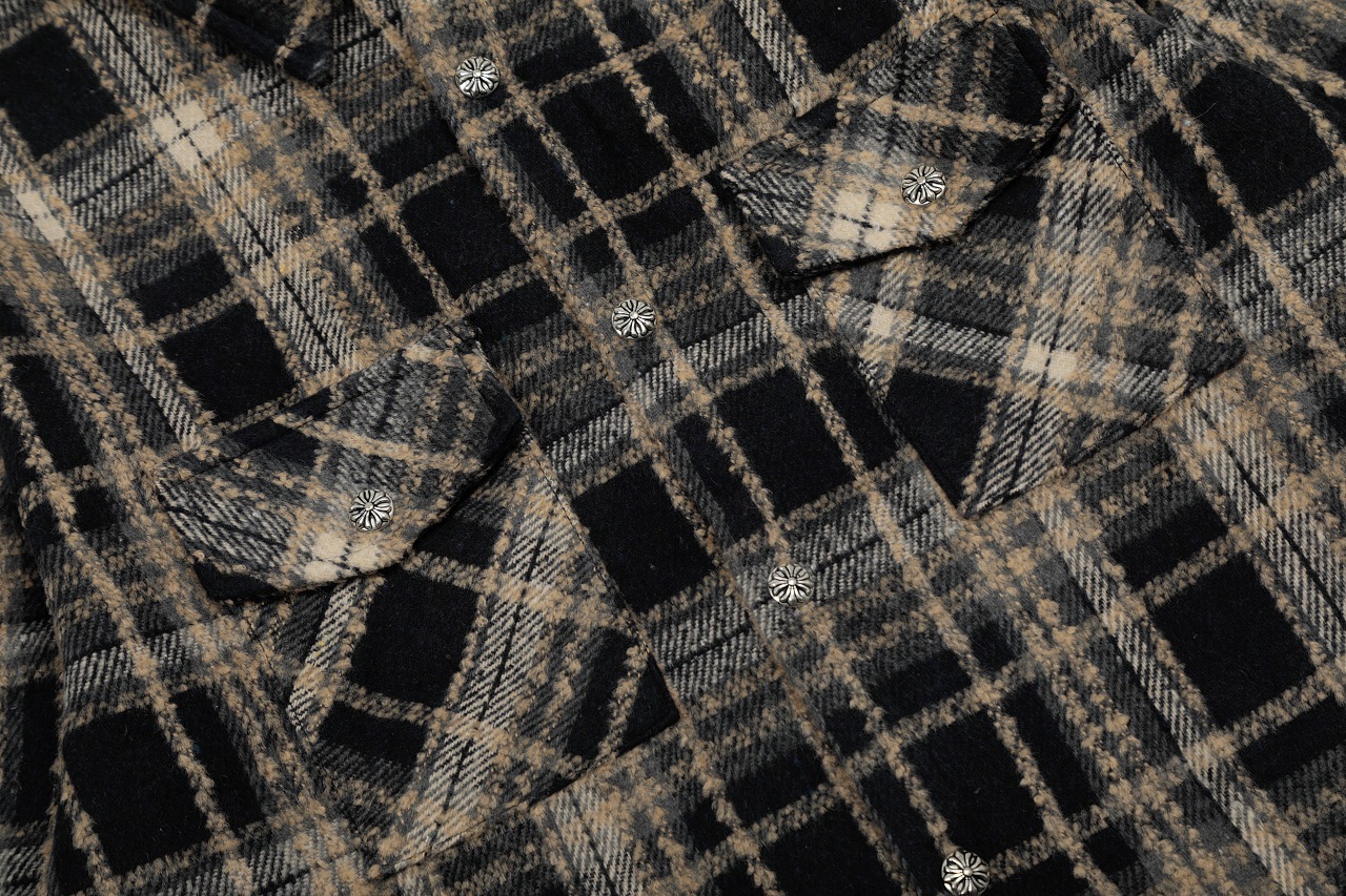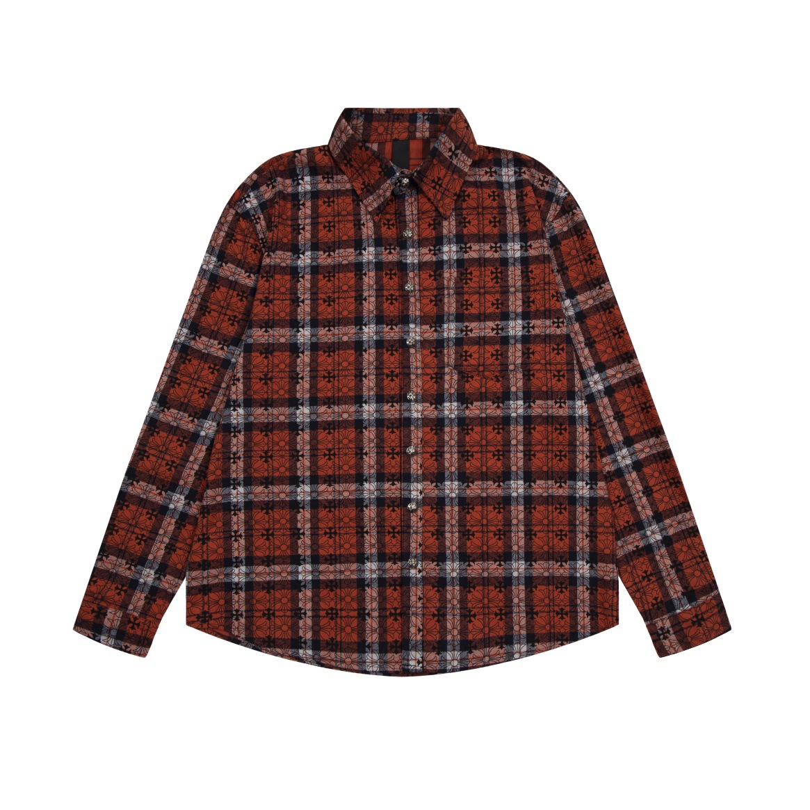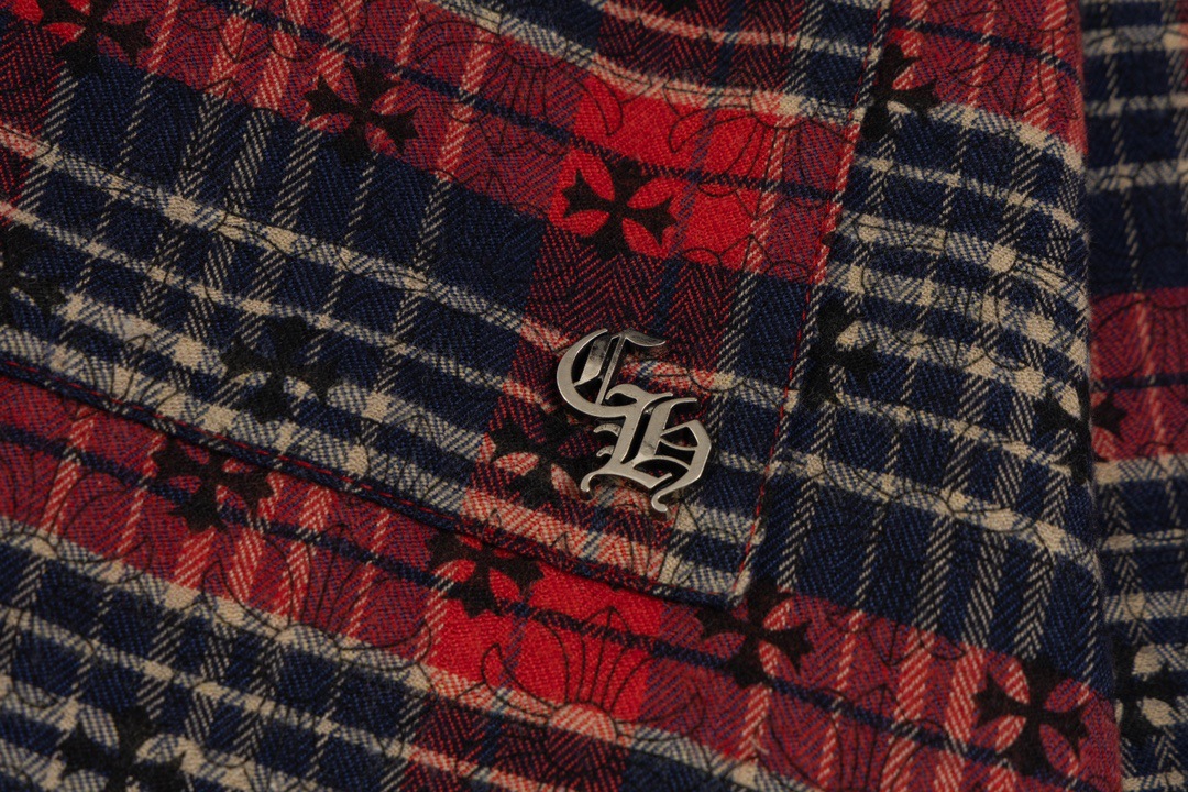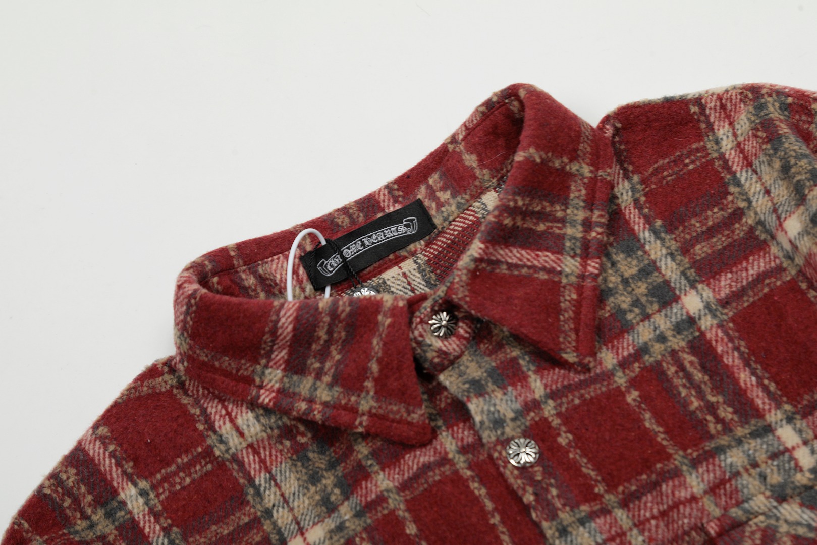 2025 새로운 CH 크로우 수정 판 중공업 가죽 자수 가슴 포켓 모직 격자 무늬 셔츠 남녀스토어 가기