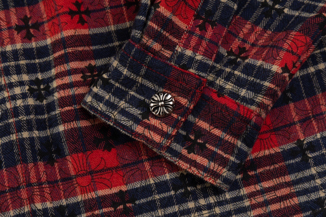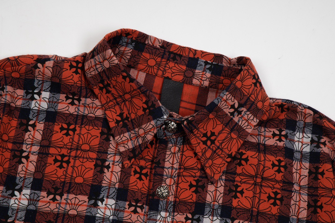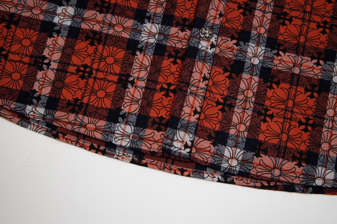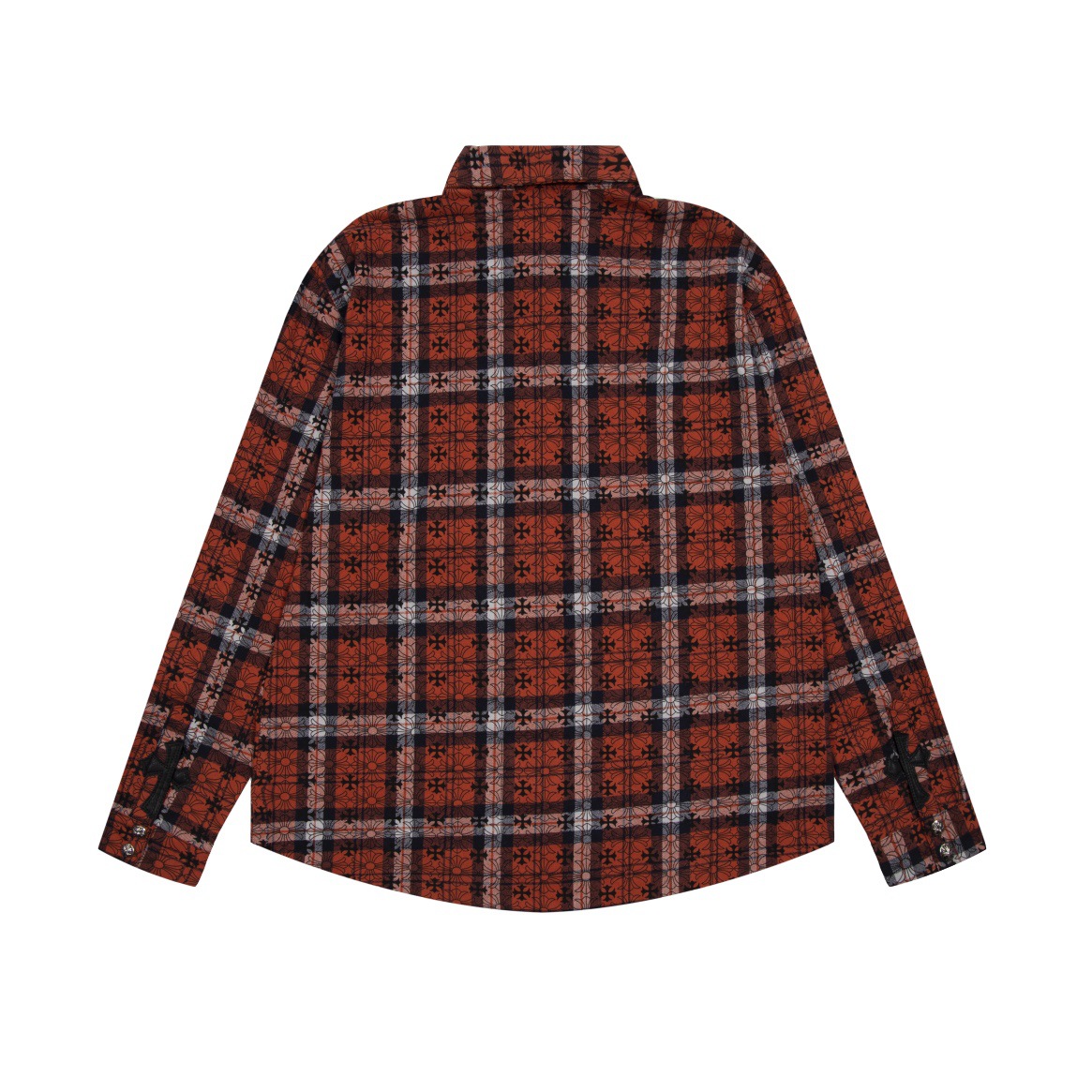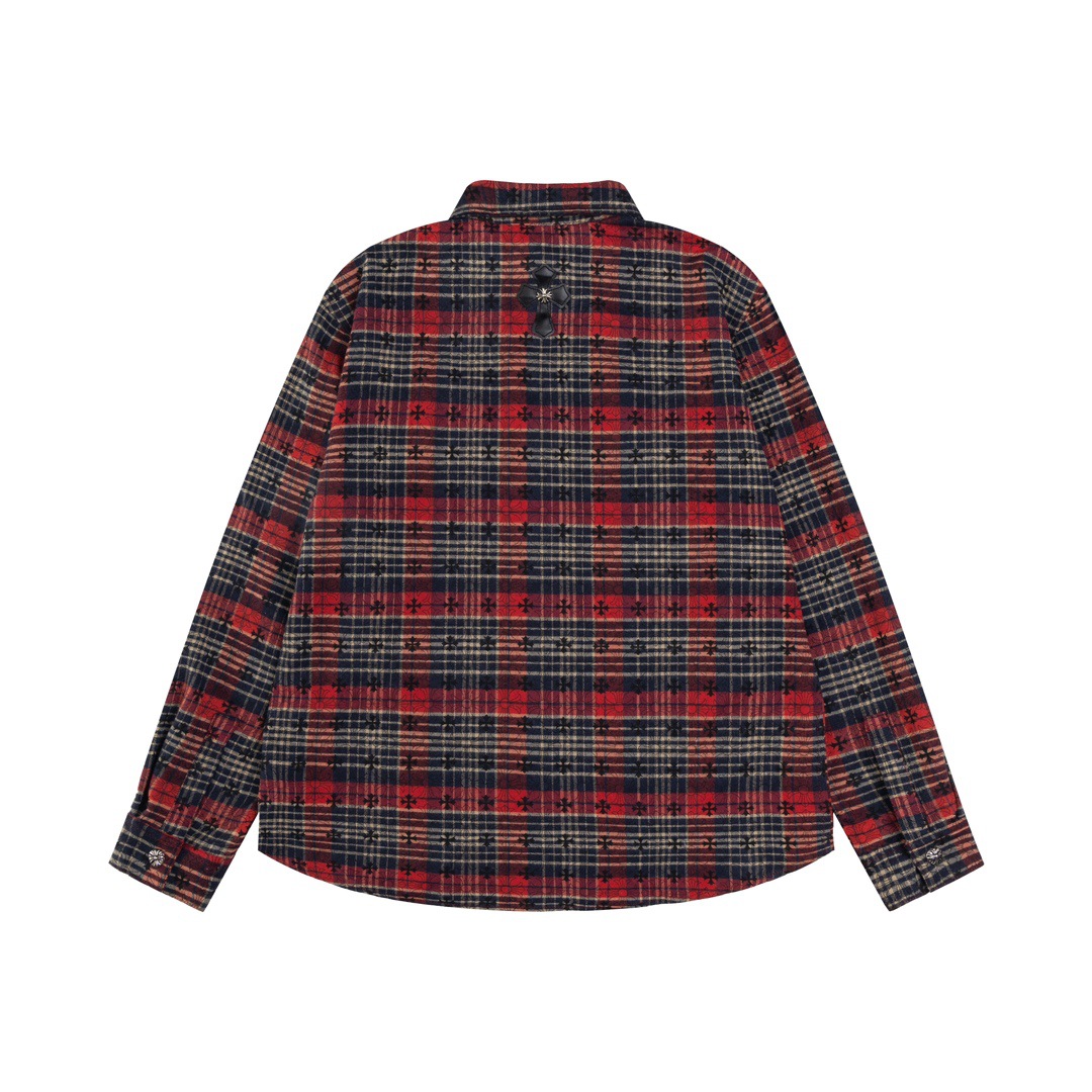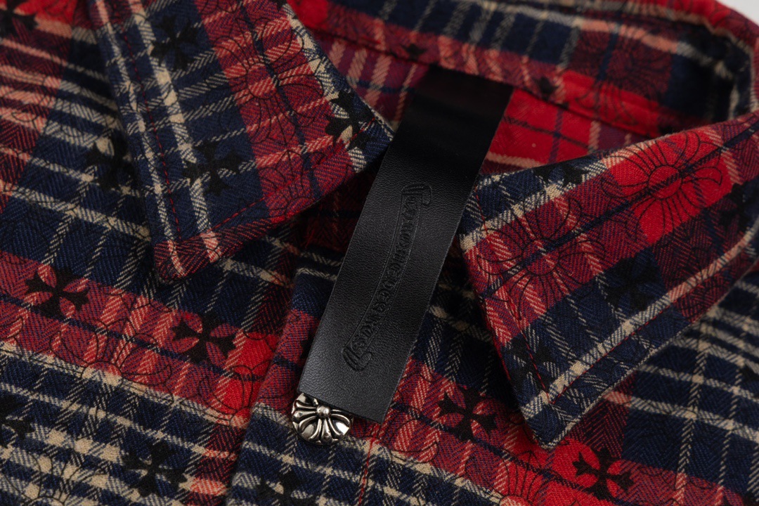 2025 새로운 CH 크로우 수정 판 중공업 가죽 자수 가슴 포켓 모직 격자 무늬 셔츠 남녀스토어 가기