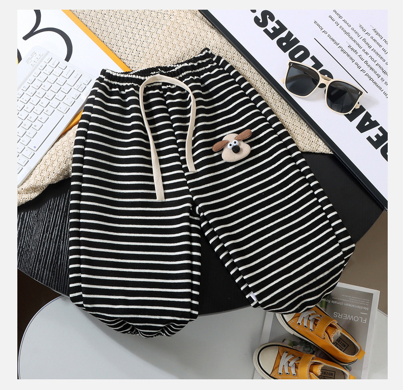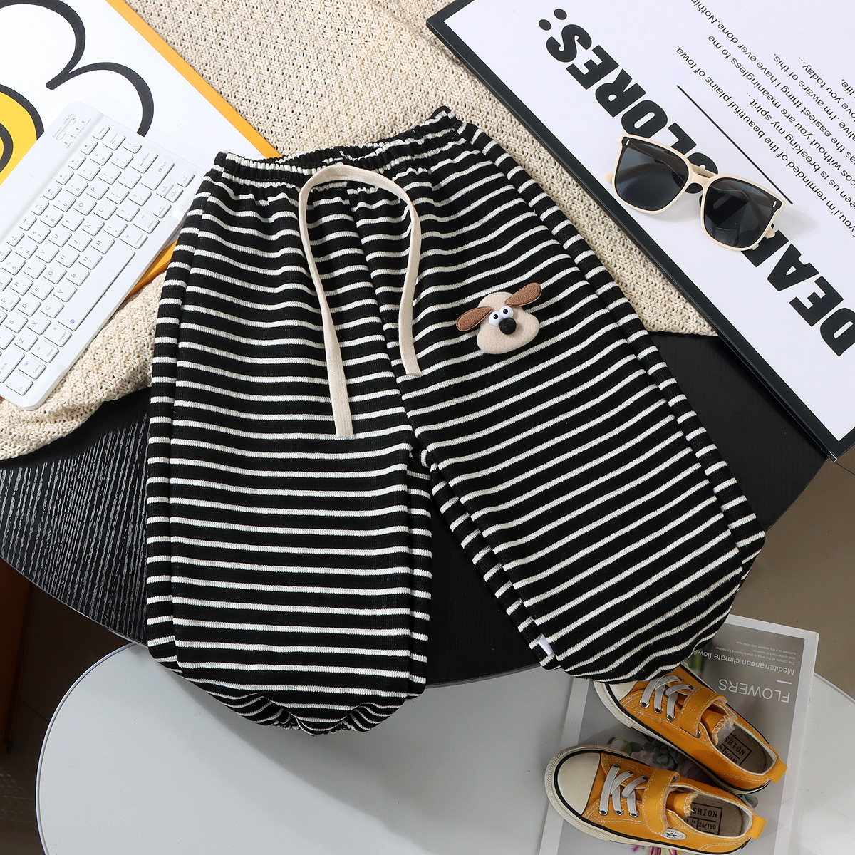 소년 소녀를위한 어린이 봄과 가을 바지 스노우 벨벳 스트라이프 바지 새로운 한국식 올매치 캐주얼 다리 번들 스웨트 팬츠