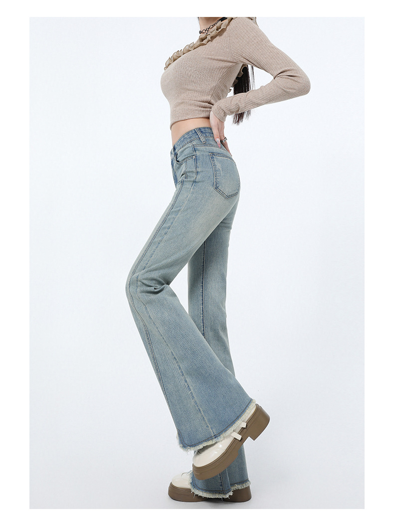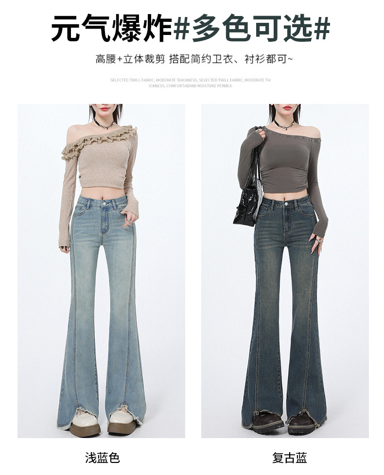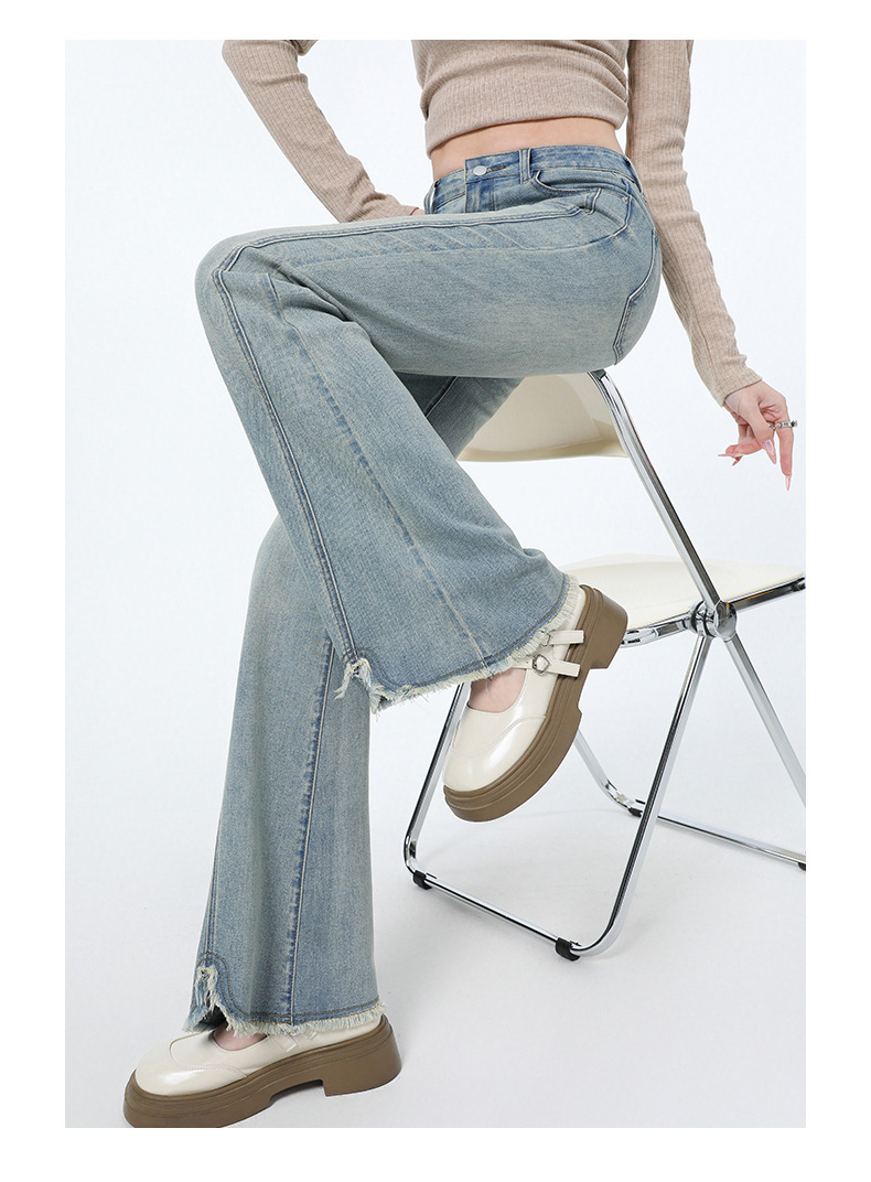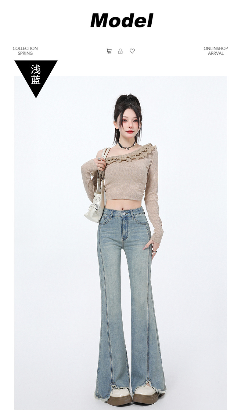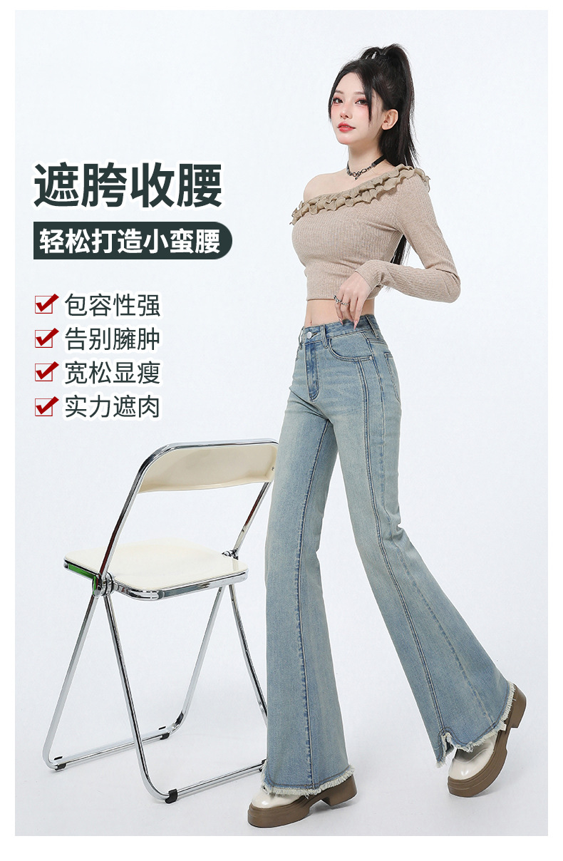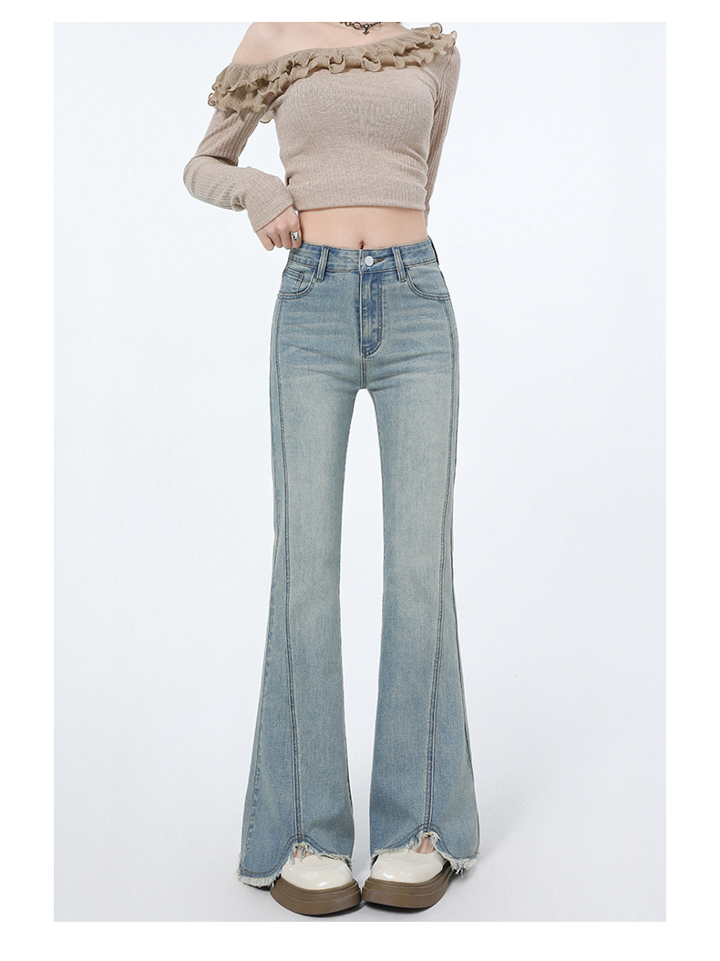 미국 라이트 블루 마이크로 플레어 청바지 여성의 2025 년 봄 새로운 하이 웨이스트 슬림 핏 슬림 핏 디자인 말굽 바지스토어 가기