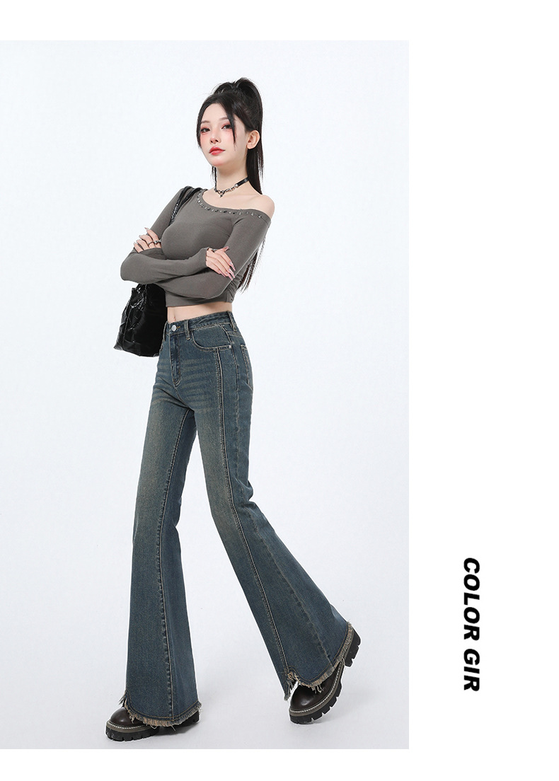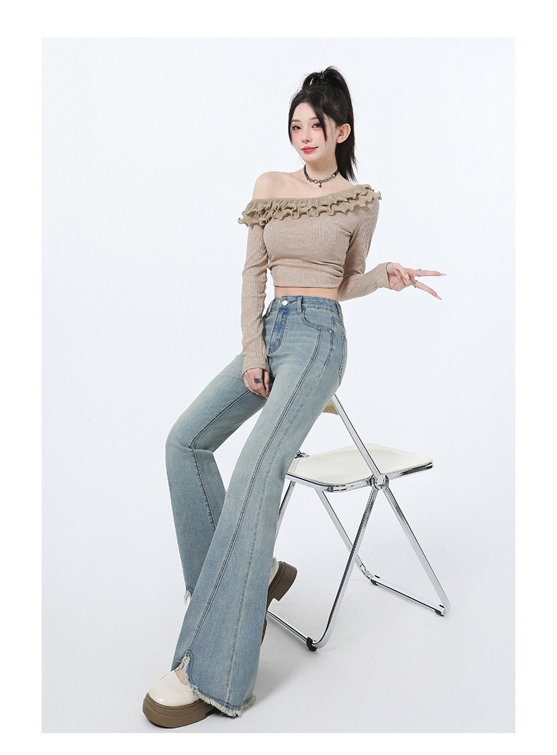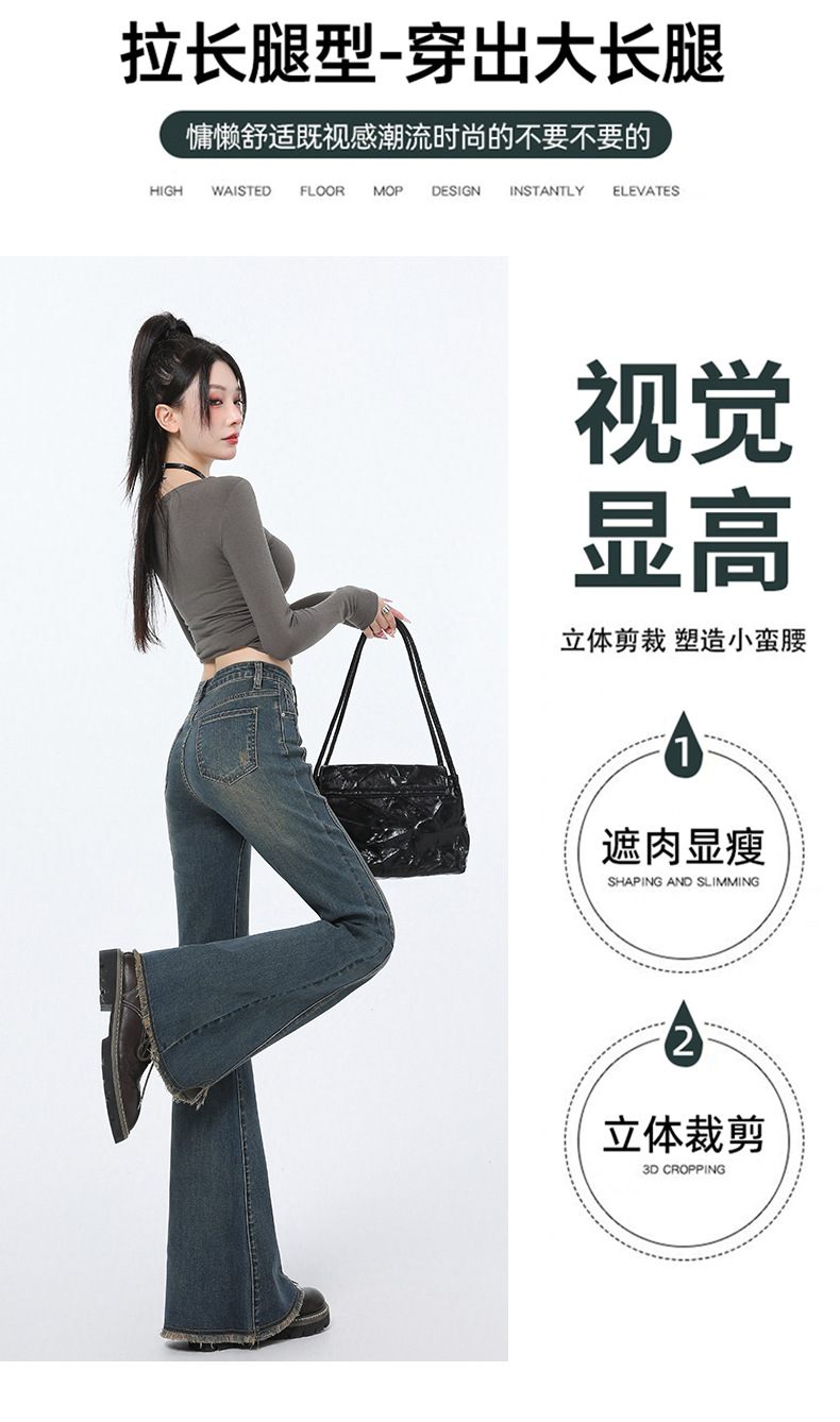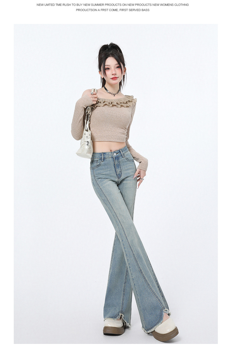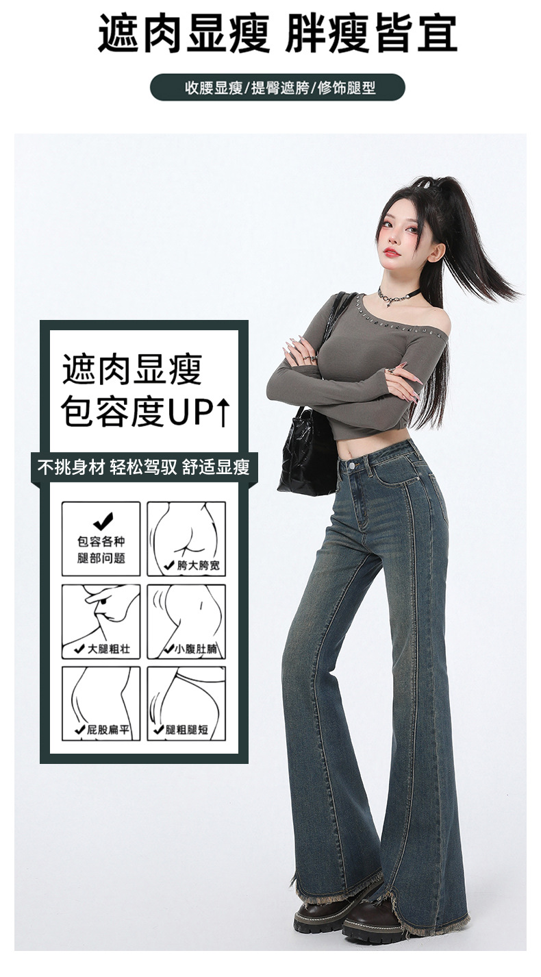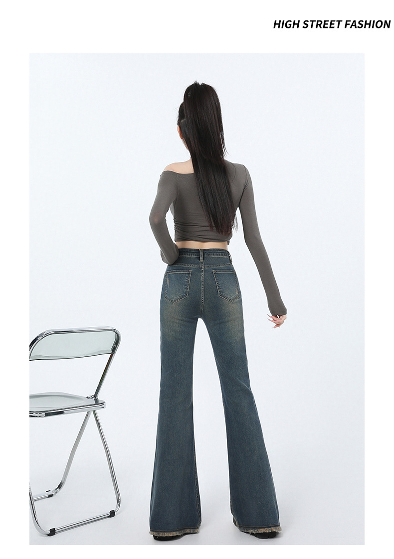 미국 라이트 블루 마이크로 플레어 청바지 여성의 2025 년 봄 새로운 하이 웨이스트 슬림 핏 슬림 핏 디자인 말굽 바지스토어 가기