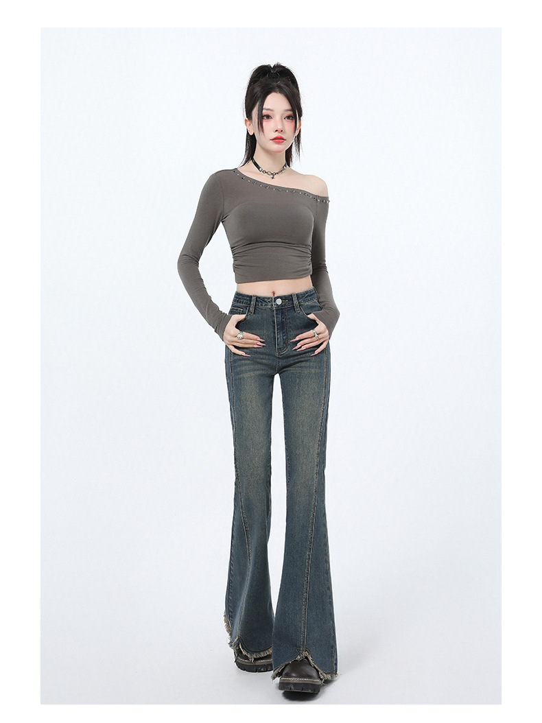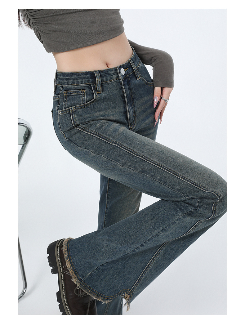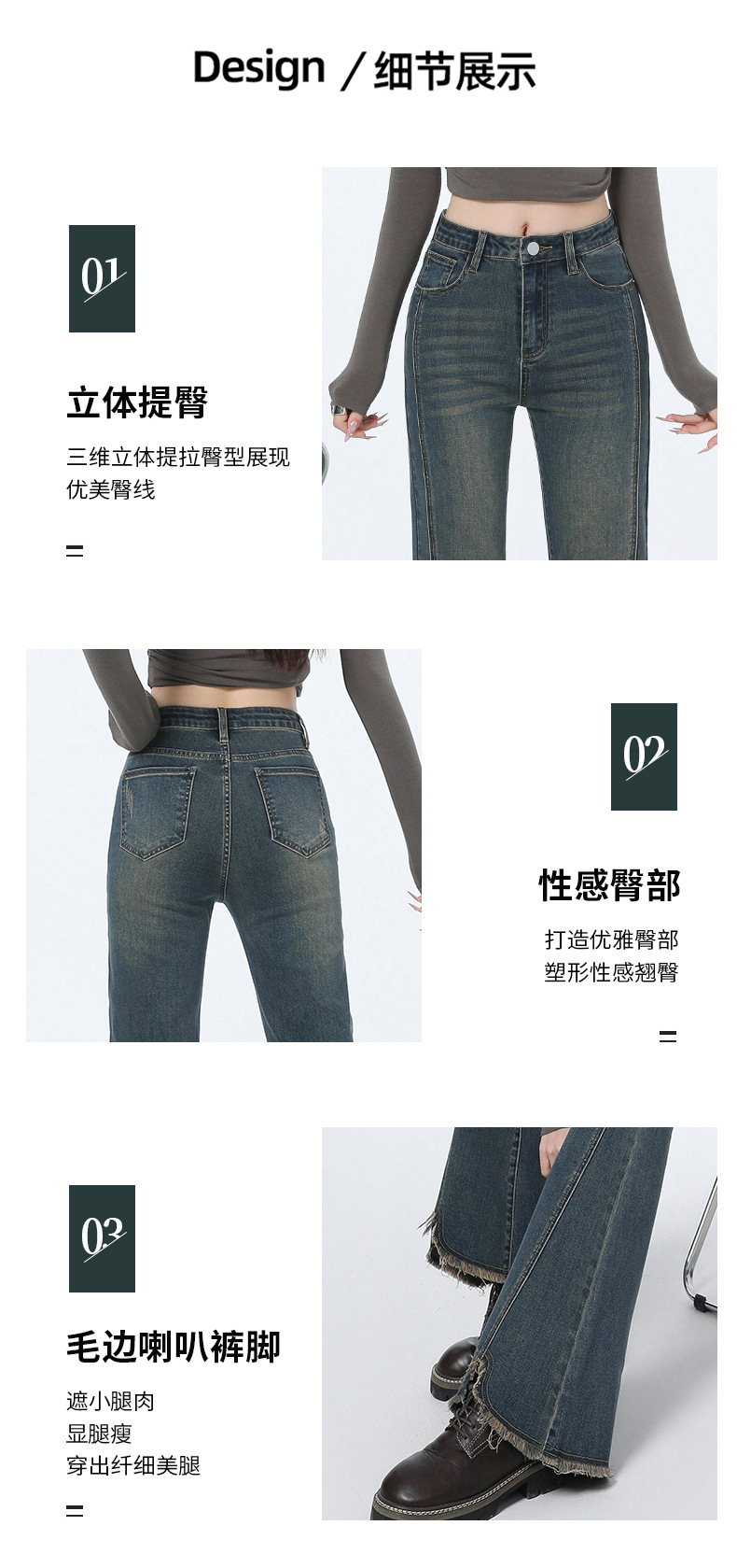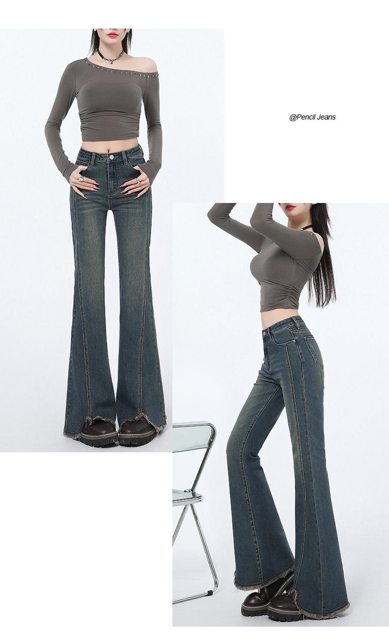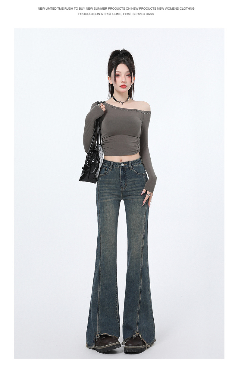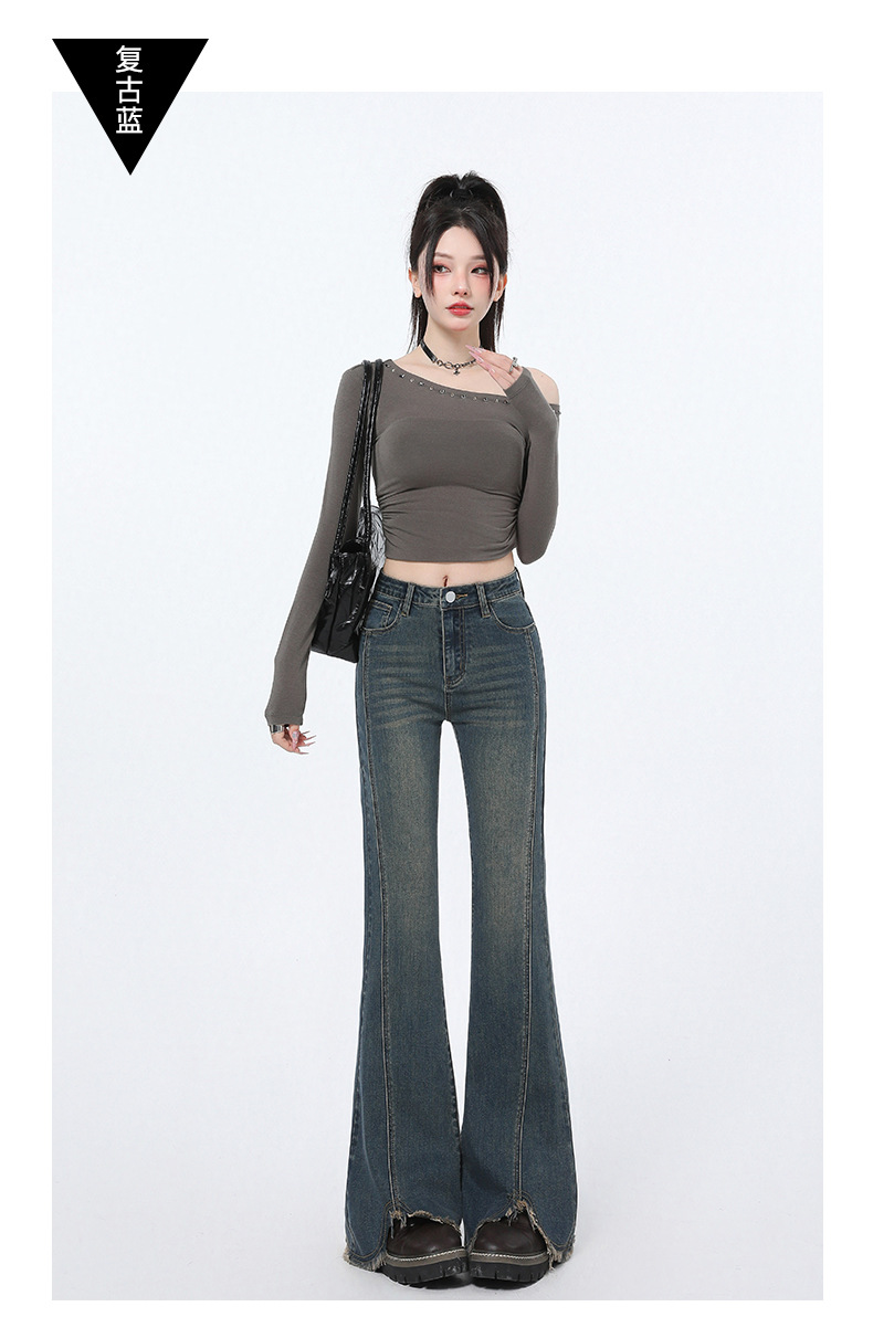 미국 라이트 블루 마이크로 플레어 청바지 여성의 2025 년 봄 새로운 하이 웨이스트 슬림 핏 슬림 핏 디자인 말굽 바지스토어 가기