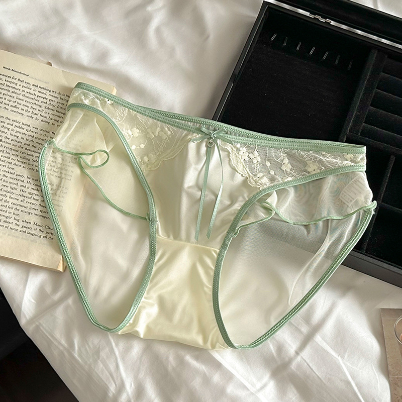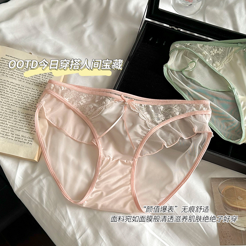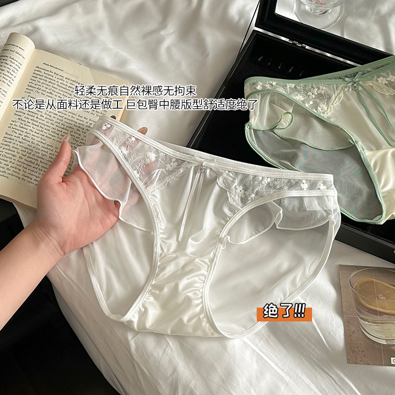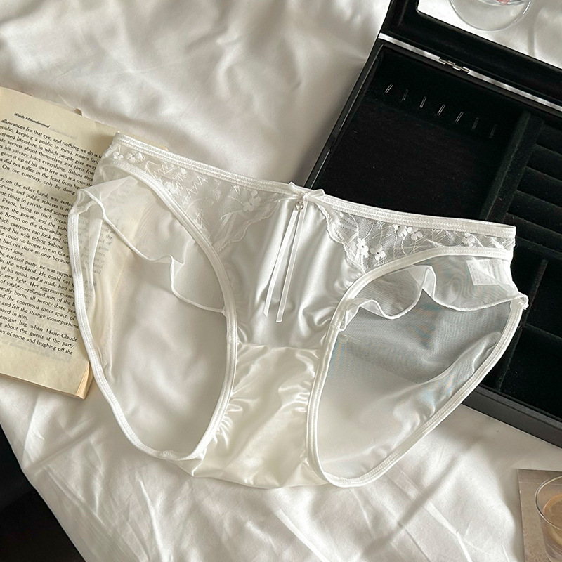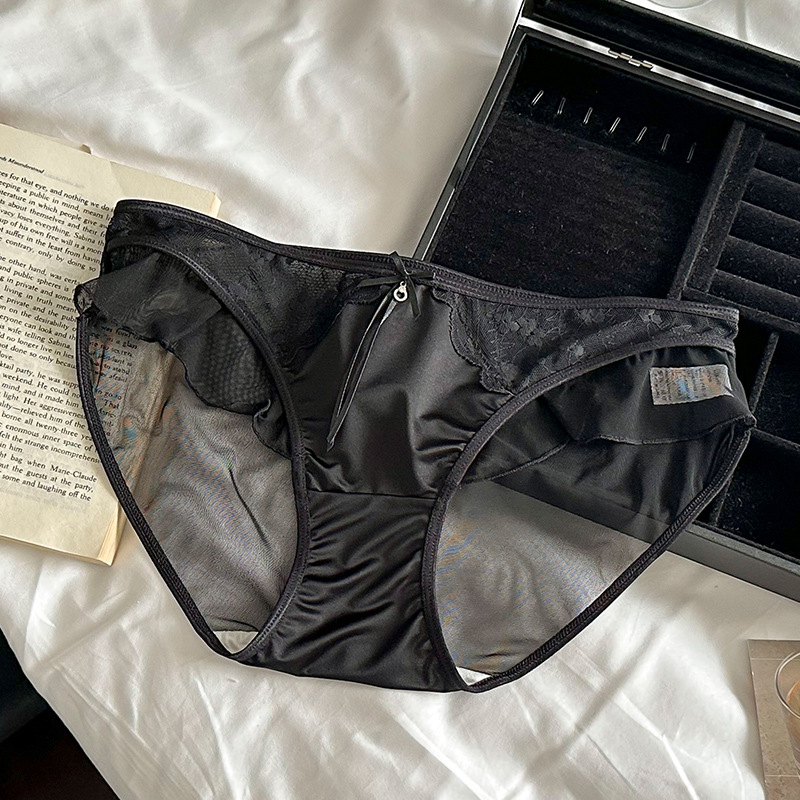 Ins Pure Desire ~ French 레이스 속옷 여성의 섹시한 통기성 멀 베리 실크 크로치 미드 허리 브리프 면화 배치스토어 가기