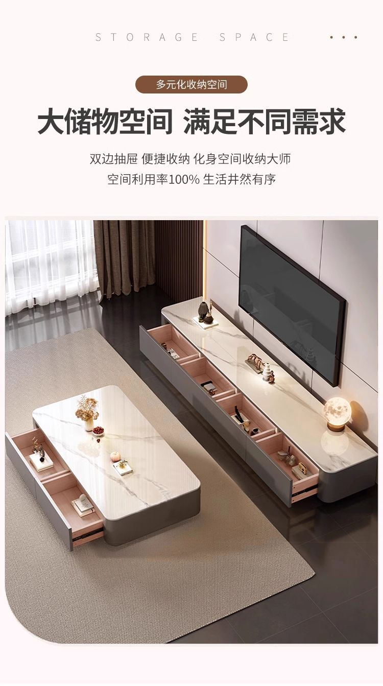 직사각형 암판 커피 테이블 TV 내각 조합 직사각형 가정 거실 한 단어 새로운 작은 아파트 커피 테이블