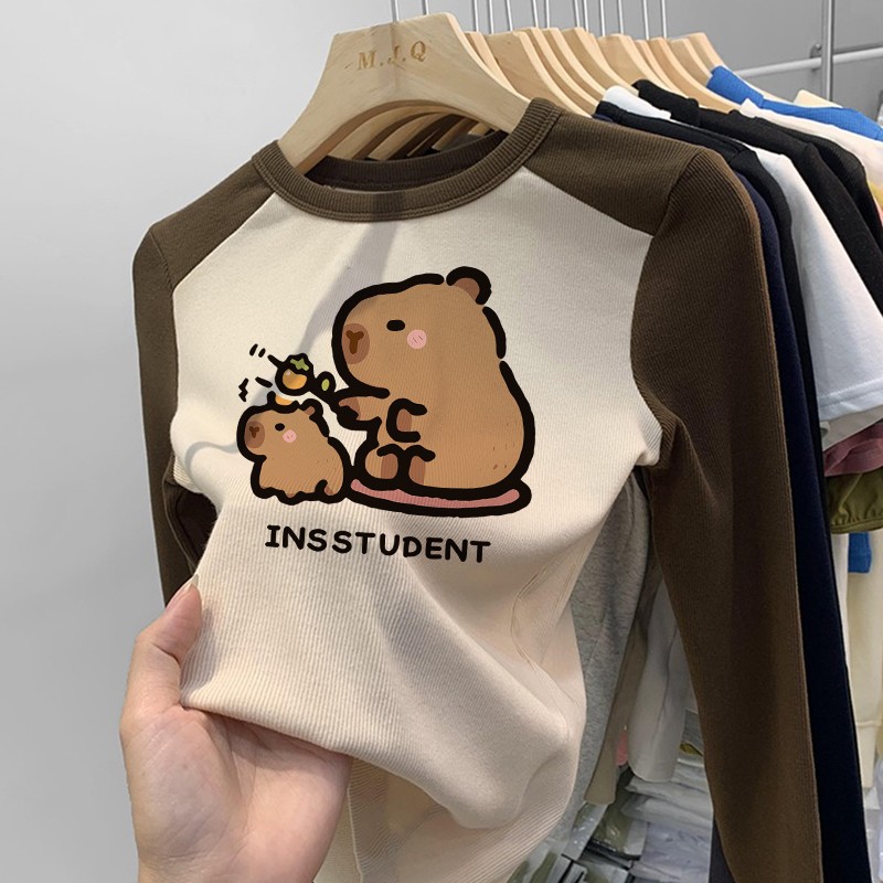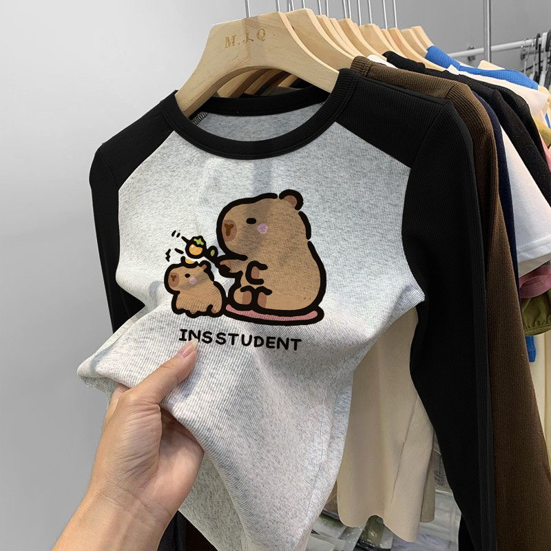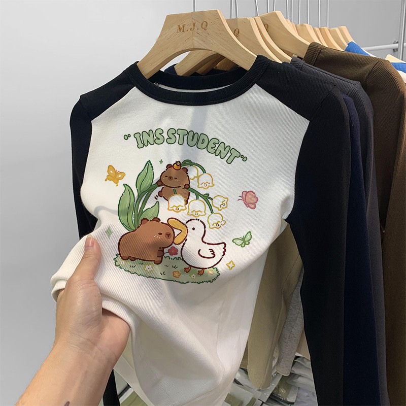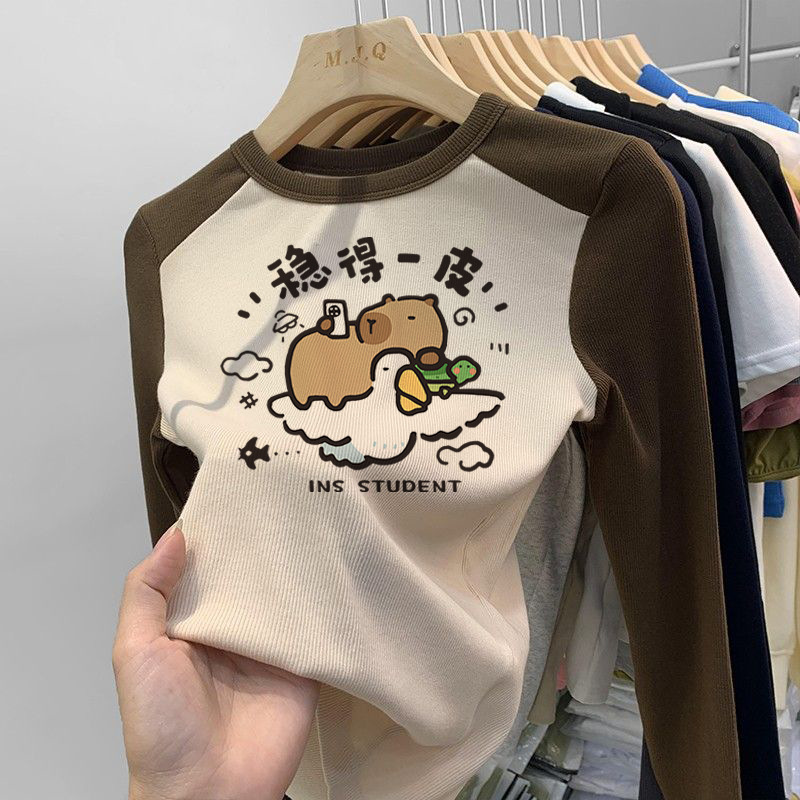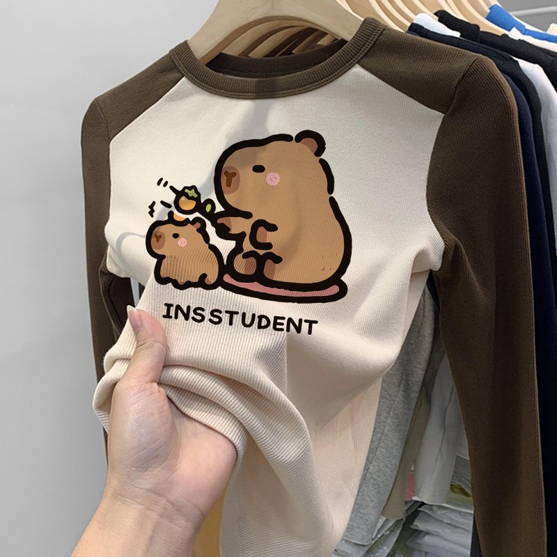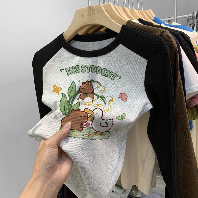 소녀 긴팔 티셔츠 카피발라 아동복 2025 년 새 어린이 도파민베이스 셔츠 걸즈 탑