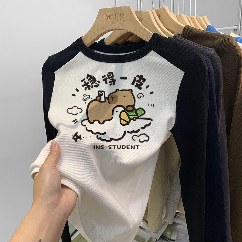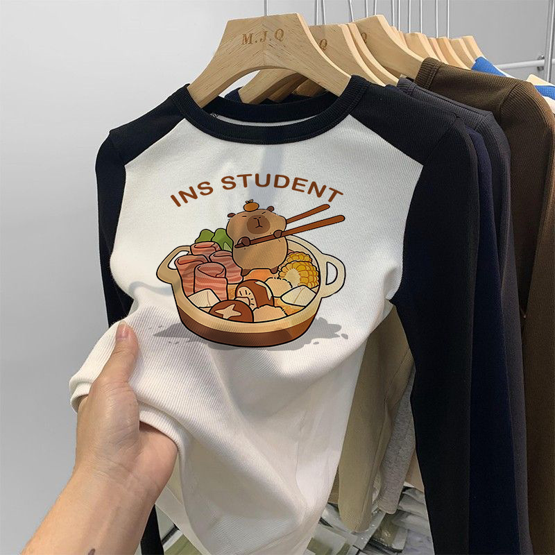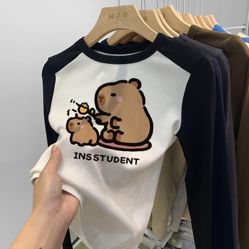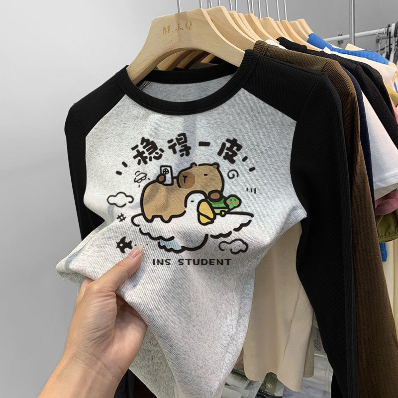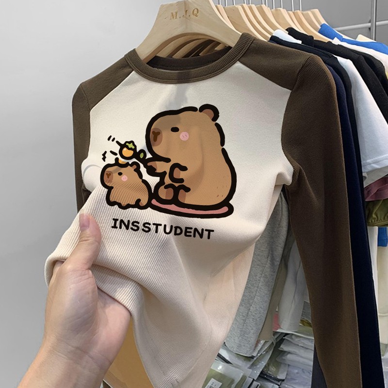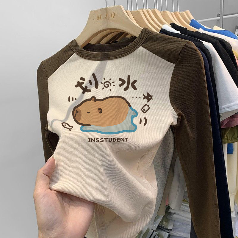 소녀 긴팔 티셔츠 카피발라 아동복 2025 년 새 어린이 도파민베이스 셔츠 걸즈 탑