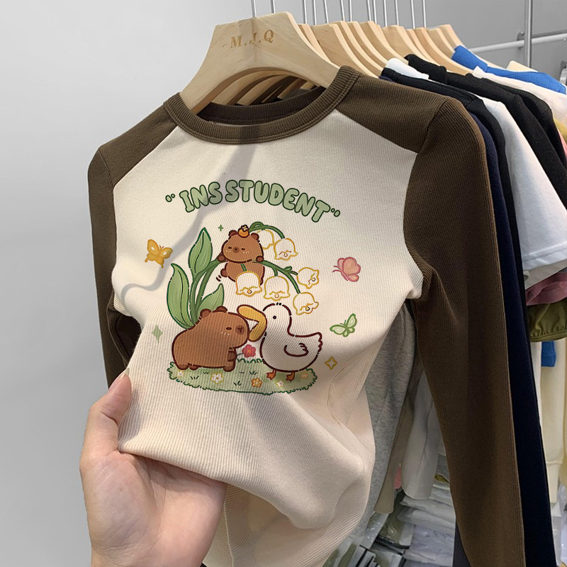 소녀 긴팔 티셔츠 카피발라 아동복 2025 년 새 어린이 도파민베이스 셔츠 걸즈 탑스토어 가기