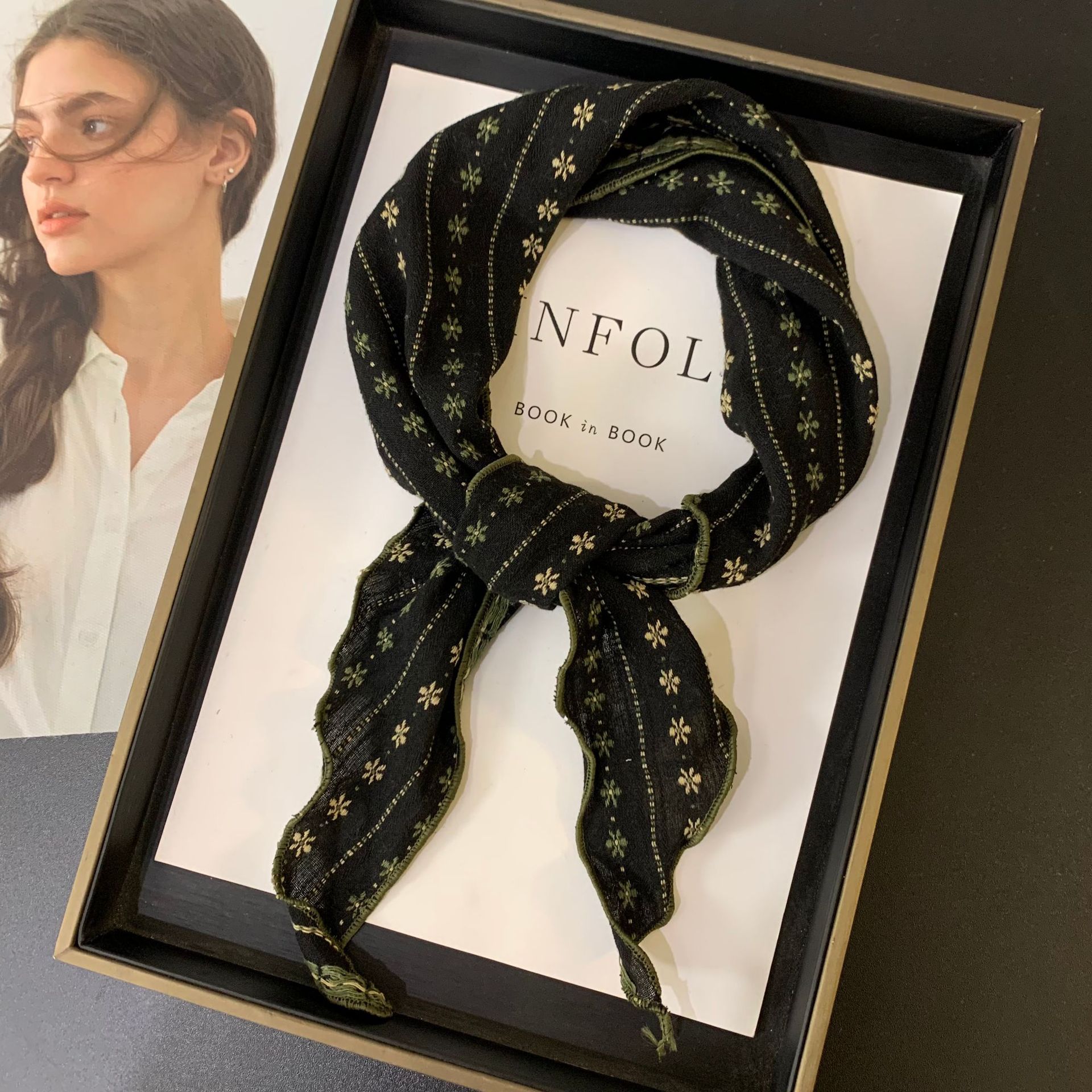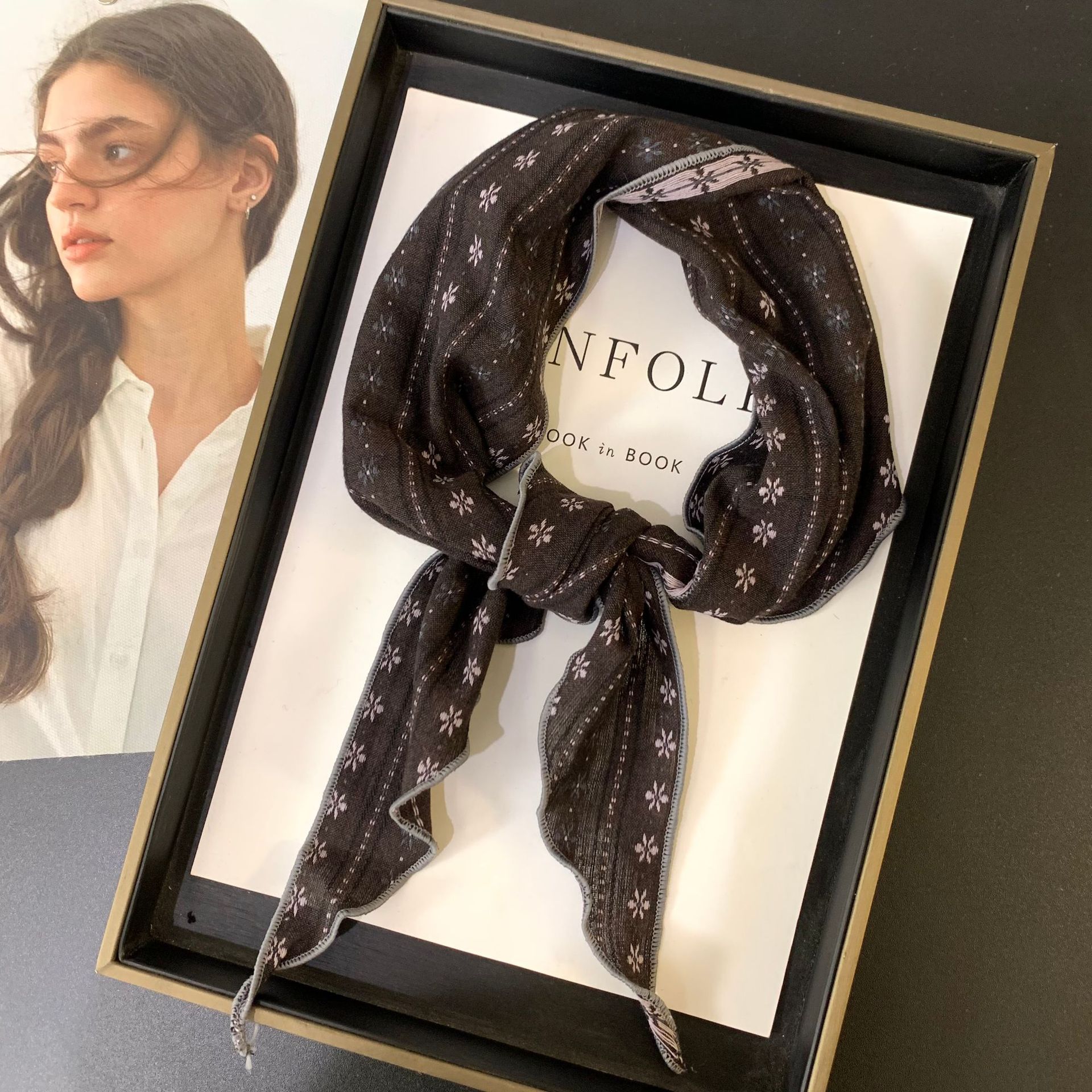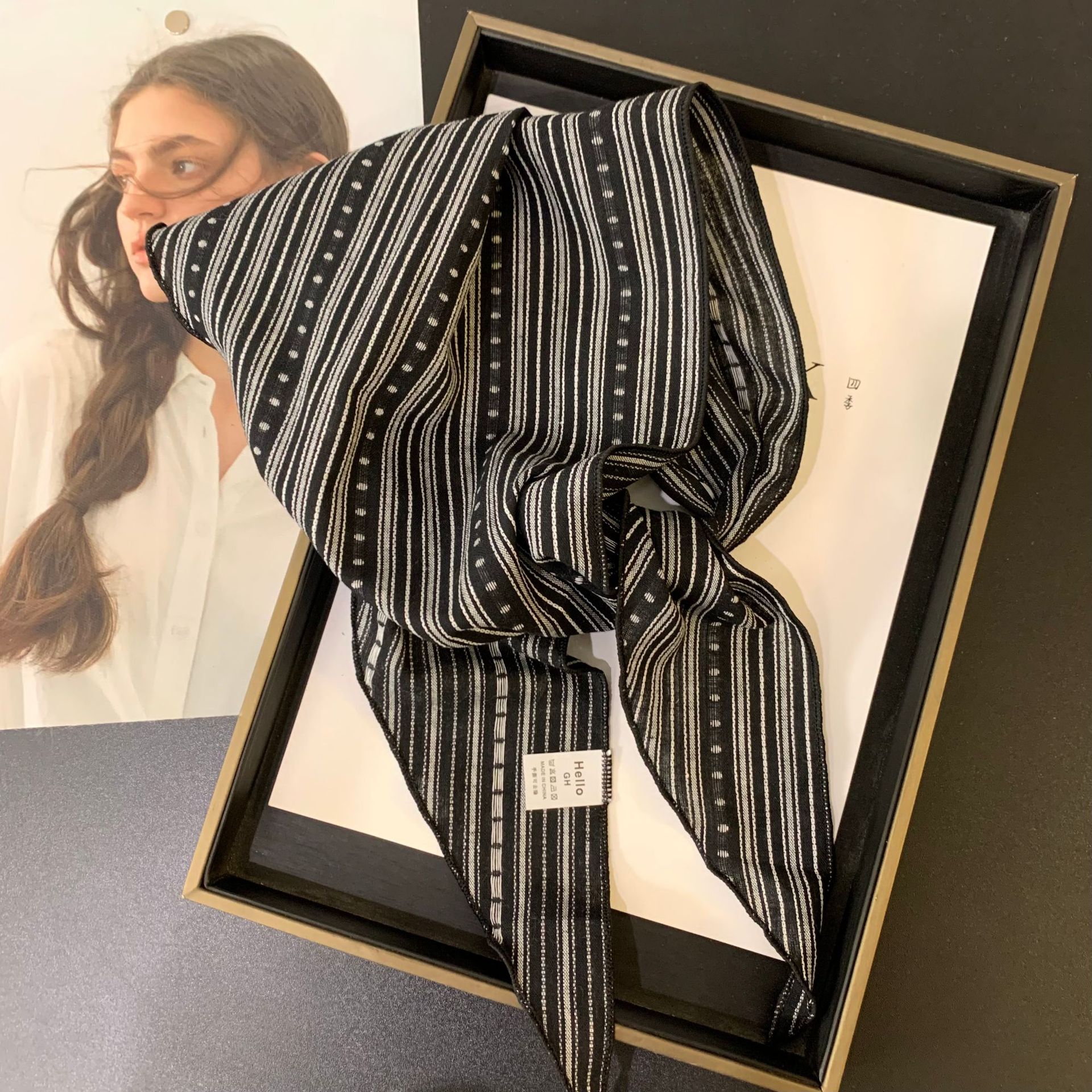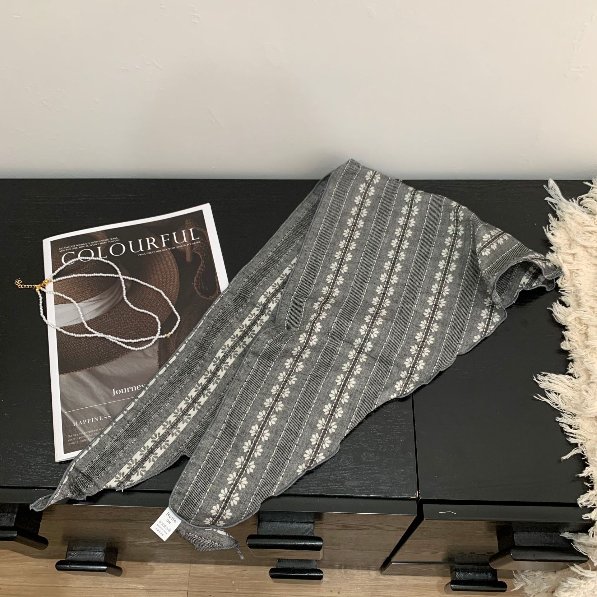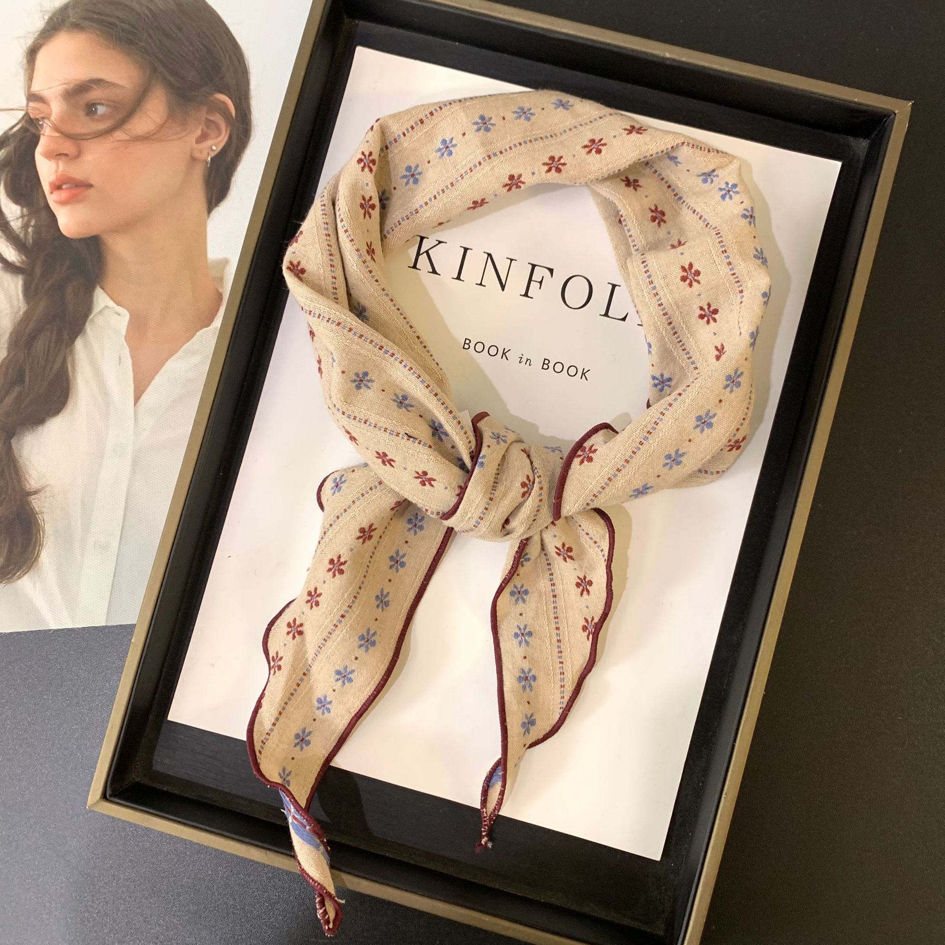 절묘한 눈송이 자수 면 및 린넨 삼각형 스카프 일본과 한국의 복고풍 패션 남성과 여성의 봄과 가을 작은 스카프 목 보호대와 스카프스토어 가기