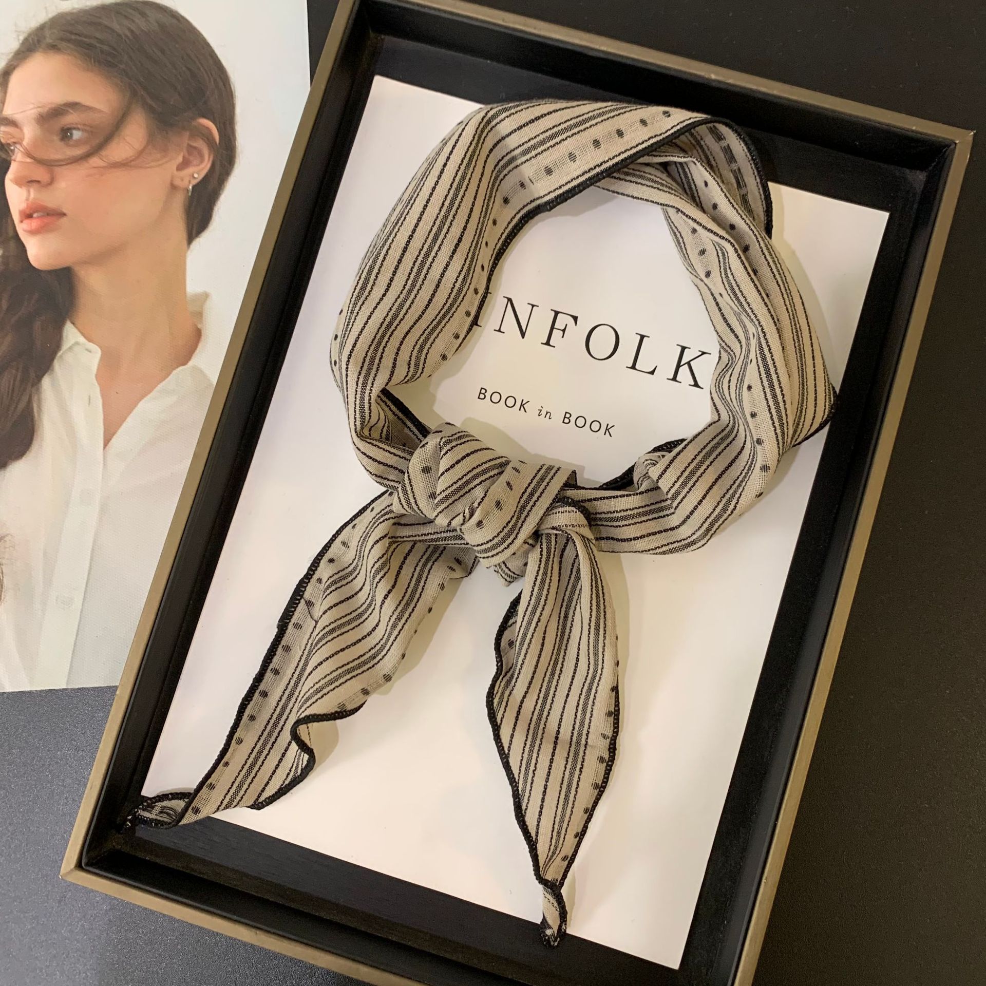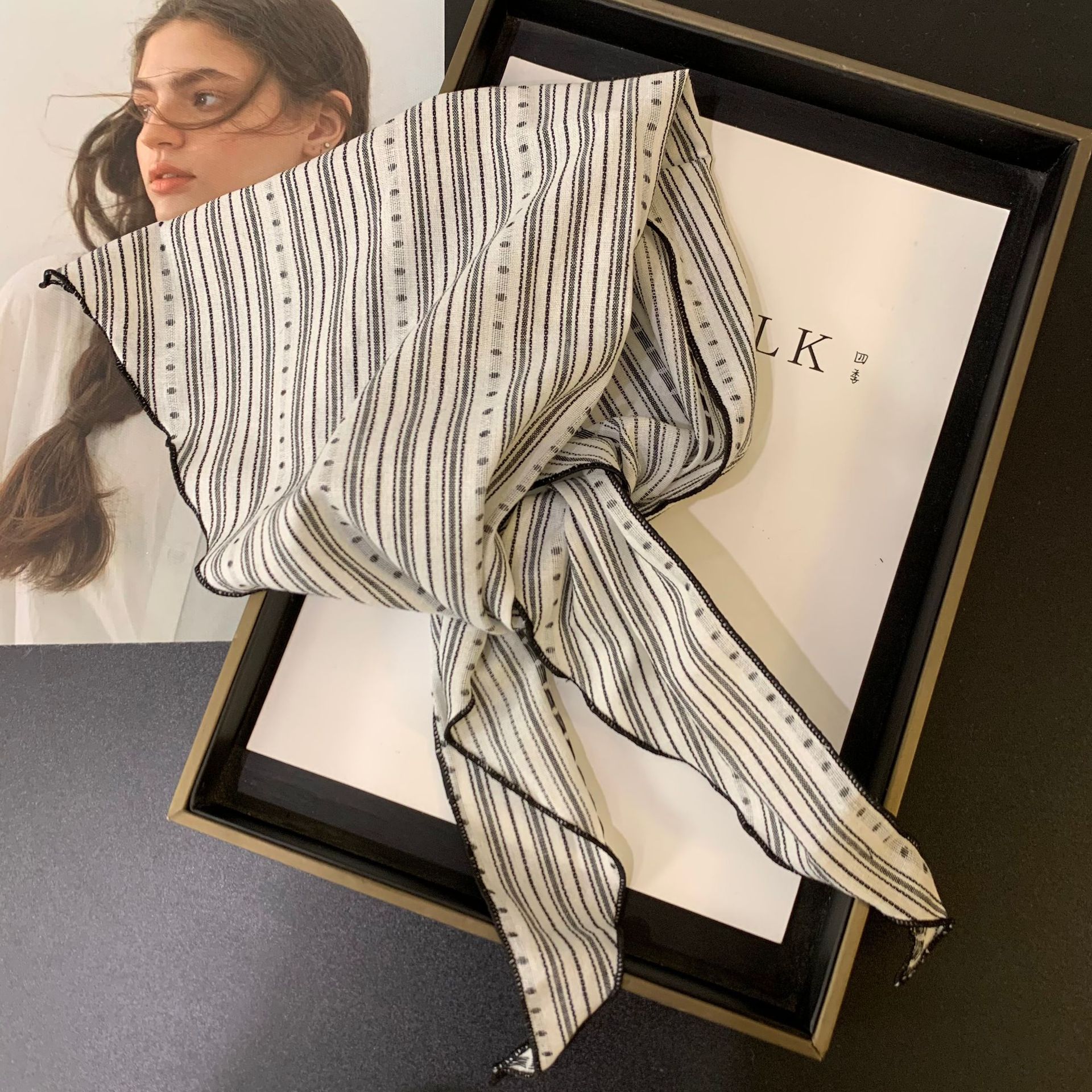 절묘한 눈송이 자수 면 및 린넨 삼각형 스카프 일본과 한국의 복고풍 패션 남성과 여성의 봄과 가을 작은 스카프 목 보호대와 스카프